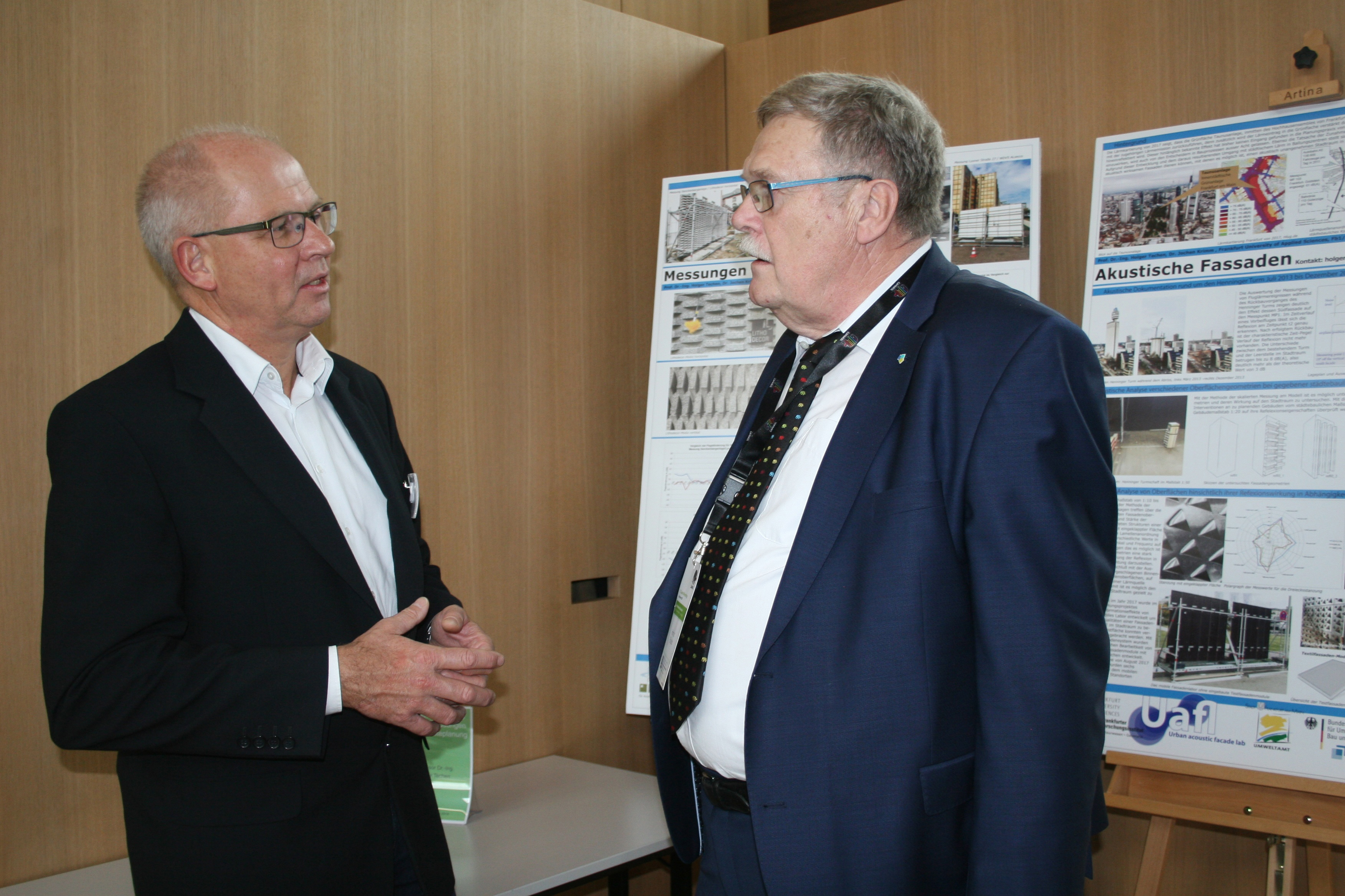 Einen Einblick in Schall und Akustik gaben Prof. Dr.-Ing. Holger Techen, Studiengang Architektur an der Frankfurt University of Applied Science, Robert Schwemmer, Geschäftsführer der Naporo Klima Dämmstoff GmbH mit Sitz in Österreich, und Hardy Rüdiger, Leiter Bautechnik FDT bei Caparol. Alle Drei sind sich einig: Fassaden können einiges leisten, um Straßen- oder Fluglärm zu verringern. Der promovierte Bauingenieur Holger Techen referierte zum Thema akustisch wirksame Fassaden. Städte werden immer dichter, immer mehr Menschen wohnen in immer mehr Häusern. „Gebäudehüllen wirken als Lärmverstärker.“ In Regionen wie dem Rhein-Main-Gebiet kommt zum Straßenlärm durch den Frankfurter Flughafen noch der „Lärm von oben“ hinzu. Um dem entgegenzuwirken, müsse der Reflexionspegel gesenkt werden. „Beim Thema