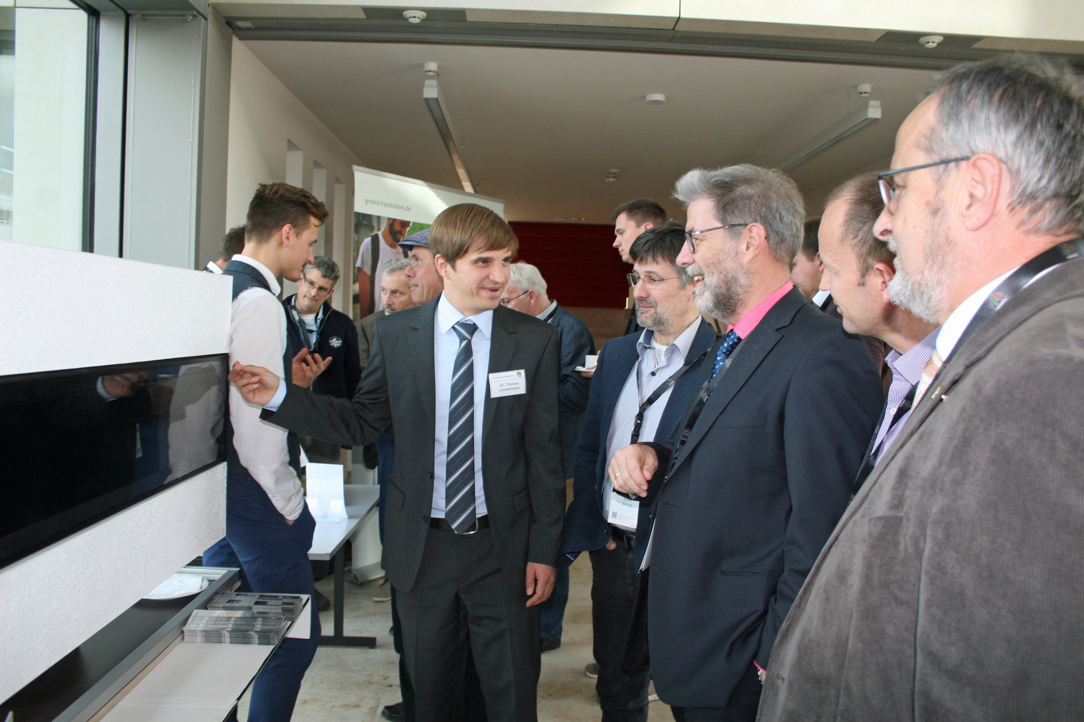 Warum ein Zusammenwirken kluger Köpfe nötig ist, machte Dr. Ralf Murjahn zuvor in seiner Begrüßungsansprache deutlich: Einer Studie der Lackindustrie zufolge ist das Geschäft mit Fassadenfarben rückläufig. Das liege zum einen daran, dass die Produkte immer effizienter werden. Zum anderen sind auch die Oberflächen immer besser geworden. „Als Folge werden Renovierungszyklen länger“, so Murjahn. Hinzu komme der starke Trend hin zu Klinker- oder Vorhangfassaden. Letztere werden jedoch nur montiert – i.d.R. durch Fassadenbauer und nicht durch das Maler- und Stuckateurhandwerk. „Wir müssen die Geschäftsfelder für das Handwerk weiterentwickeln“, forderte der CEO der DAW SE deshalb die Zuhörer zu Offenheit gegenüber neuen Technologien auf. Impulse dahingehend gab die Veranstaltung zuhauf. Franz Xaver Neuer, Leiter Technik Caparol, führte souverän durch die vier großen Themenblöcke „Kondensationsfreie Fassade“, „Umwelt und Energie“, „Schall und Akustik“ sowie „Funktionales Design“. „Funktionen der Fassade werden wichtiger“, kündigte Neuer an. Schutz vor Feuchtigkeit, Langlebigkeit und Schönheit, das seien Selbstverständlichkeiten, die heutzutage nicht mehr ausreichten. „Sie müssen sich weiterqualifizieren und Ihre Mitarbeiter mitnehmen. Das ist eine Herausforderung, aber auch eine Chance für uns.“ Die Redner boten dahingehend neben handfesten wissenschaftlichen Erkenntnissen auch spannende Zukunftsvisionen. Ergänzt wurden die Vorträge mit Ausstellungen, bei denen sich die Zuhörer in den Pausen jeweils noch intensiver informieren konnten.