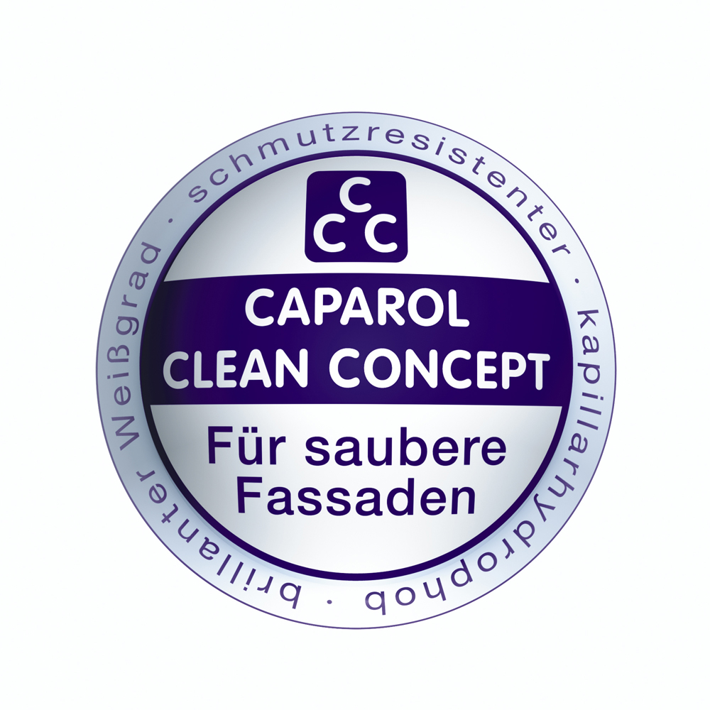 Das Caparol Clean Concept beruht zudem auf einer speziellen Auswahl von Pigmenten und Füllstoffen. Diese ganzheitliche Rezepturoptimierung führt zu einer ausgeprägten Kapillarhydrophobie. So ist sichergestellt, daß Regenwasser nicht in die Oberfläche eindringen kann. Alle Produkte auf der Basis des Caparol Clean Concepts haben nach DIN EN 1061, Teil 1, eine Wasseraufnahme w < 0,1 kg/ m2/h0,5, was feuchtetechnisch die günstigste Klasse ist. Das Caparol Clean Concept setzt auf die Kapillarhydrophobie und nicht auf die Oberflächenhydrophobie, um die Verschmutzung von Fassaden möglichst gering zu halten. Ein zu starker Abperleffekt führt nach den Beobachtungen der Caparol-Forscher zu Flecken und Schmutzläufern, da stark hydrophobe Oberflächen nur partiell benetzt werden.