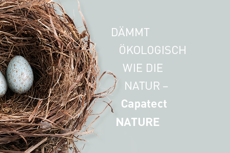 Capatect NATURE spricht Auftraggeber an, denen Nachhaltigkeit und Ökologie besonders am Herzen liegen. Der nachwachsende Dämmstoff besteht bei diesem Fassadensystem aus natürlichen Hanffasern. Die optimalen Schallschutzeigenschaften und der Systemaufbau ohne Biozide als Beschichtungsschutz dieses Fassadensystems ermöglichen das bestmögliche Wohlfühlklima und bieten Behaglichkeit wie in einem natürlichem Nest.