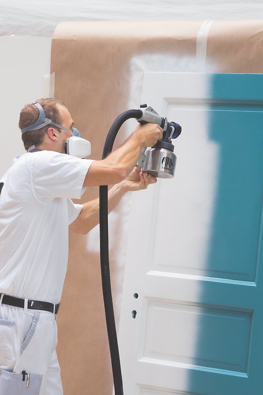Airless oder NAST – welche Flächen wie beschichten? Das nebelarme NAST-Spritzverfahren mit den speziell dafür entwickelten NAST-Lacken von Caparol empfiehlt sich zum Beschichten kleiner bis mittelgroßer Flächen. Damit sind Bauteile und Oberflächen gemeint, für die der Maler kein Airless-Spritzgerät einsetzen will, weil dessen Handhabung im Hinblick auf den Reinigungsaufwand unwirtschaftlich wäre. Für NASTAnwendungen bietet sich zum Beispiel das Lackieren von Garagentoren, Heizkörpern oder Türzargen an. Aber auch auf kleinflächigen Bauteilen wie Treppengeländern ist die Anwendung der nebelarmen Spritztechnologie NAST sinnvoll, weil die Verwendung eines Airlessgerätes zu hohem Materialverlust führt und zudem viel Spritznebel verursacht. Als Faustformel lässt sich somit sagen: NAST bis zu 50 m² Fläche und überall da, wo nur geringe Spritznebelbelastung akzeptabel ist; Airless-Geräte für größere Flächen ab etwa 50 m².