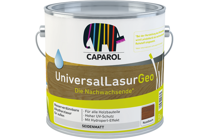 „Die Universal Lasur Geo wurde entwickelt, um unseren Kunden eine nachhaltige und gleichzeitig qualitativ hochwertige Lasur zur Verfügung zu stellen“, erklärt Projektleiter Dr. Aaron Breivogel. „Auf der FAF soll das Produkt nun einem breiten Publikum vorgestellt werden.“ Das Holzveredelungsprodukt enthält ein Bindemittel, das aus Leindotter gewonnen wird. Dabei handelt es sich um einen nachwachsenden Rohstoff, dessen Anbau besonders nachhaltig ist. Die Lasur schützt Hölzer von Zäunen und Terrassen oder ganze Holzfassaden vor Regen, Pilzen und intensiver UV-Strahlung.