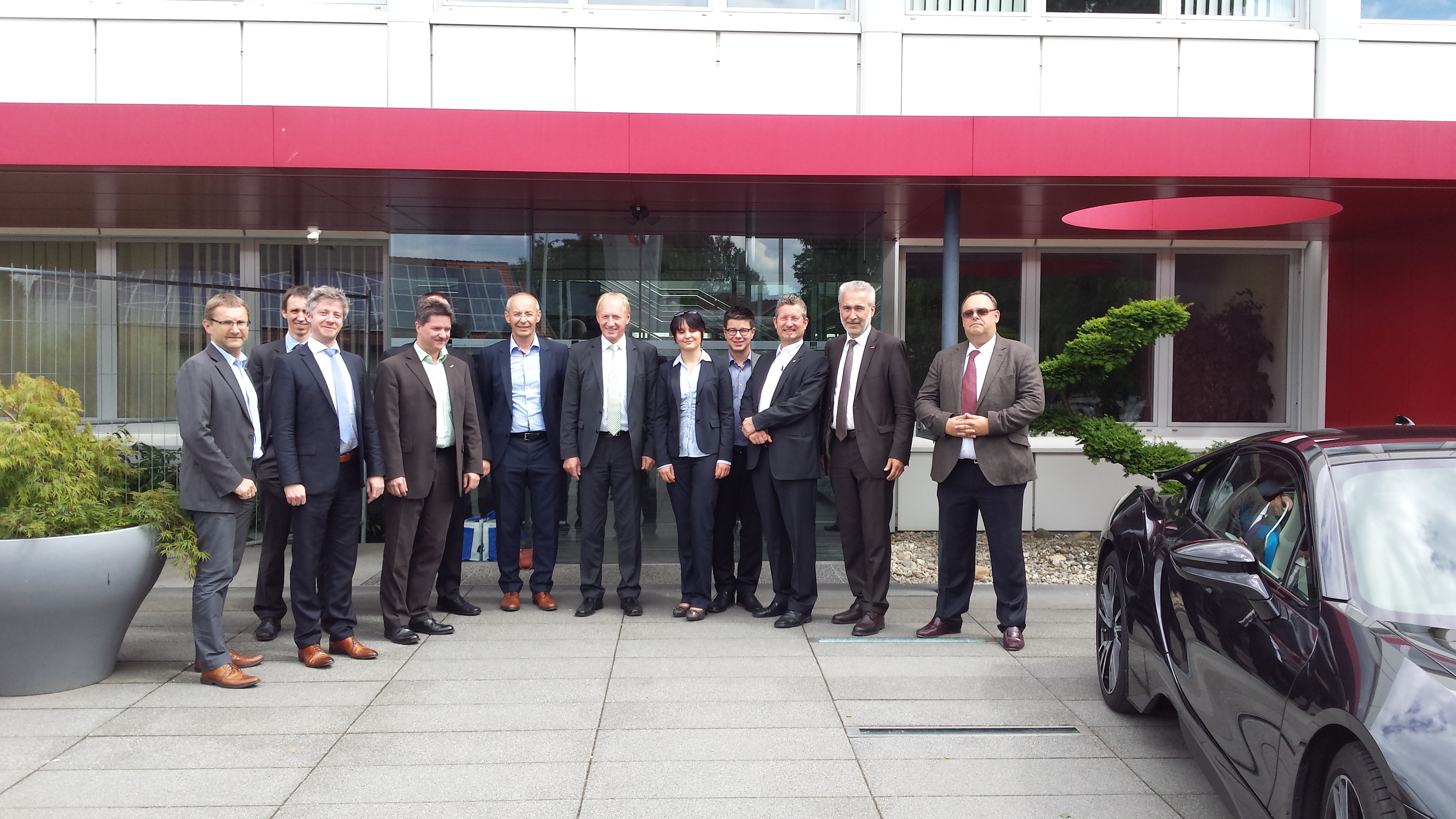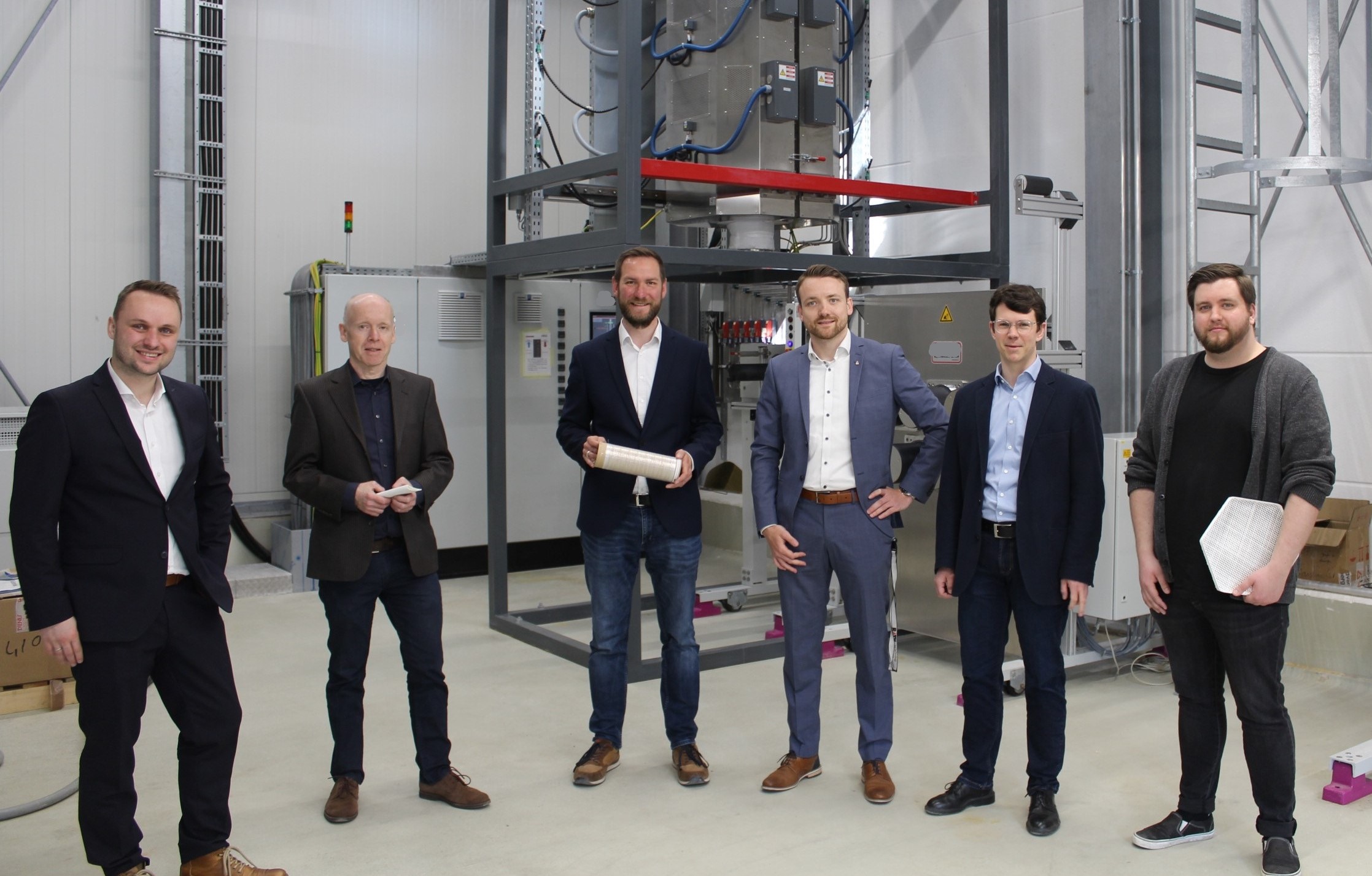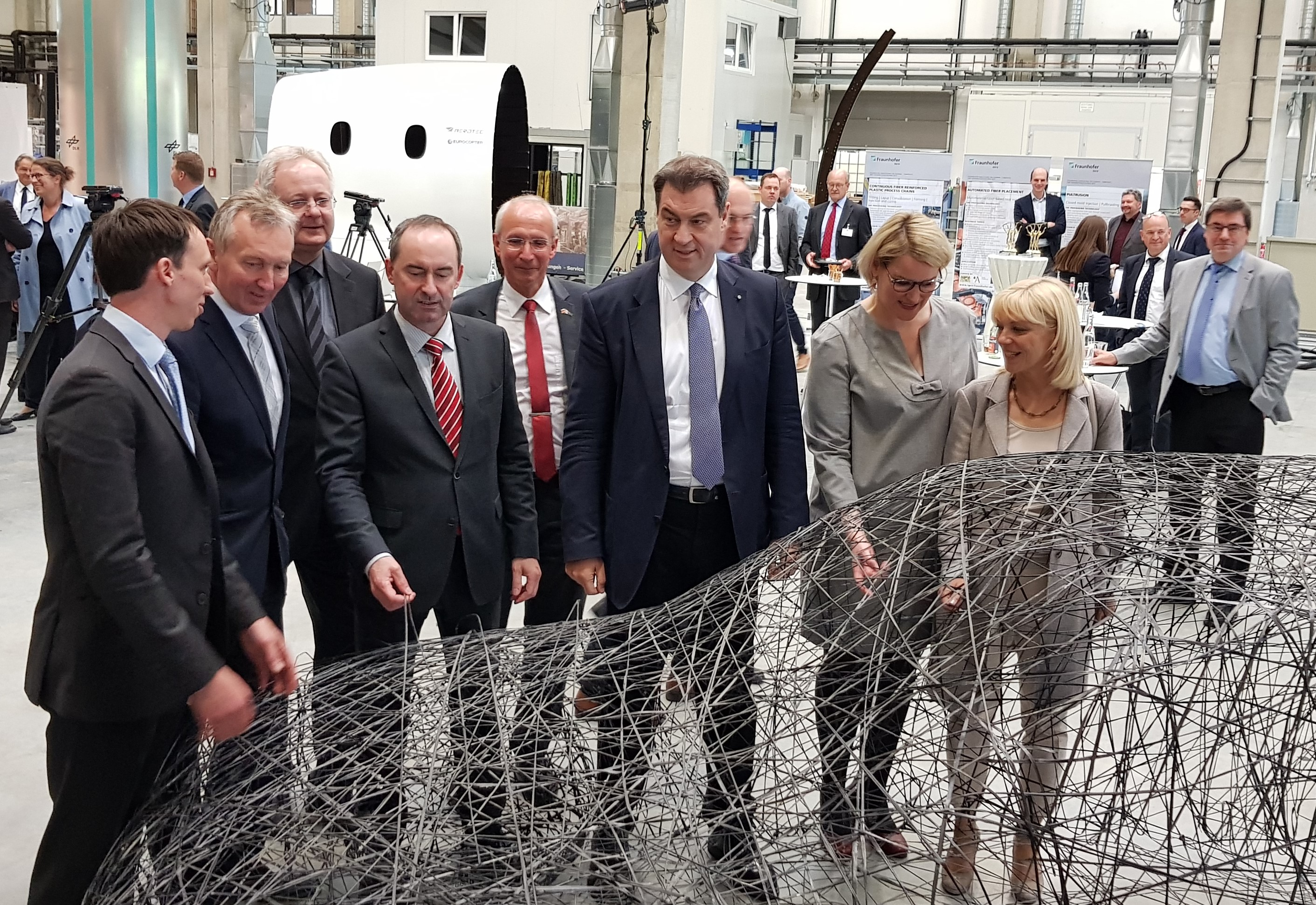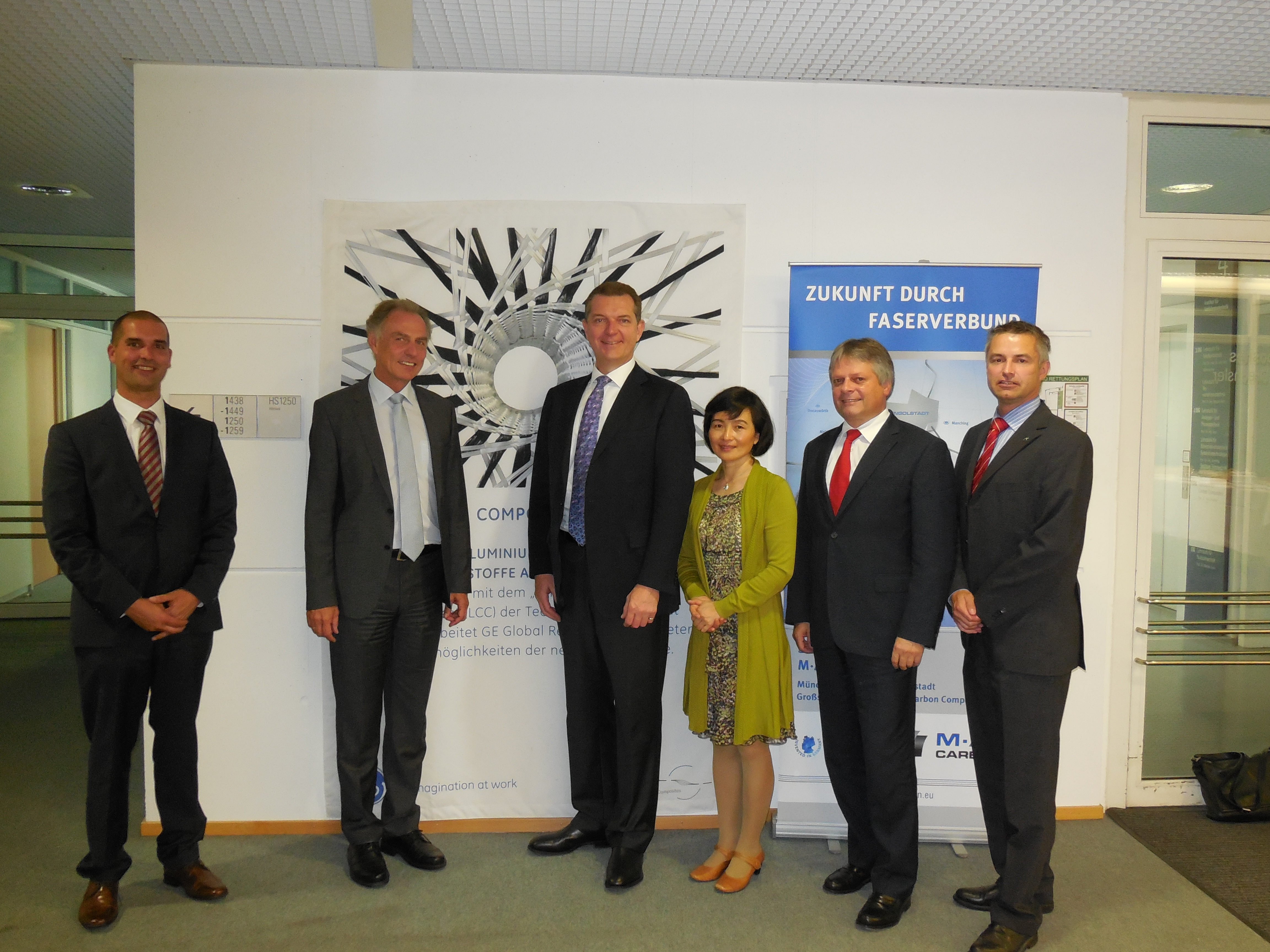 Besuch des LCC in Garching: Stefan Augustin, Senior Investment Manager bei Austrade, Dr. Hubert Jäger, SGL, Prof. Dr. Liqiu Meng, Vizepräsidentin für Internationales TUM, Peter Tesch, Australischer Botschafter für Deutschland, die Schweiz und Liechtenstein, Prof. Dr. Klaus Drechsler, Leiter des LCC, Rainer Kehrle, Clustermanager MAI Carbon