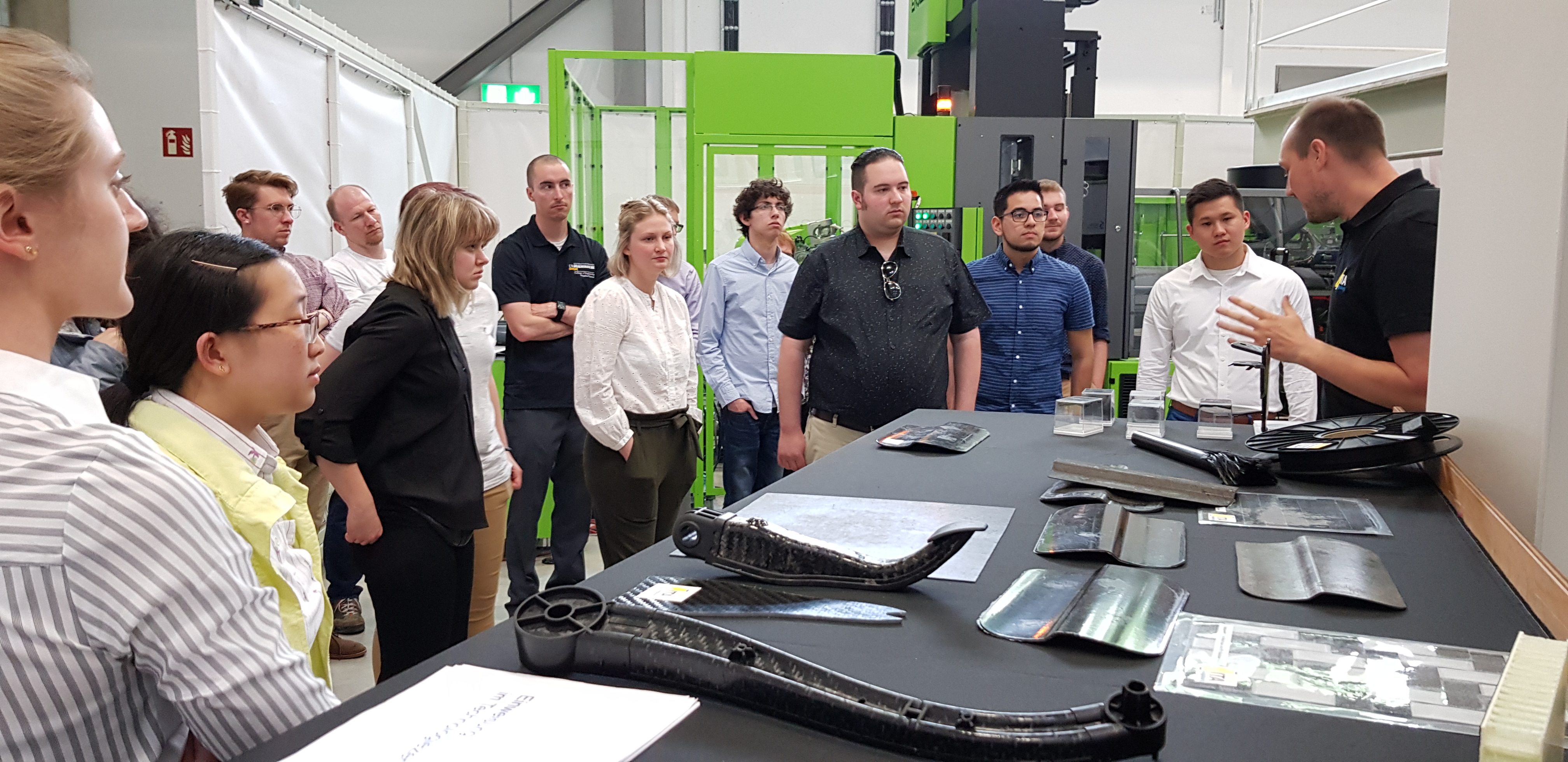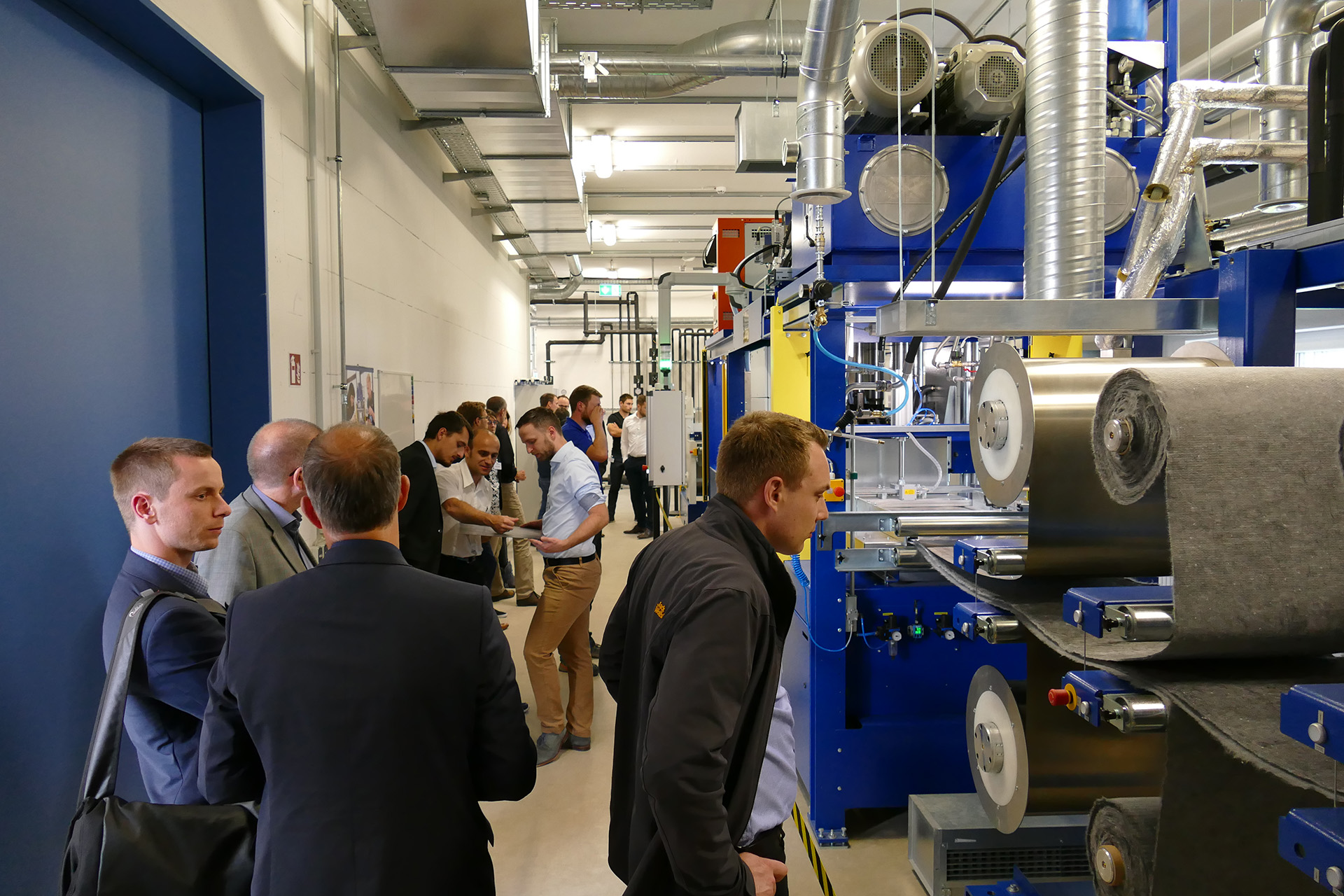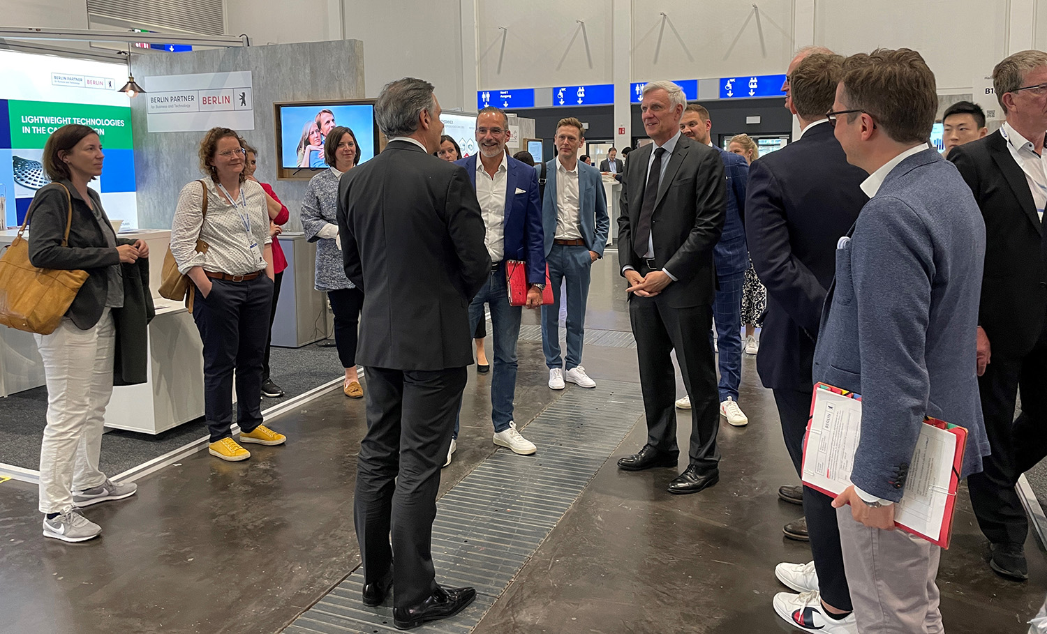 Besuch des LCC in Garching: Stefan Augustin, Senior Investment Manager bei Austrade, Dr. Hubert Jäger, SGL, Prof. Dr. Liqiu Meng, Vizepräsidentin für Internationales TUM, Peter Tesch, Australischer Botschafter für Deutschland, die Schweiz und Liechtenstein, Prof. Dr. Klaus Drechsler, Leiter des LCC, Rainer Kehrle, Clustermanager MAI Carbon