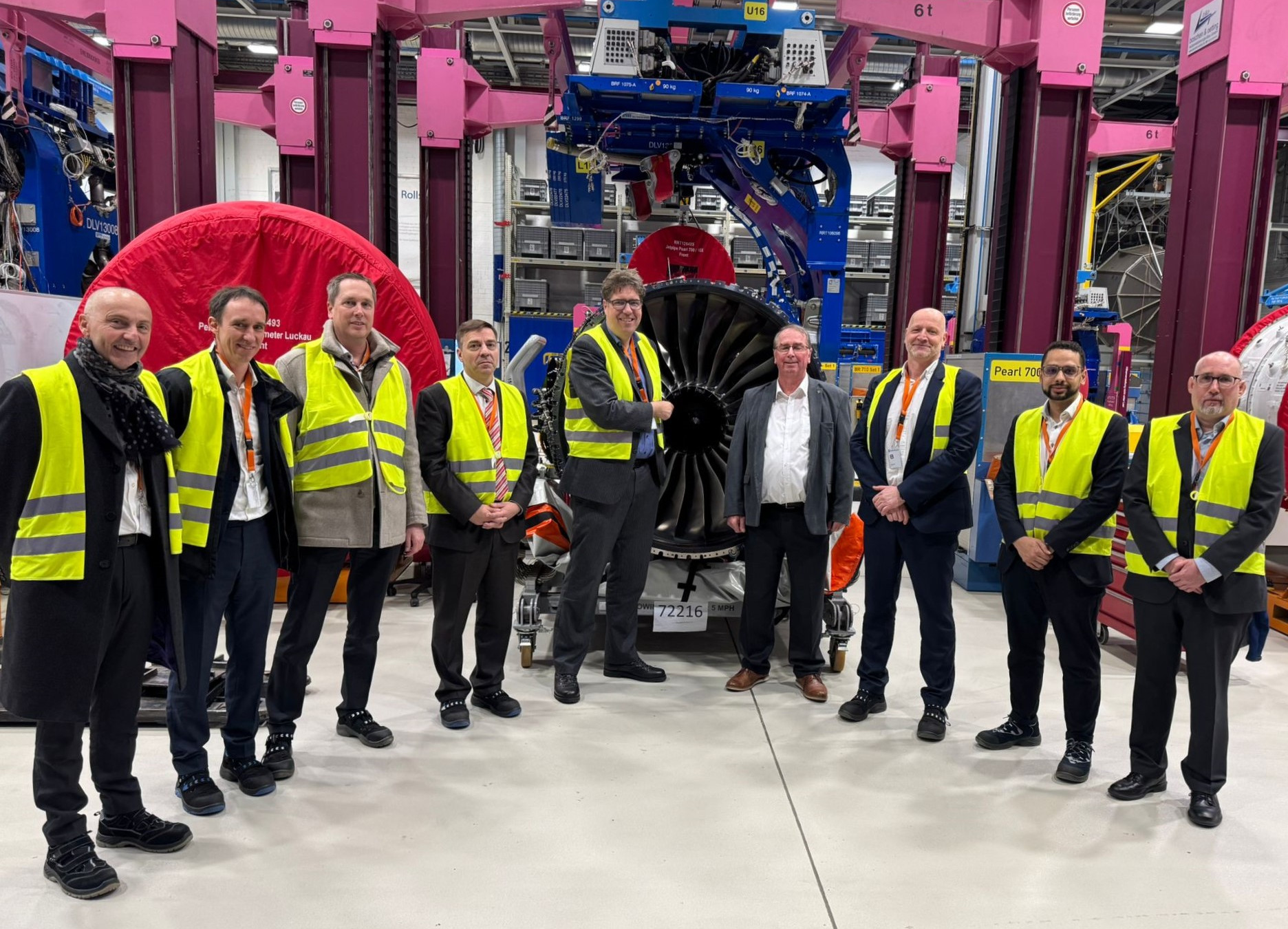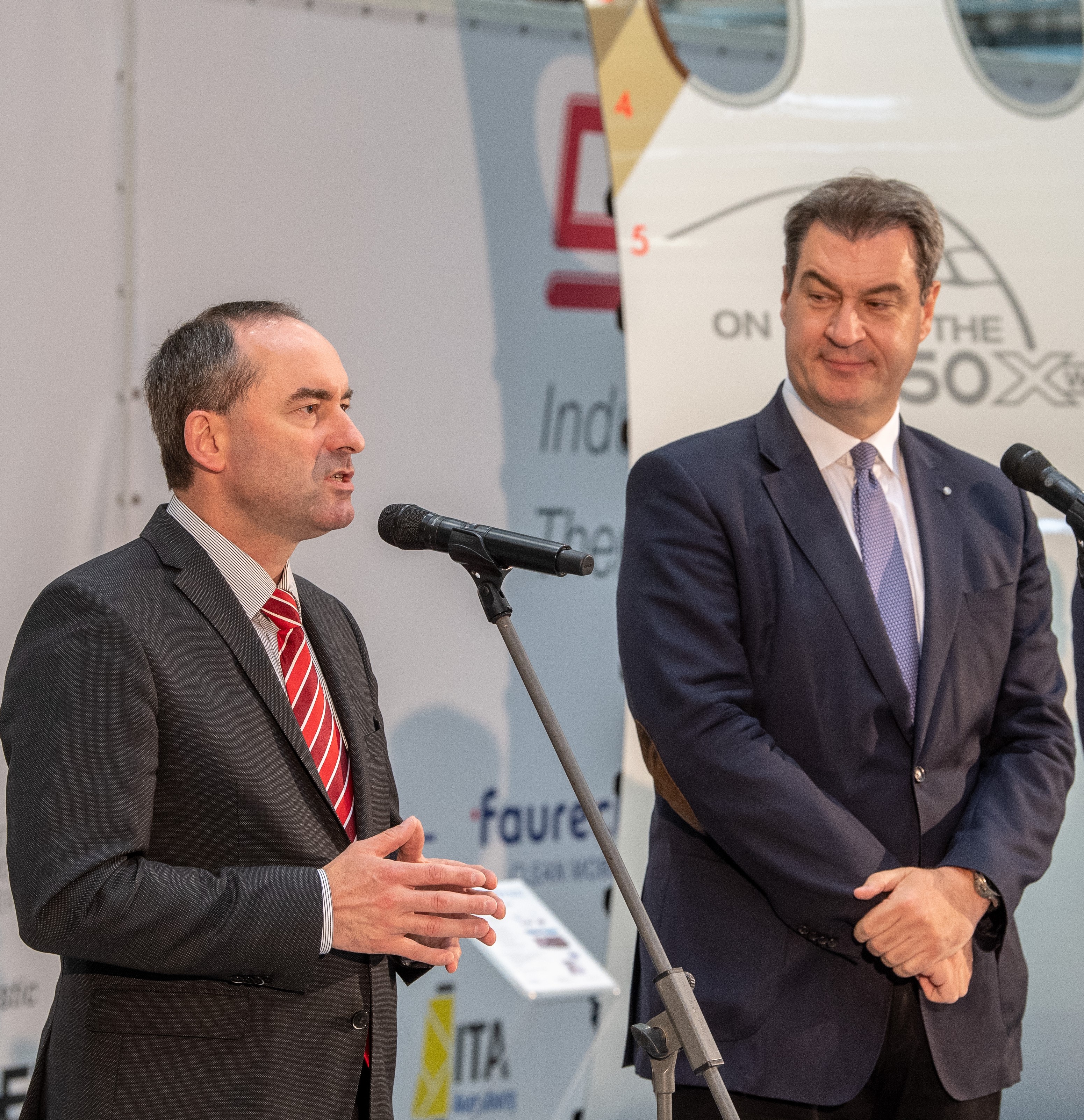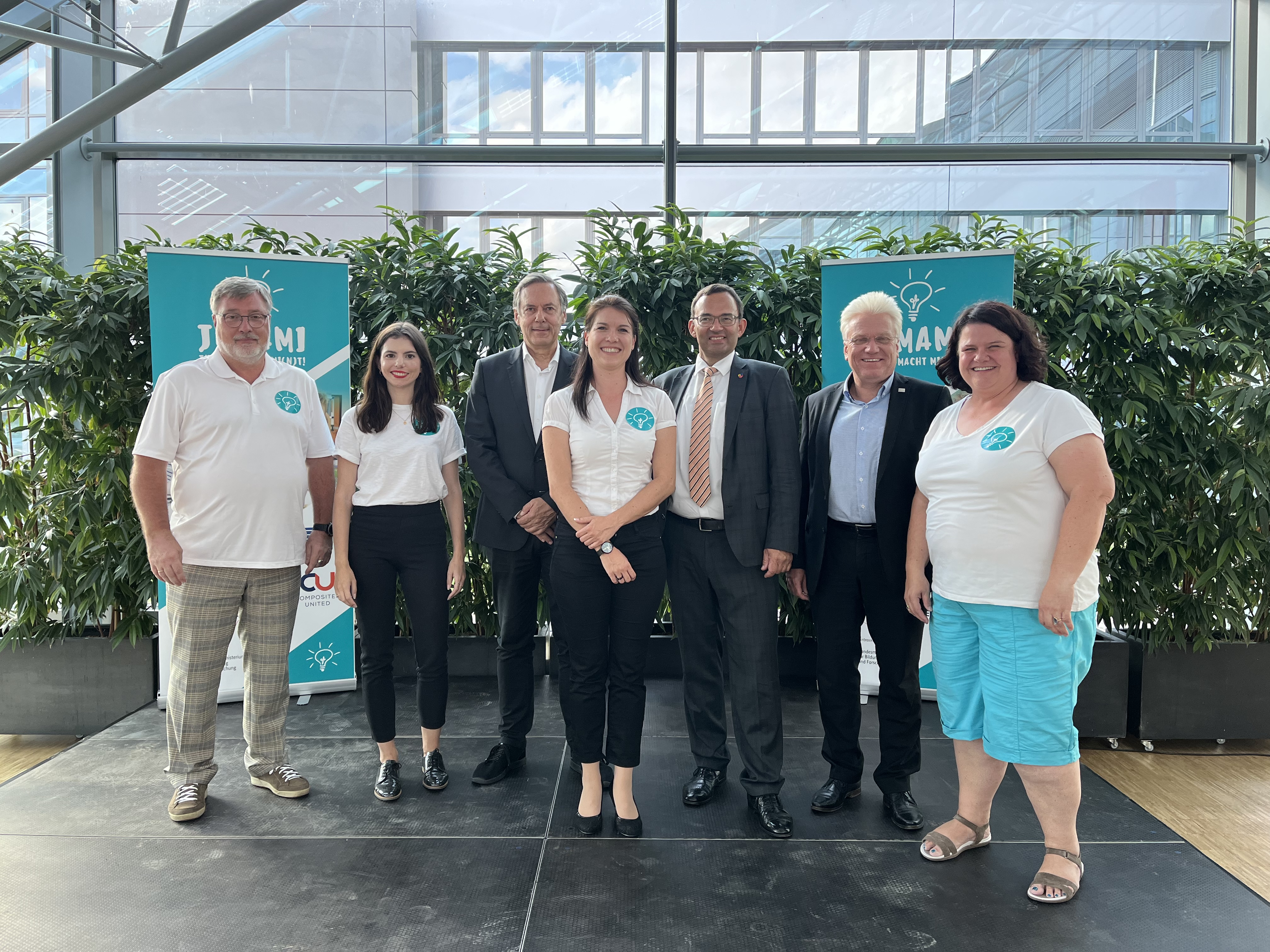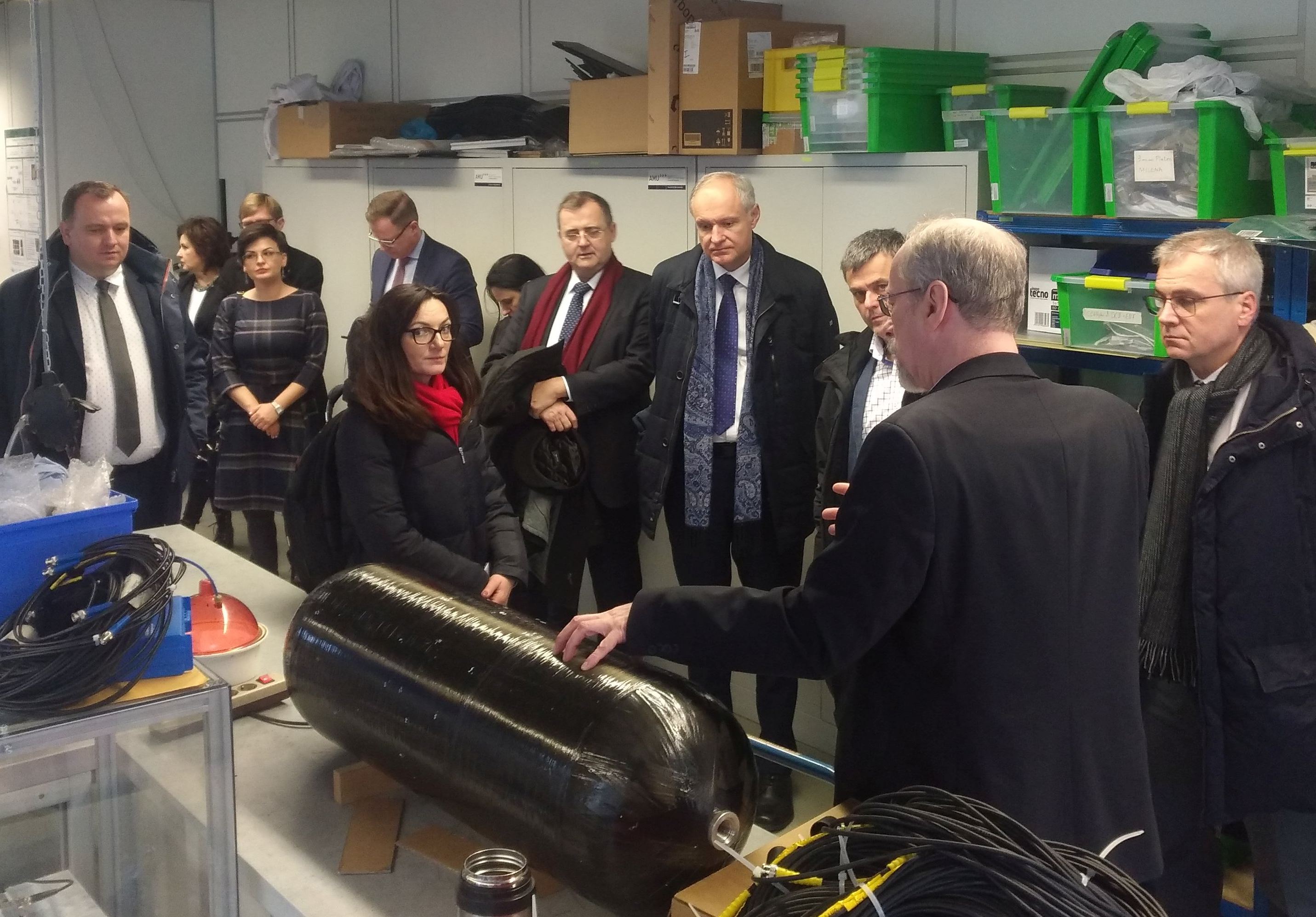 Besuch des LCC in Garching: Stefan Augustin, Senior Investment Manager bei Austrade, Dr. Hubert Jäger, SGL, Prof. Dr. Liqiu Meng, Vizepräsidentin für Internationales TUM, Peter Tesch, Australischer Botschafter für Deutschland, die Schweiz und Liechtenstein, Prof. Dr. Klaus Drechsler, Leiter des LCC, Rainer Kehrle, Clustermanager MAI Carbon