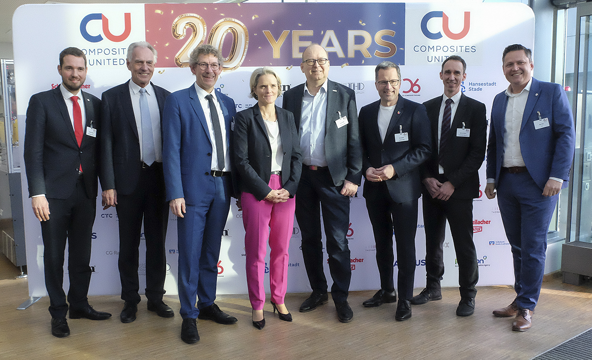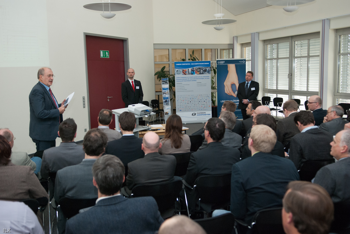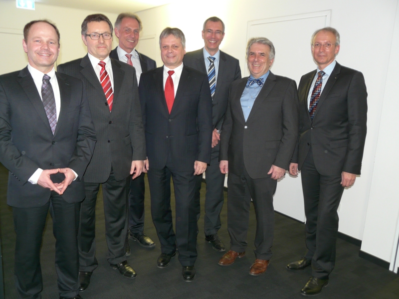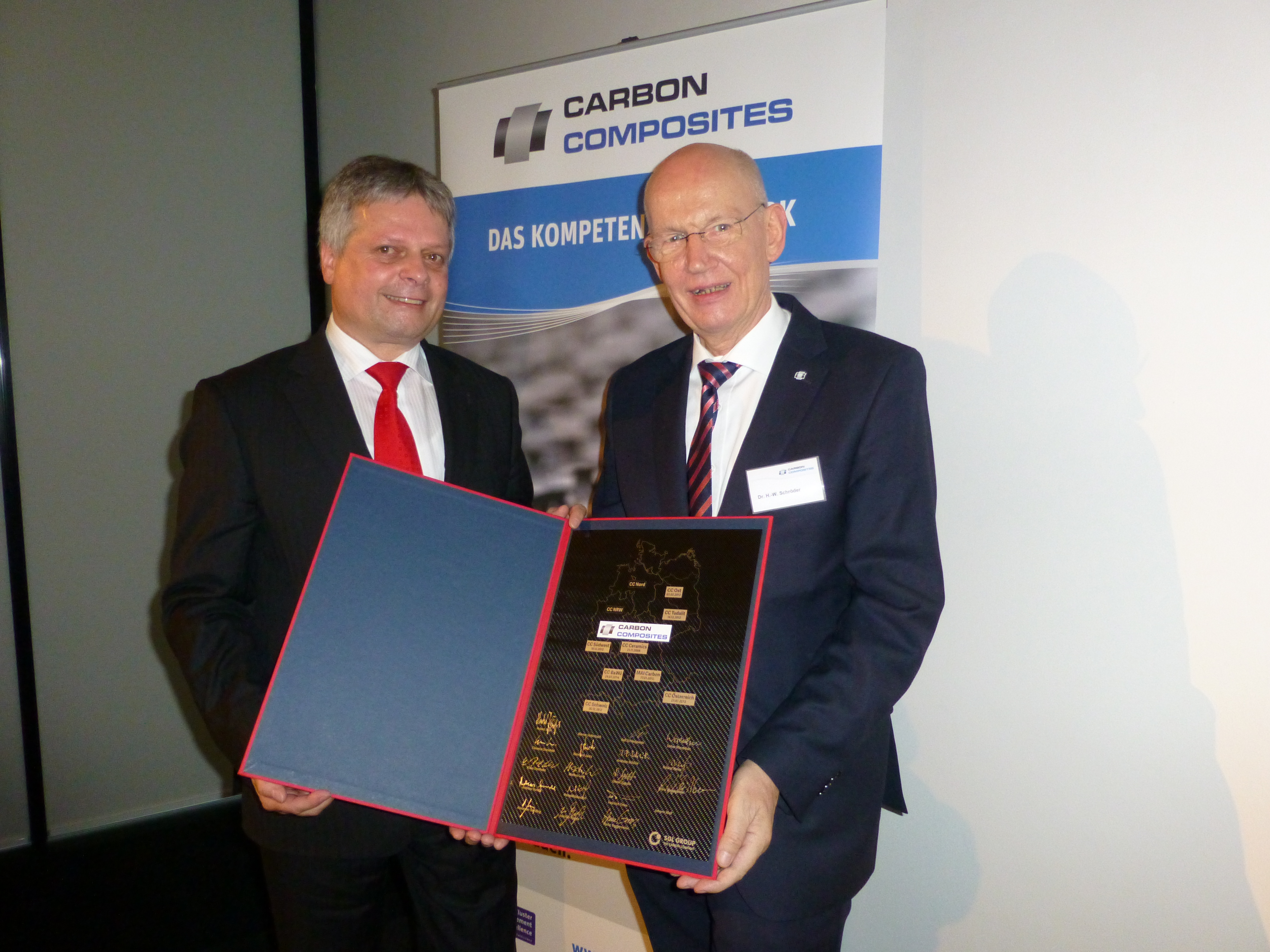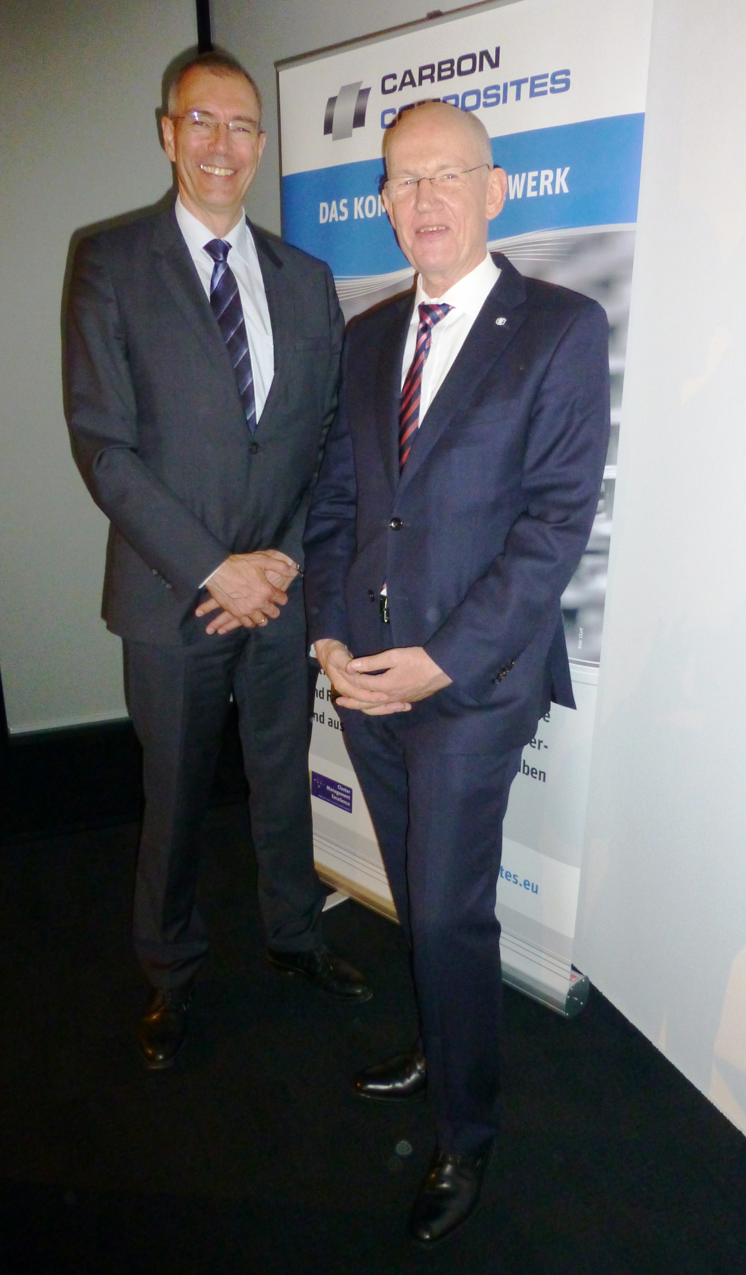 Der neu gewählte Vorstand des Carbon Composites e.V. (von links): Andreas Gundel, Geschäftsführer CADCON GmbH, Heinrich Timm, langjähriger Leiter des Audi-Leichtbauzentrums, Prof. Dr. Klaus Drechsler, Leiter des Fraunhofer-Instituts für „Funktionalen Leichtbau“ und des Lehrstuhls für Carbon Composites an der TU München, Dr. Hubert Jäger, Konzernforschungsleiter der SGL Group, Alexander Gundling, Leiter des Geschäftsfeldes Innovation und Umwelt der IHK Schwaben, Franz Weißgerber, Geschäftsführer iii-carbon und Prof. Heinz Voggenreiter, Leiter des Instituts für Bauweisen- und Konstruktionsforschung des Deutschen Zentrums für Luft- und Raumfahrt (DLR) sowie des DLR-Instituts für Leichtbauproduktionstechnologie