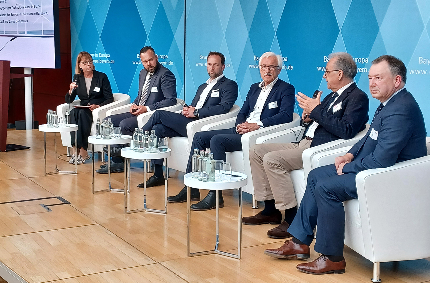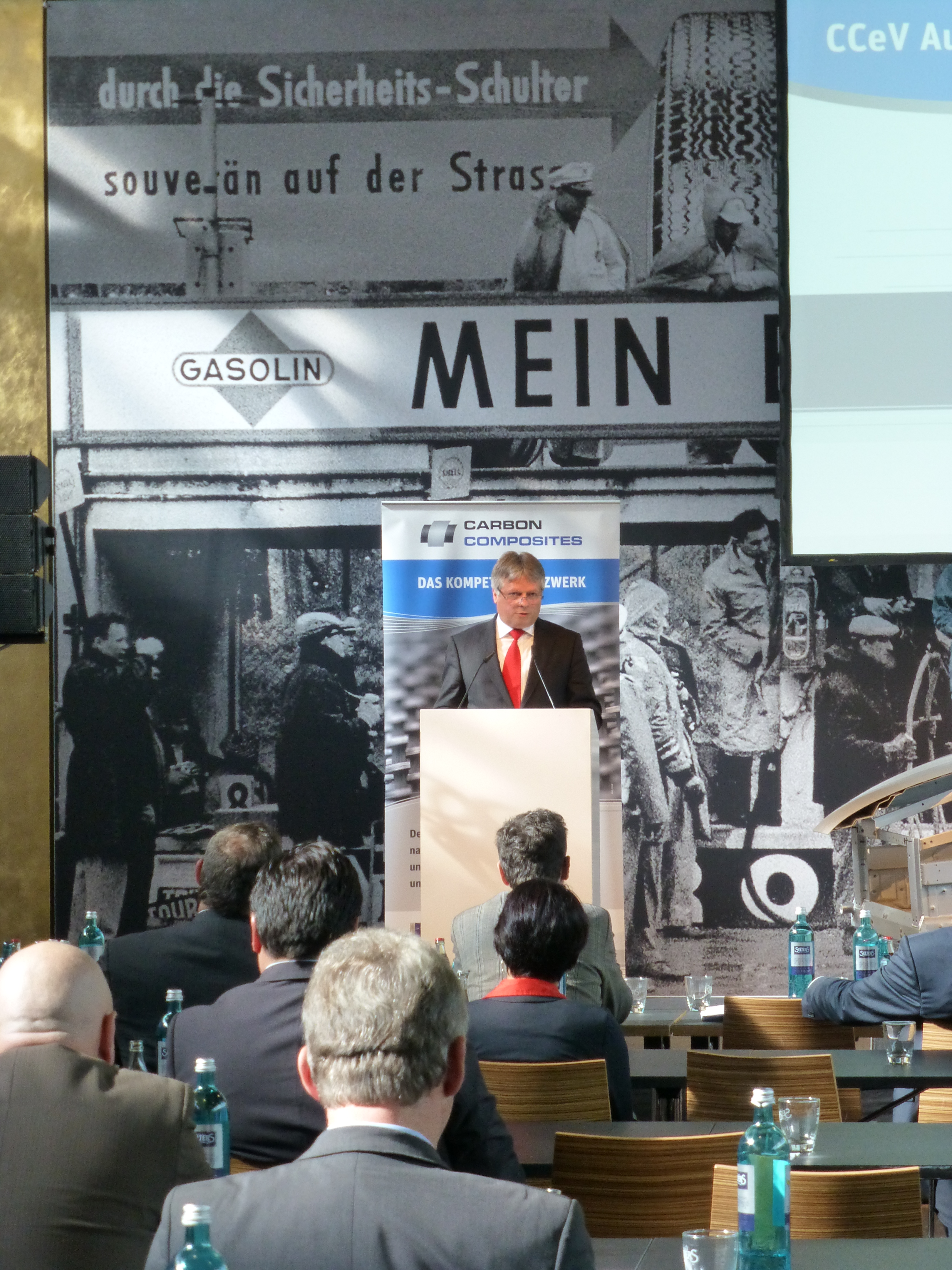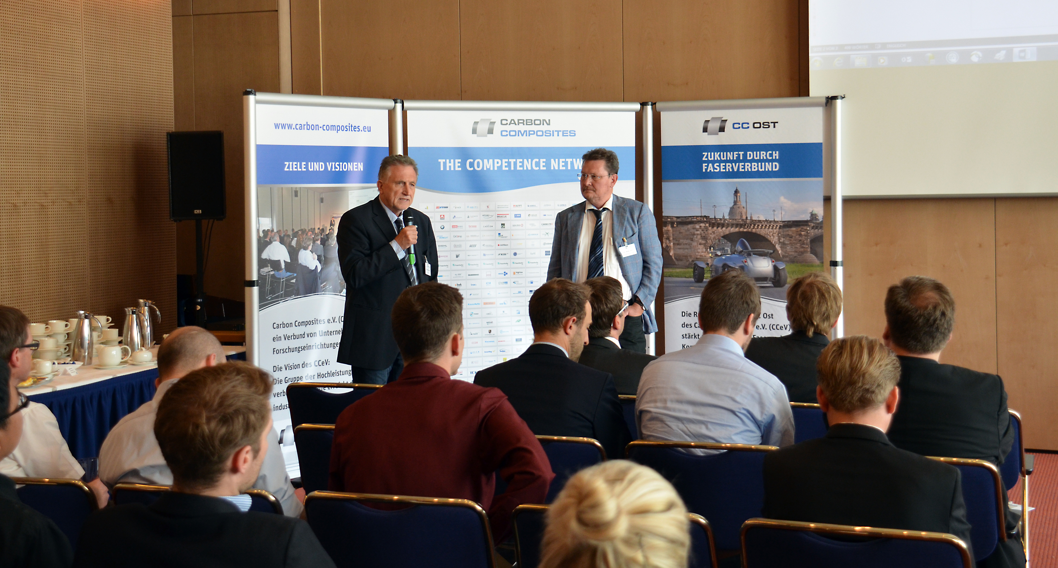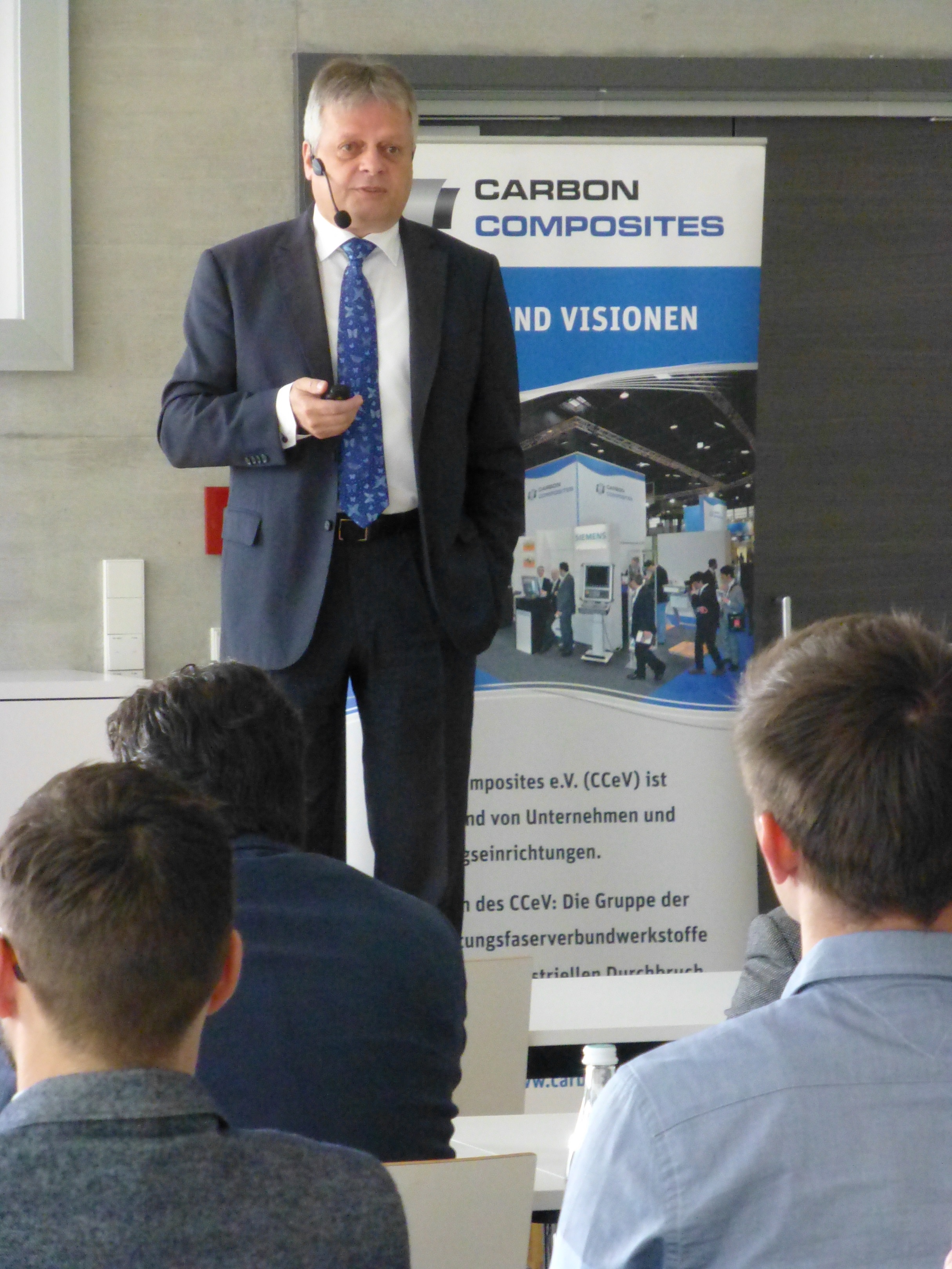 Der neu gewählte Vorstand des Carbon Composites e.V. (von links): Andreas Gundel, Geschäftsführer CADCON GmbH, Heinrich Timm, langjähriger Leiter des Audi-Leichtbauzentrums, Prof. Dr. Klaus Drechsler, Leiter des Fraunhofer-Instituts für „Funktionalen Leichtbau“ und des Lehrstuhls für Carbon Composites an der TU München, Dr. Hubert Jäger, Konzernforschungsleiter der SGL Group, Alexander Gundling, Leiter des Geschäftsfeldes Innovation und Umwelt der IHK Schwaben, Franz Weißgerber, Geschäftsführer iii-carbon und Prof. Heinz Voggenreiter, Leiter des Instituts für Bauweisen- und Konstruktionsforschung des Deutschen Zentrums für Luft- und Raumfahrt (DLR) sowie des DLR-Instituts für Leichtbauproduktionstechnologie