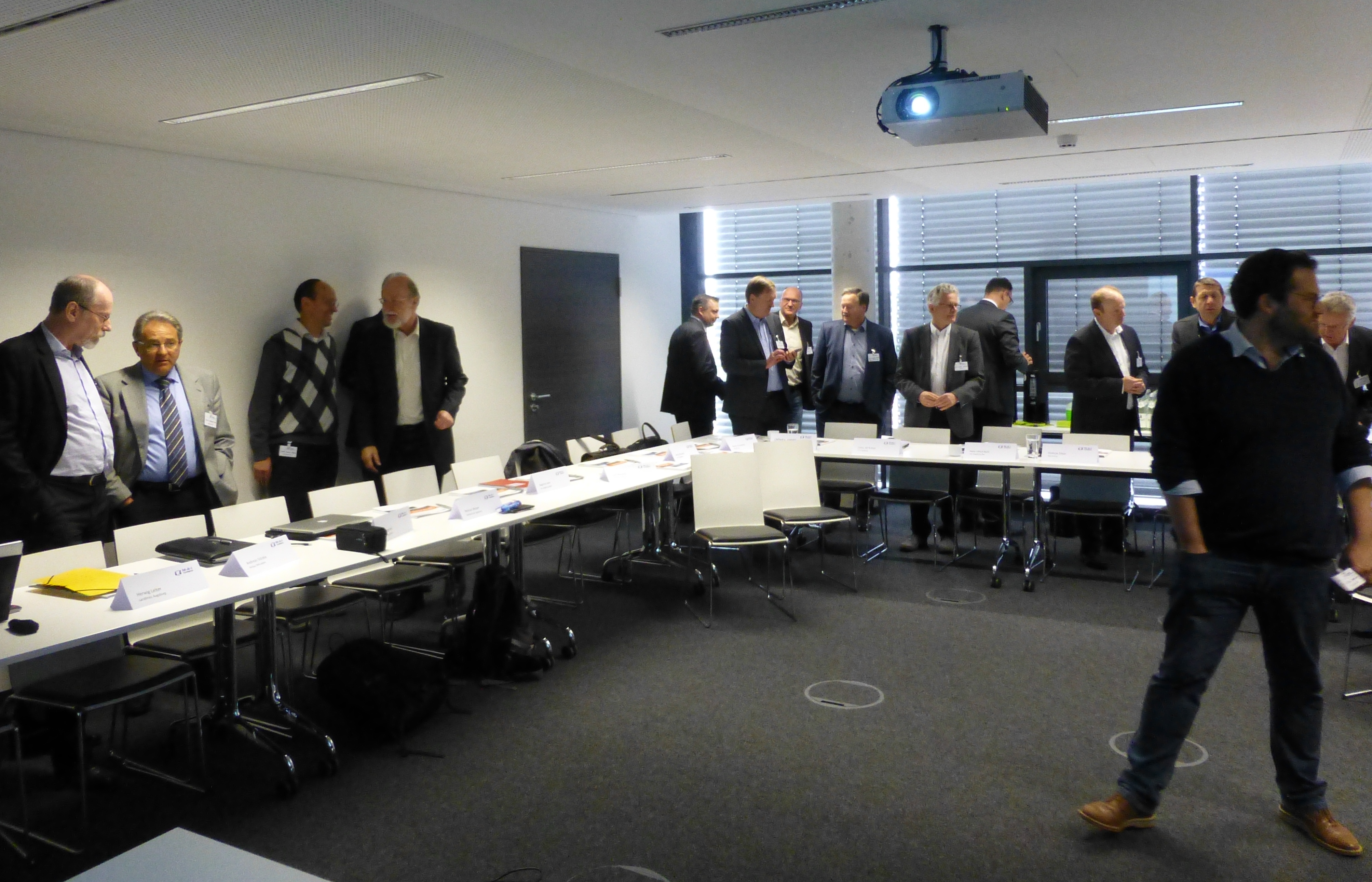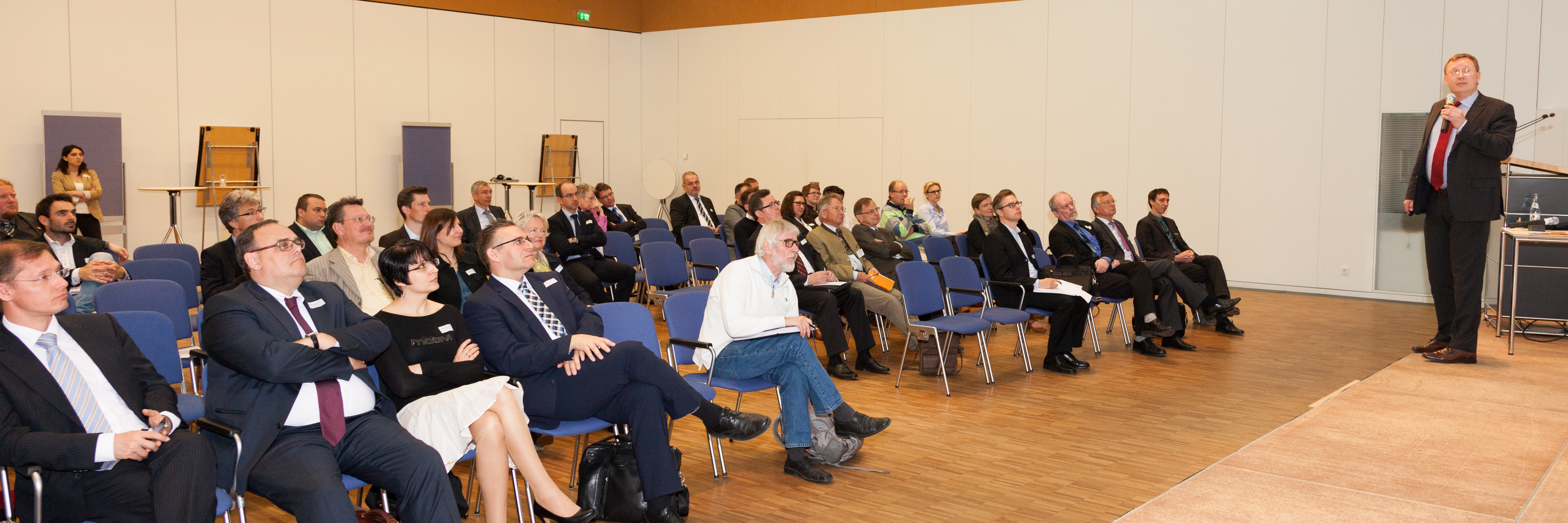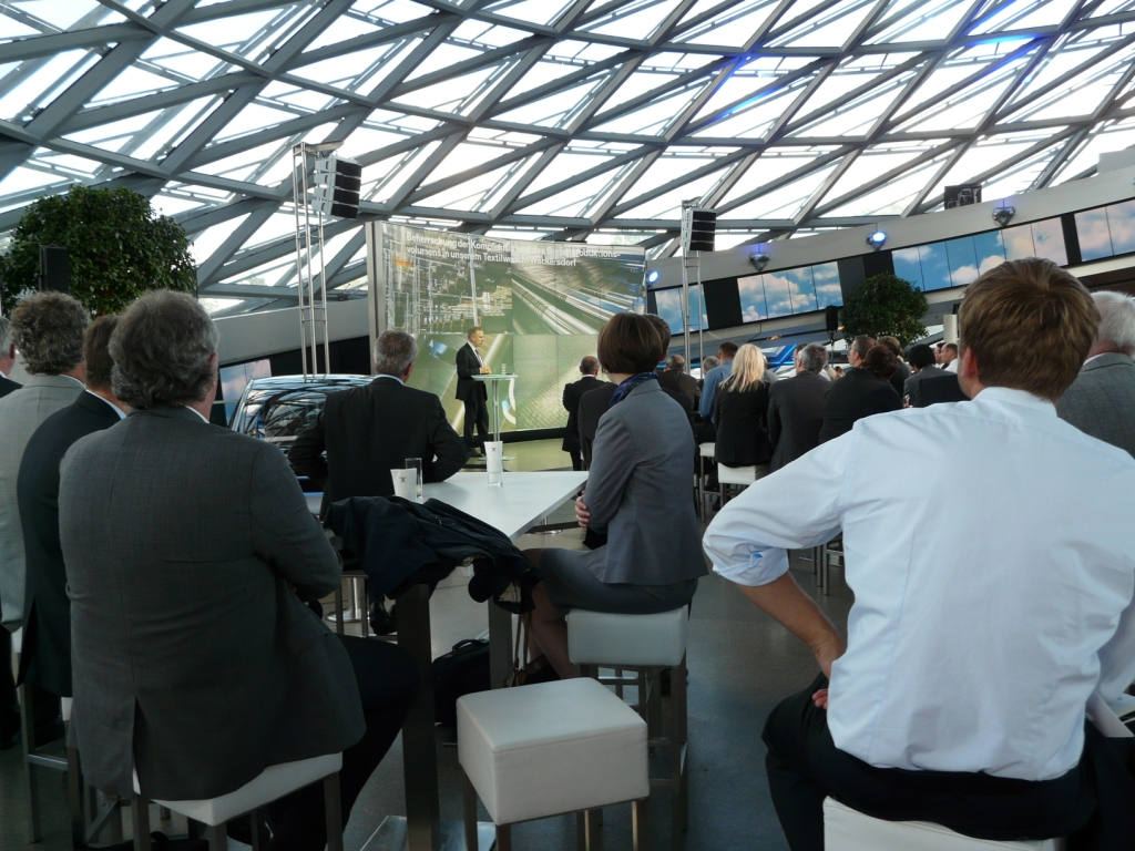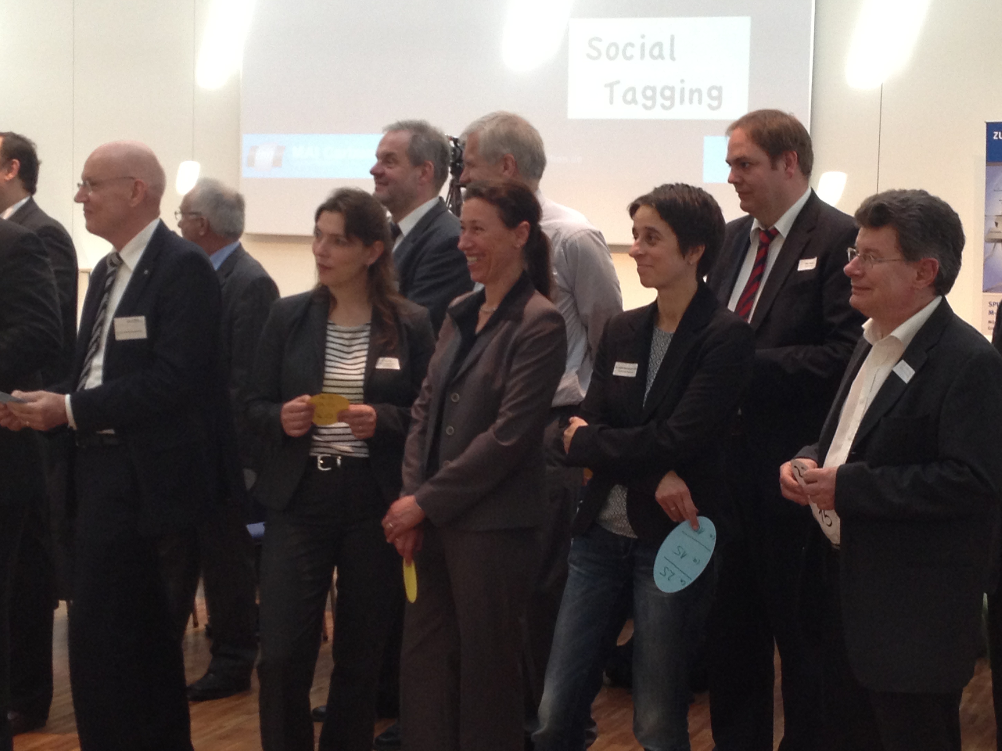 Gäste auf der "Verlobungsfeier" des CC TUDALIT in Dresden: Ulrich Assmann, Geschäftsführer TUDAG, Dr. Thomas Heber, Geschäftsführer CC Ost, Silvio Weiland (stellvertretender Geschäftsführer TUDALIT e.V.), Roy Thyroff, Geschäftsführer TUDALIT e.V., Dr. Frank Schladitz, Geschäftsführer CC TUDALIT (hinten von links), Dr. Hans-Wolfgang Schröder, Geschä