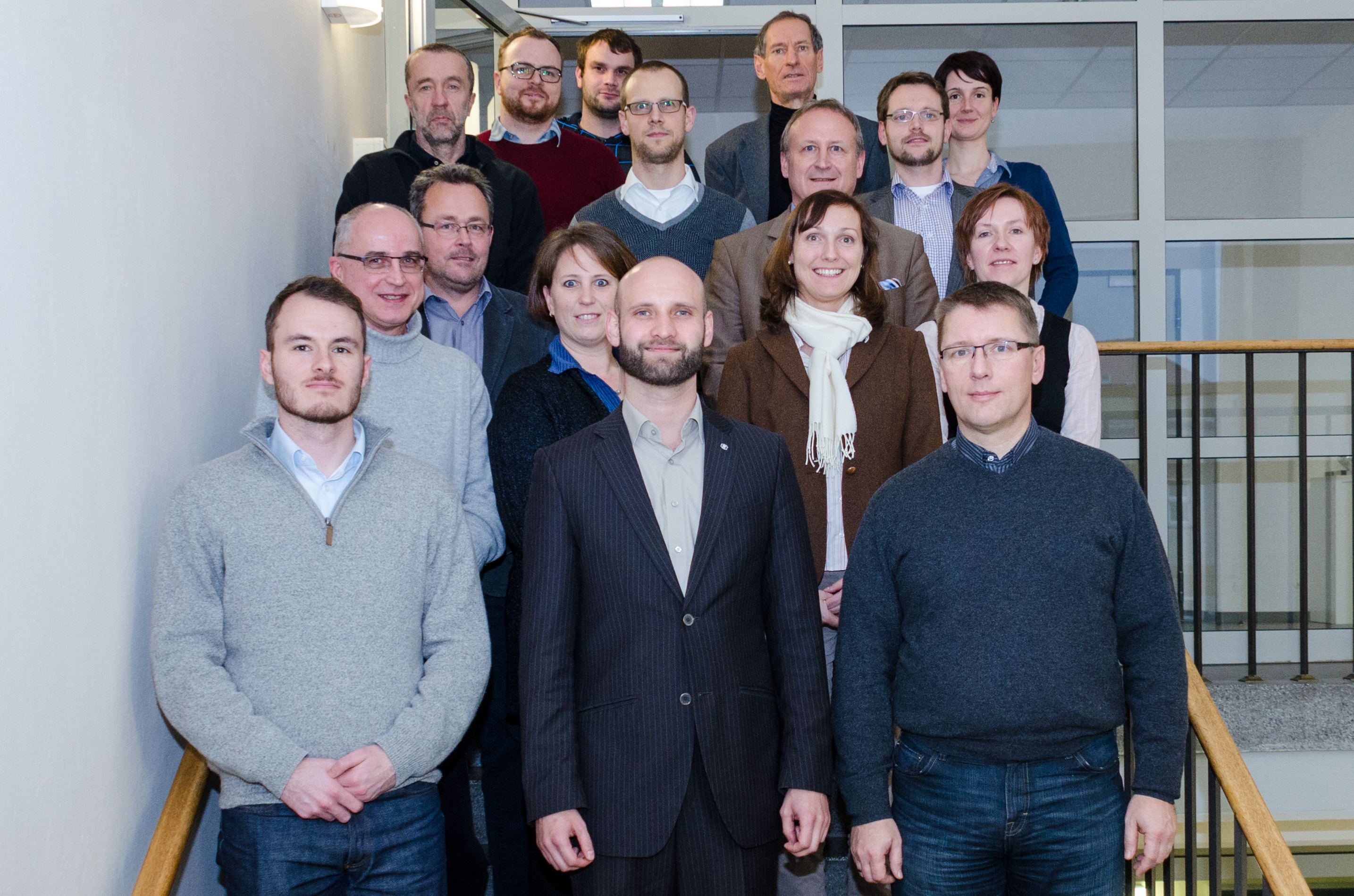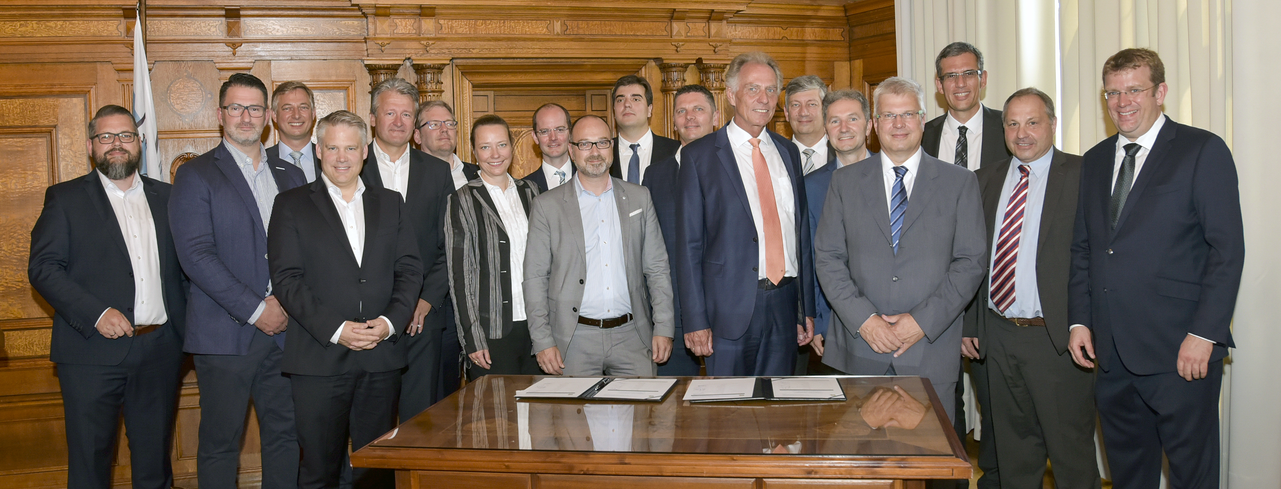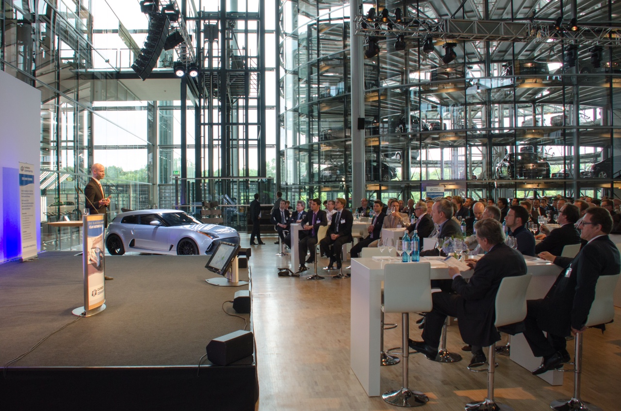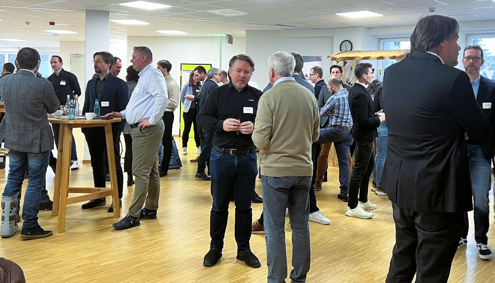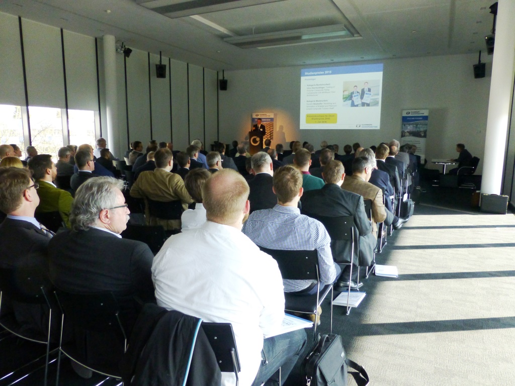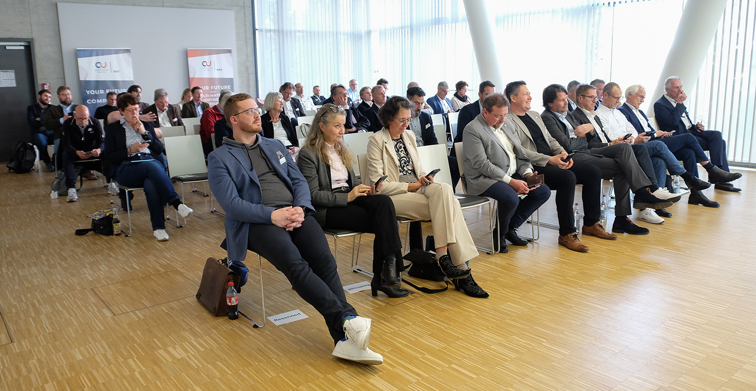 Gäste auf der "Verlobungsfeier" des CC TUDALIT in Dresden: Ulrich Assmann, Geschäftsführer TUDAG, Dr. Thomas Heber, Geschäftsführer CC Ost, Silvio Weiland (stellvertretender Geschäftsführer TUDALIT e.V.), Roy Thyroff, Geschäftsführer TUDALIT e.V., Dr. Frank Schladitz, Geschäftsführer CC TUDALIT (hinten von links), Dr. Hans-Wolfgang Schröder, Geschä