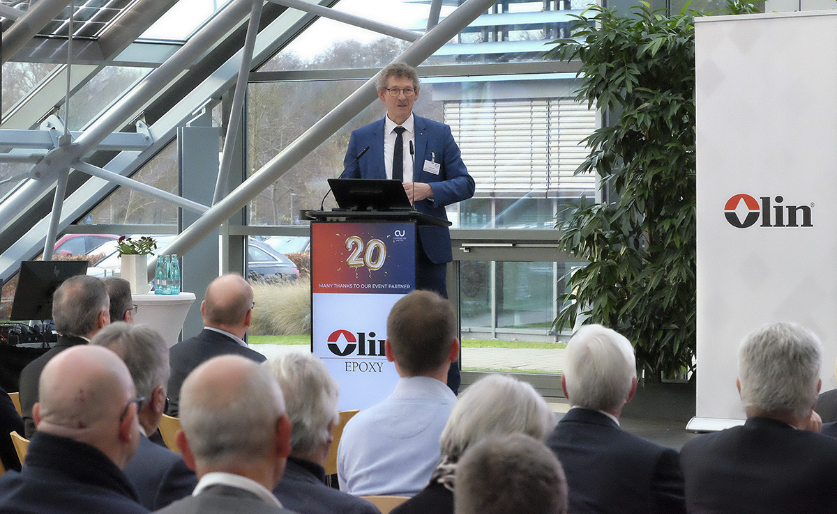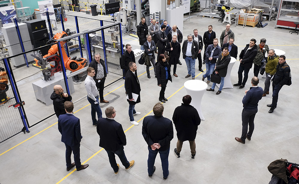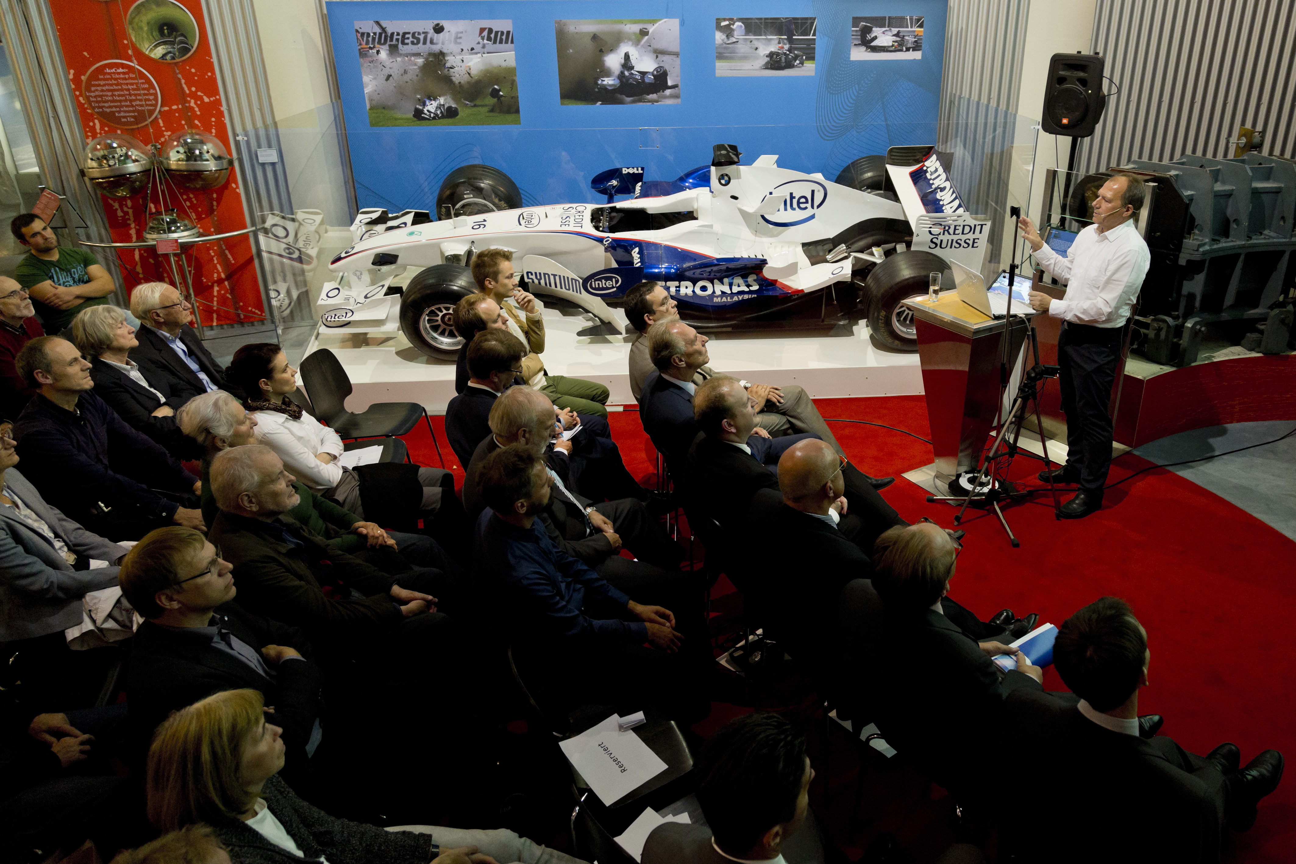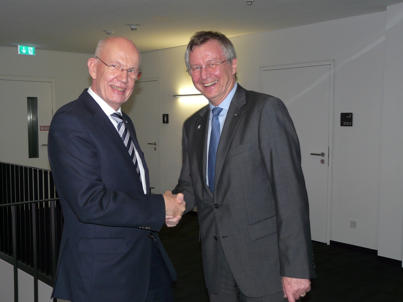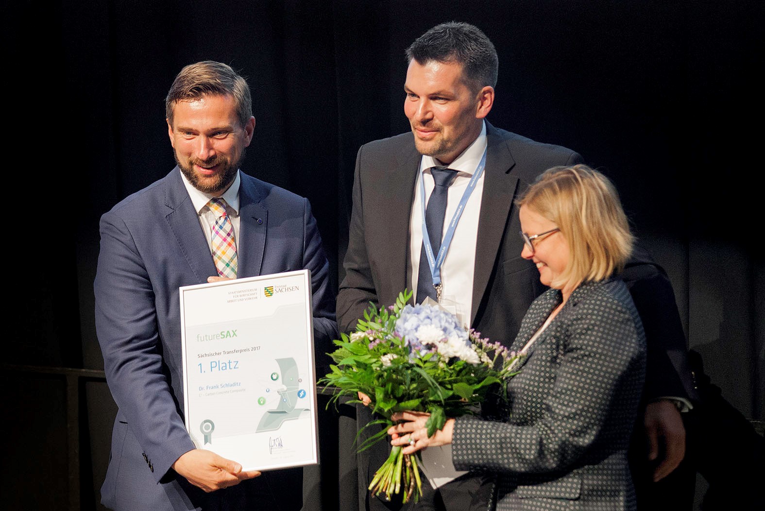 Gäste auf der "Verlobungsfeier" des CC TUDALIT in Dresden: Ulrich Assmann, Geschäftsführer TUDAG, Dr. Thomas Heber, Geschäftsführer CC Ost, Silvio Weiland (stellvertretender Geschäftsführer TUDALIT e.V.), Roy Thyroff, Geschäftsführer TUDALIT e.V., Dr. Frank Schladitz, Geschäftsführer CC TUDALIT (hinten von links), Dr. Hans-Wolfgang Schröder, Geschä
