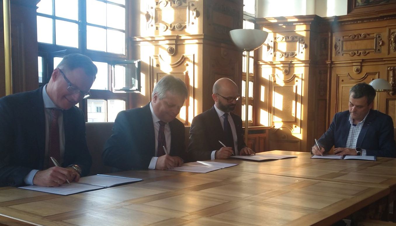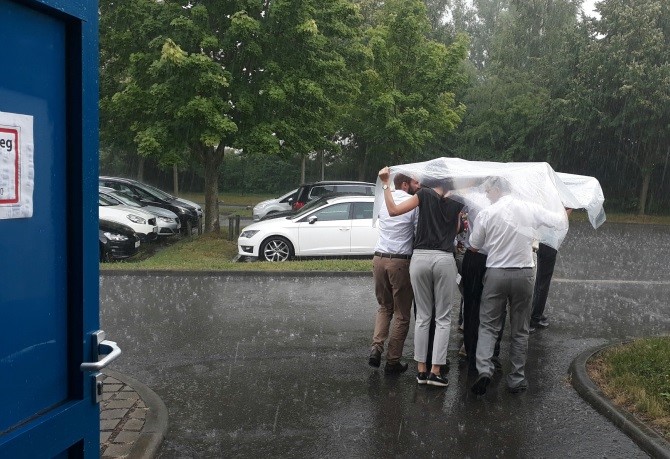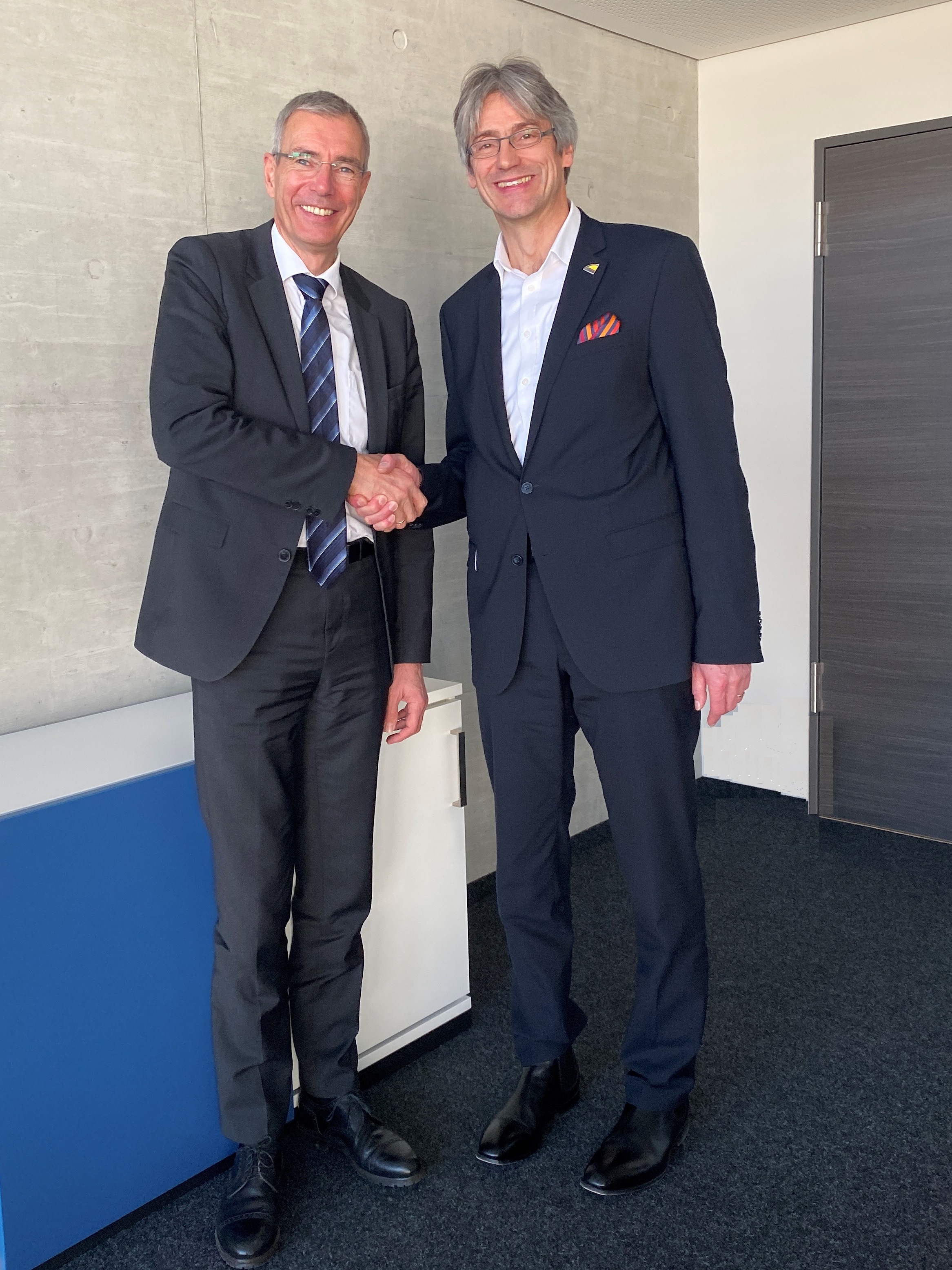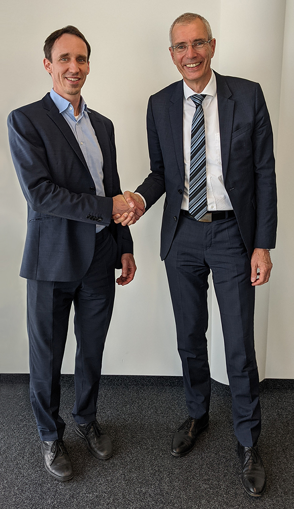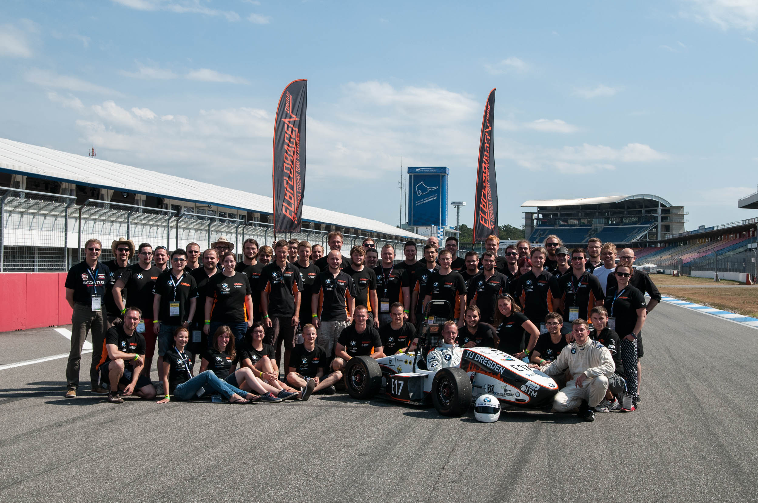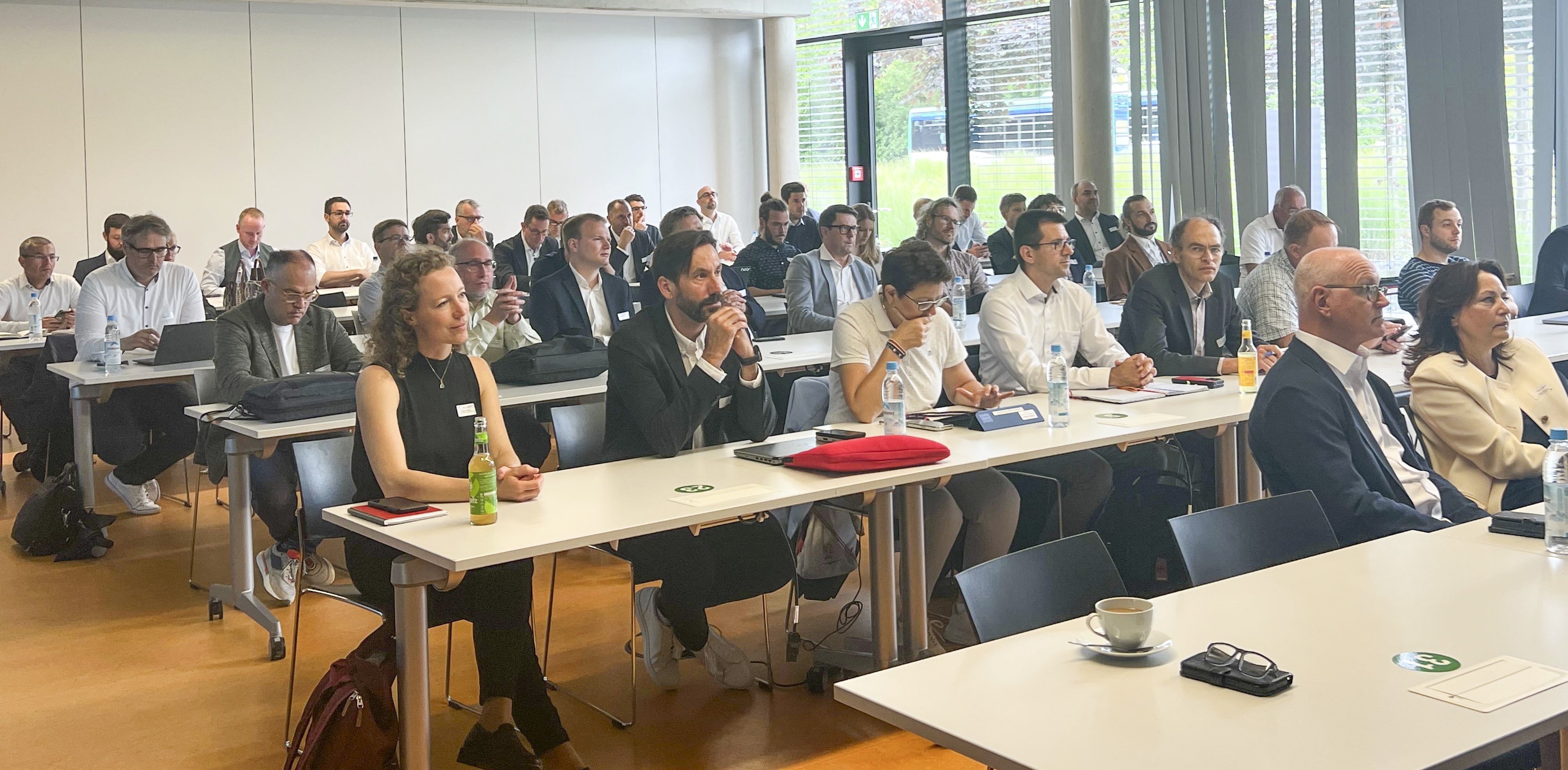 Gäste auf der "Verlobungsfeier" des CC TUDALIT in Dresden: Ulrich Assmann, Geschäftsführer TUDAG, Dr. Thomas Heber, Geschäftsführer CC Ost, Silvio Weiland (stellvertretender Geschäftsführer TUDALIT e.V.), Roy Thyroff, Geschäftsführer TUDALIT e.V., Dr. Frank Schladitz, Geschäftsführer CC TUDALIT (hinten von links), Dr. Hans-Wolfgang Schröder, Geschä