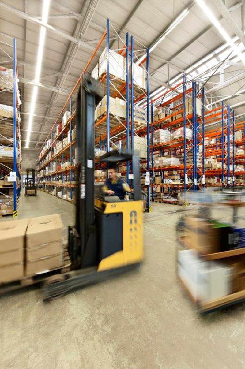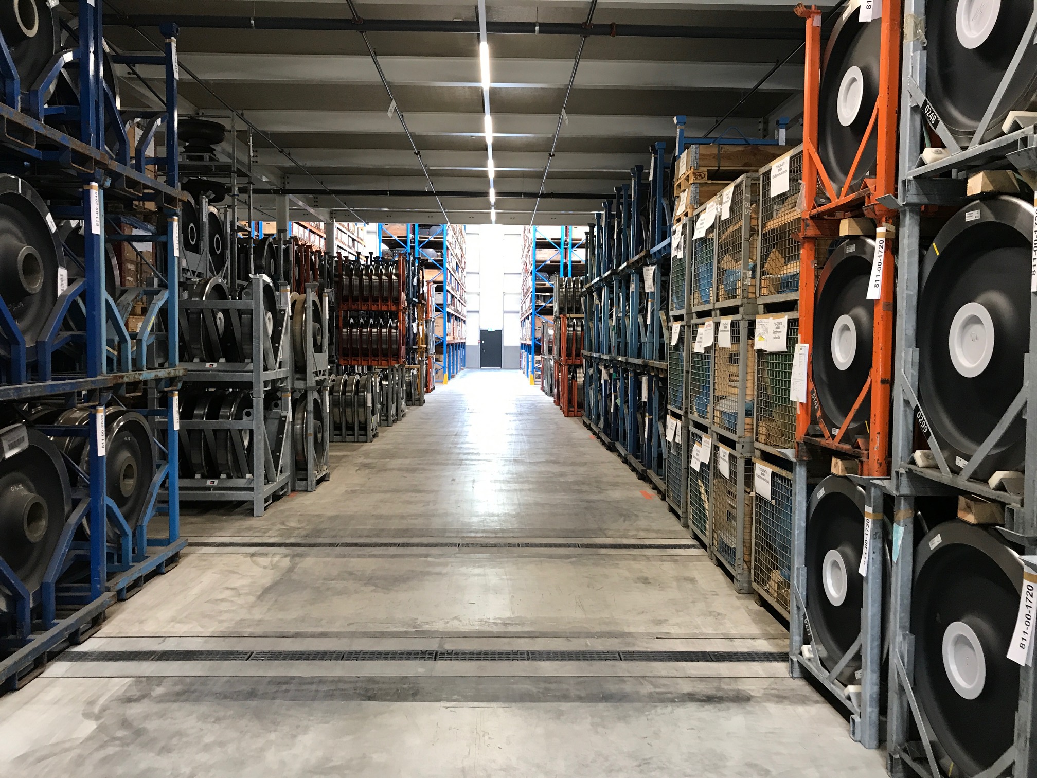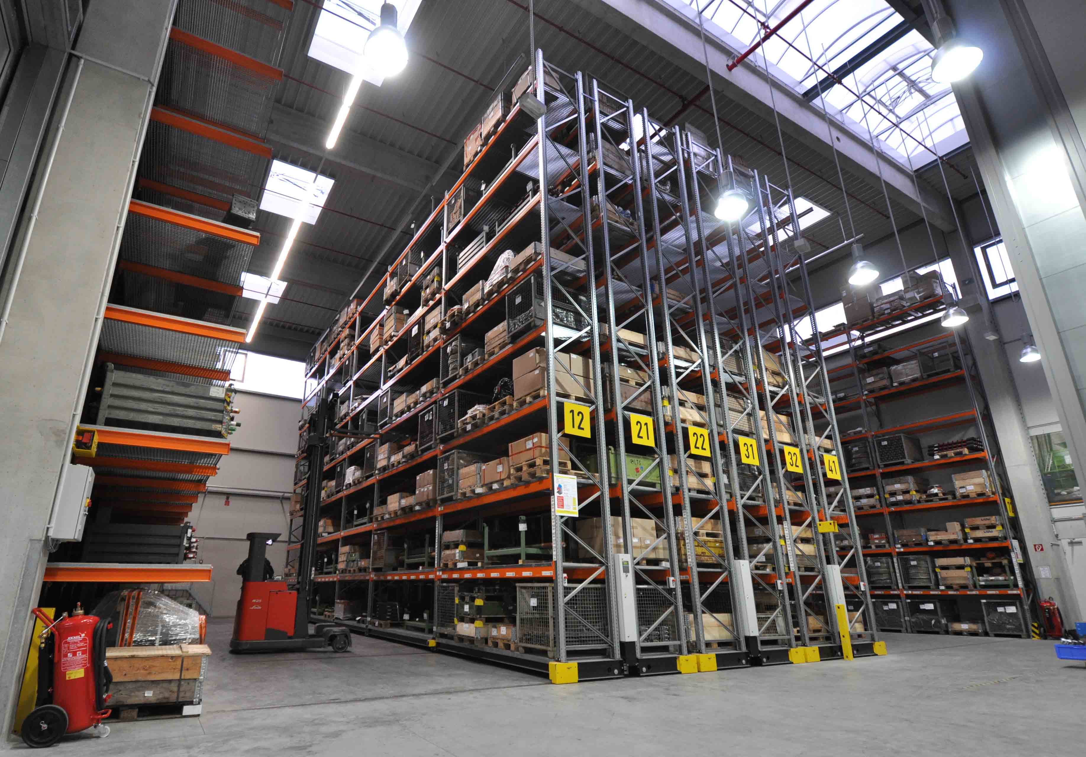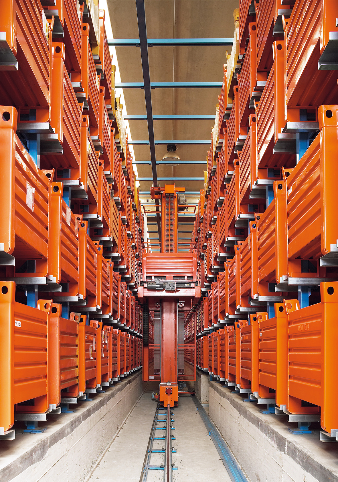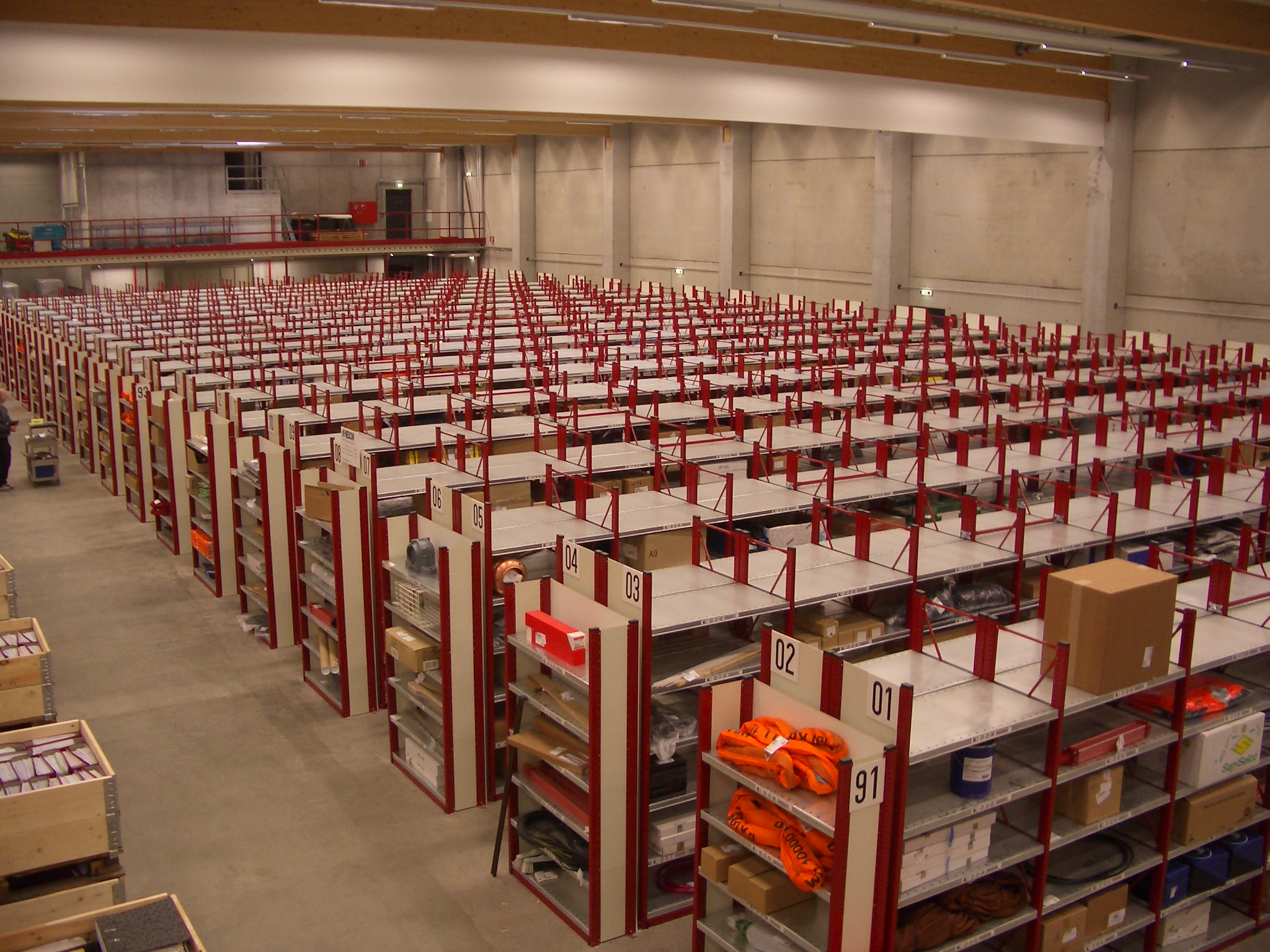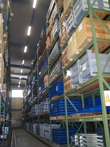 Hochregalgasse im Lager der Doka Schalungstechnik GmbH