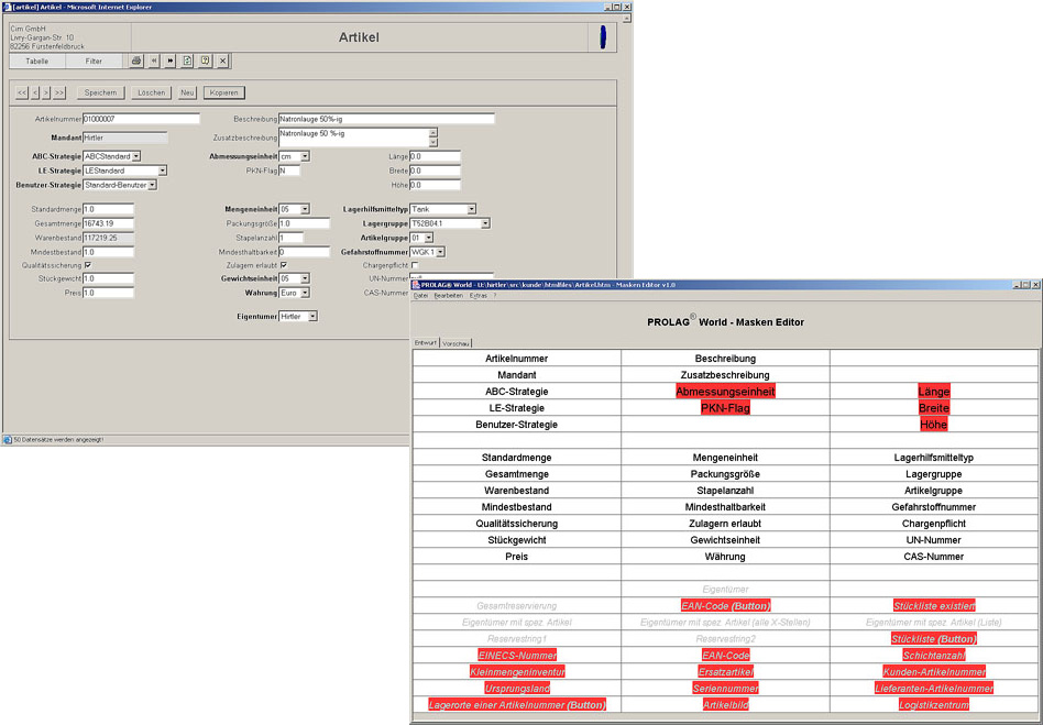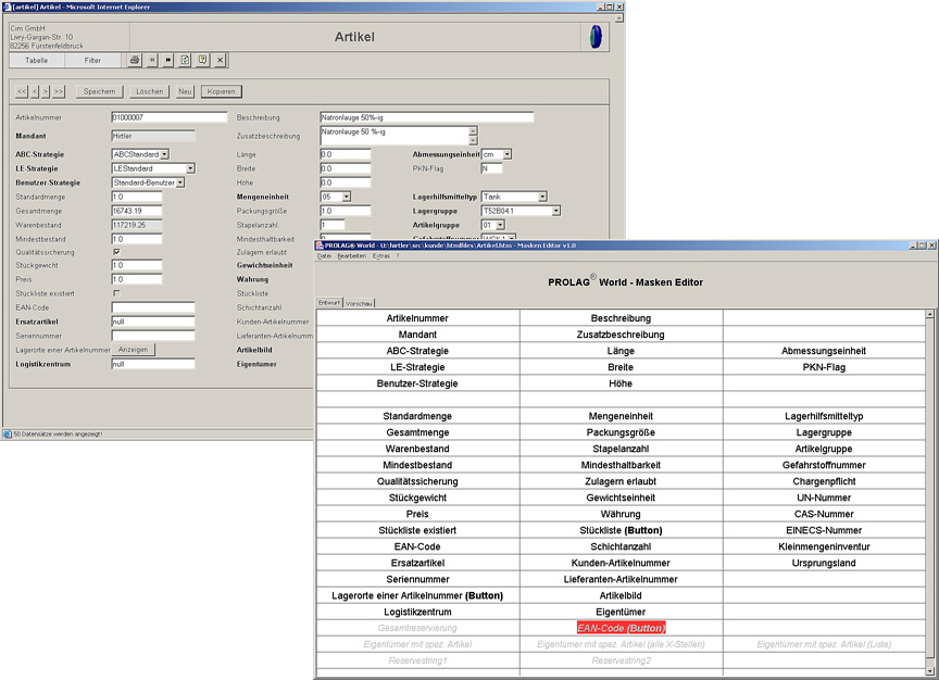 Die detailierte Maskenansicht "Artikelstamm" und deren Ausprägung im Maskeneditor