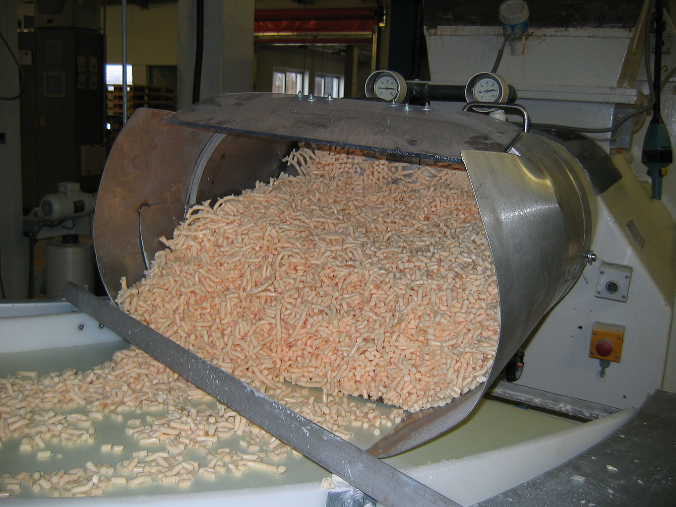 Seifennudeln. Nur ein Schritt von vielen in einer Kette von unterschiedlichen Produktionsstufe zur Seifenherstellung bei Hirtler