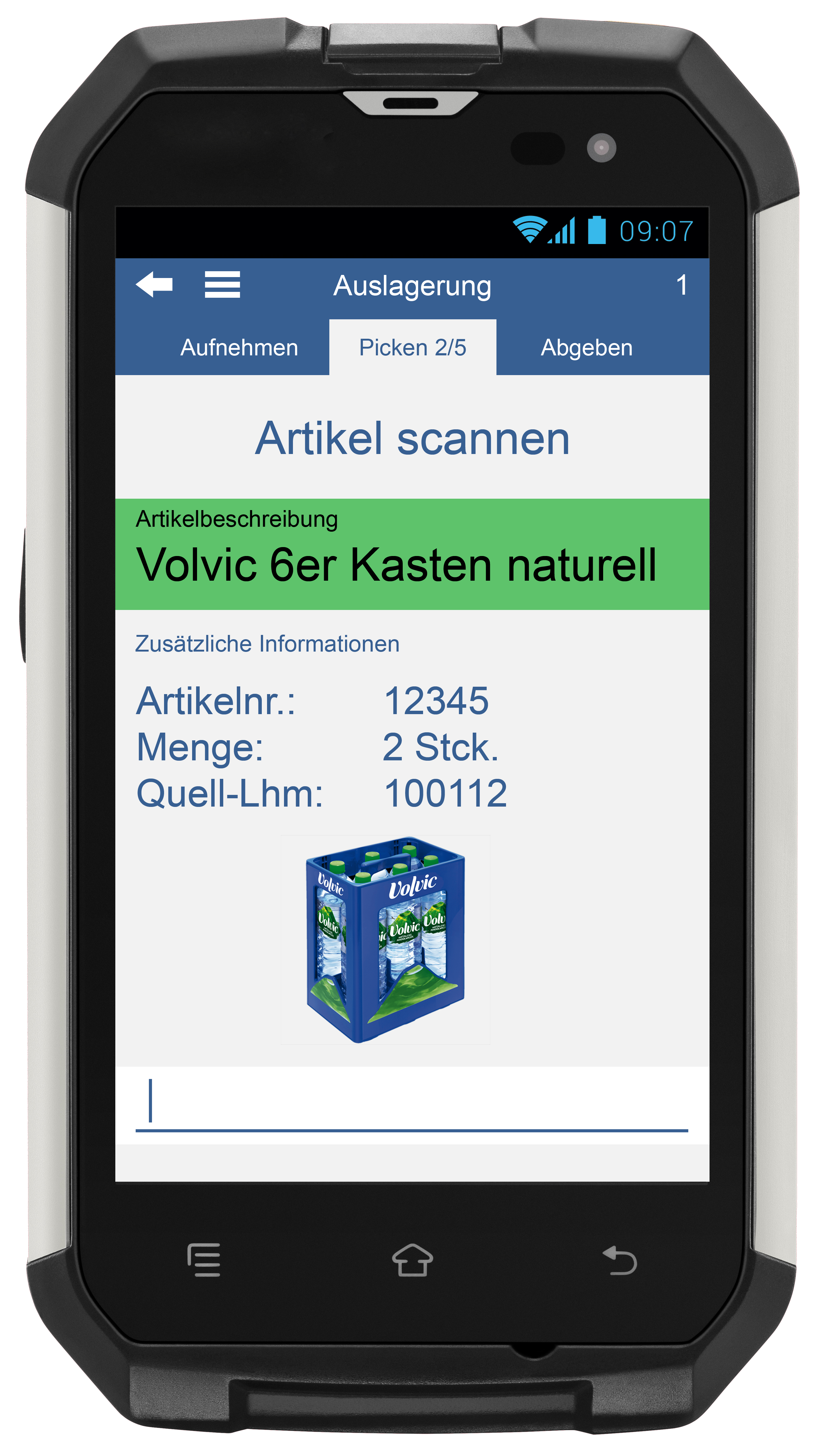 Am Staplerterminal bekommt der Gabelstaplerfahrer alle wichtigen Transportinformationen angezeigt: Artikel, Menge, Weg, Standort.