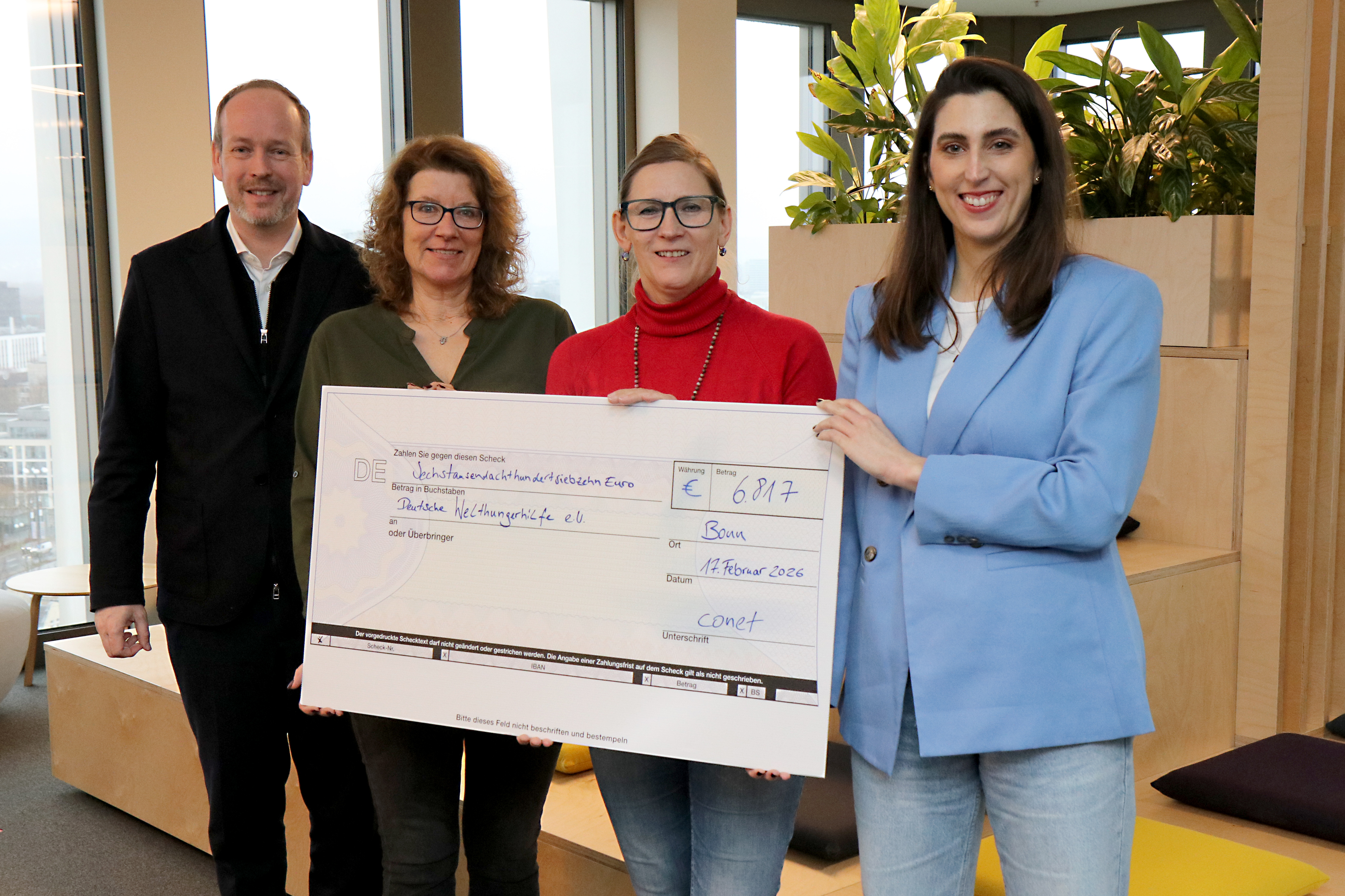 (pressebox) (Bonn, 18.02.2026) Mit einer Jahresspende in Höhe von insgesamt 25.320 Euro unterstützt die conet-Gruppe die international tätigen Hilfsorganisationen Ärzte ohne Grenzen, UNICEF und die Deutsche Welthungerhilfe. Wie in den Vorjahren stand bei den Spendenaktionen erneut das Miteinander im Fokus: Die Spende ist das Ergebnis zahlreicher durch den conet Social Club koordinierter Sammelaktionen des vergangenen Jahres und der Vorweihnachtszeit, die von Mitarbeitenden, Auszubildenden und Geschäftsführung initiiert wurden.