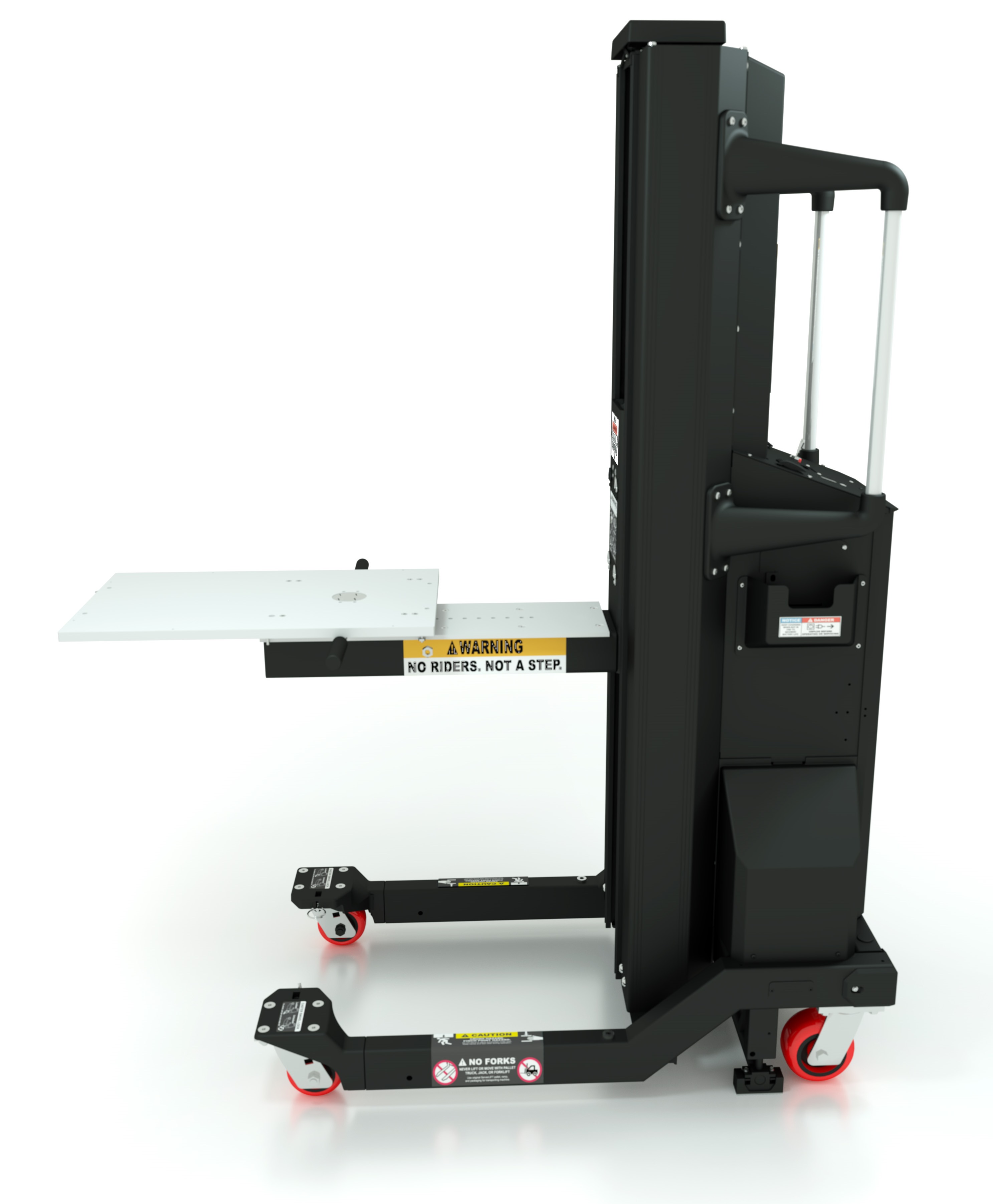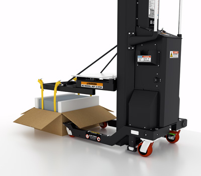 Die Lastenflächenerweiterung ermöglicht das vertikale Herausheben von schweren IT-Geräten direkt aus einer Verpackungskiste.