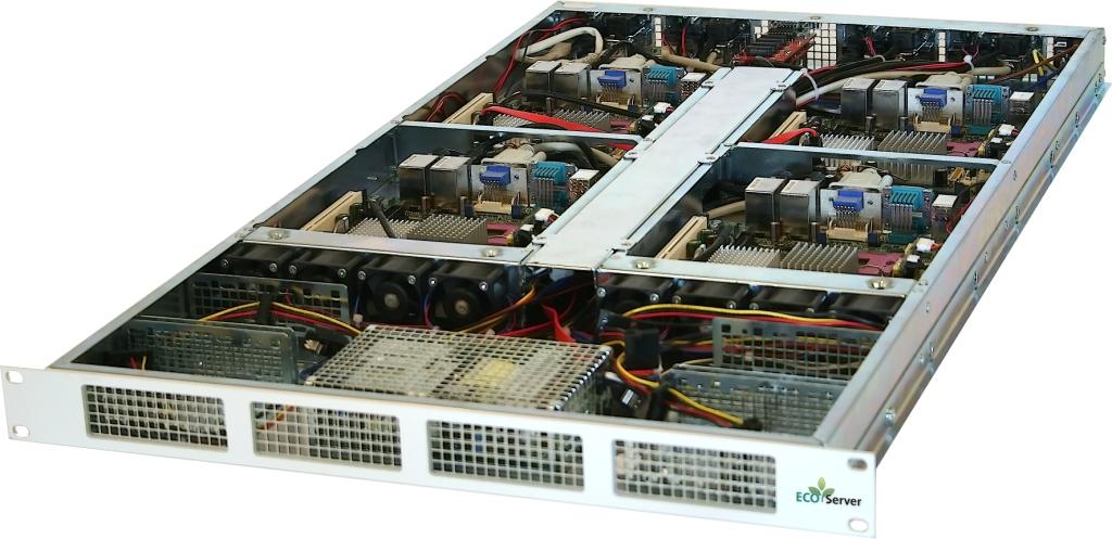 Der ECOserver vereint die Power von vier Servern auf nur 1 HE und verbraucht nur ein Viertel des üblichen Strombedarfs.