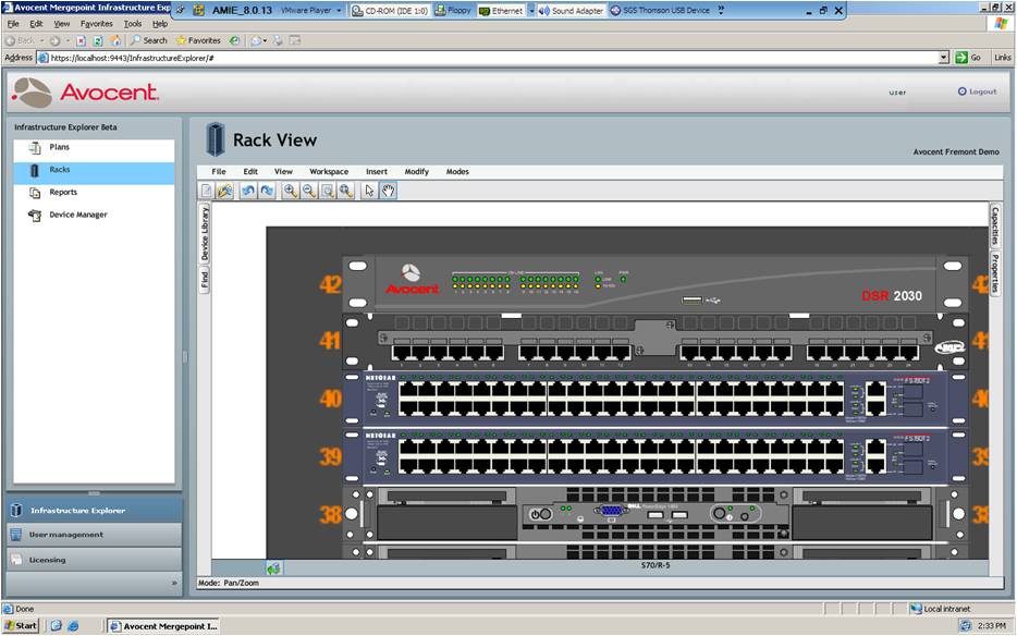 - Der Avocent Mergepoint Infrastructure Explorer stellt auch grafisch die individuelle Hardware-Bestückung per Höheneinheit im Rack dar. Die dafür notwendigen Skizzen entstammen einer integrierten Asset-Bibliothek.
