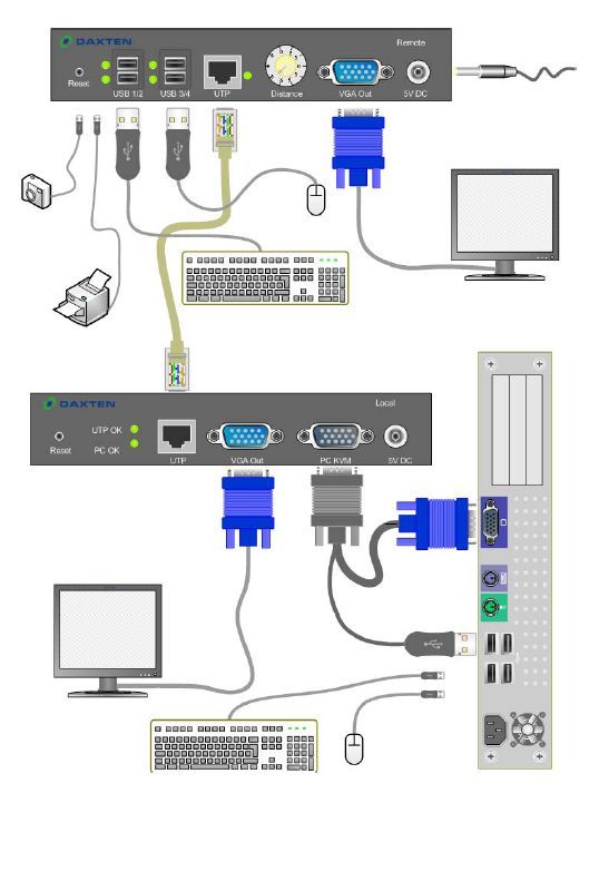 Der Daxten Voyager USB gestattet den Fernzugriff auf einen bis zu 100m entfernten Rechner oder KVM Switch.