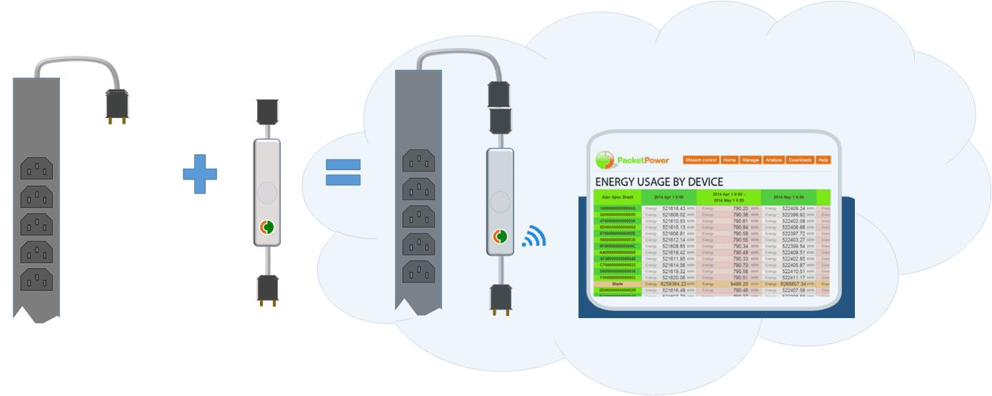 Ein im Kabel integriertes Funkmessmodul gibt Auskunft über die Stromnutzung von Servern, PDU-Stromleisten und Netzwerkswitchen.