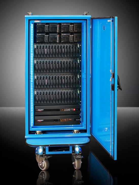 Der ServerLift SL500 befördert bis zu 225 Kilogramm schweres IT-Equipment an jeden Ort innerhalb eines Rechenzentrums und vermag dieses binnen 60 Sekunden voll automatisiert auf eine Höhe von bis zu 2,4 Metern anzuheben.