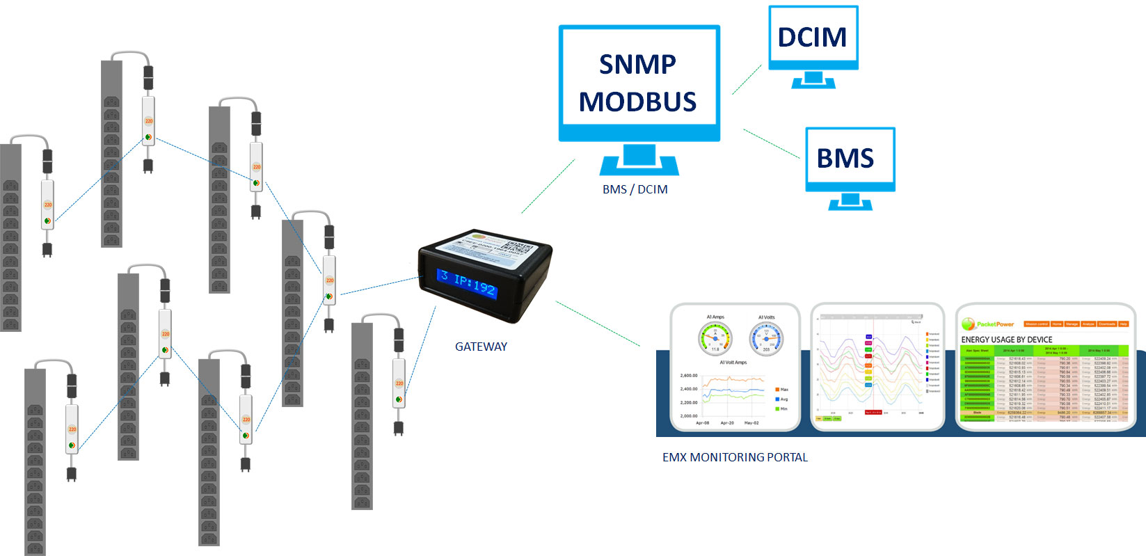 Das funkbasierte Monitoring-System kontrolliert die Strom- und Umgebungswerte auf jeder Ebene im Rechenzentrum.