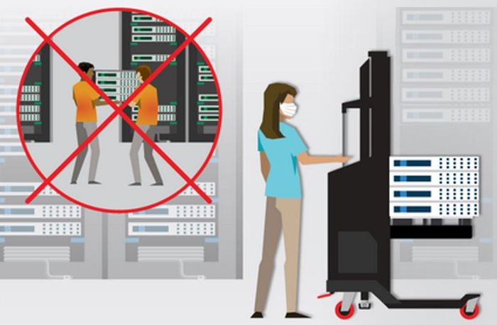 (pressebox) (Berlin, 27.05.2020) To maintain social distancing for the protection of yourself and others is key for all work carried out within the data centre. Tasks that were until recently perfomed by two data centre professionals, today very often must be done by one single person. This, for example, includes the installation of heavy IT equipment into the rack. Where a few months ago a colleague could stand only a few centimeters away helping to carry, hold and align a server into the rack, this is no longer permitted. The ServerLIFT solution has been developed to precisely address the issue of physical demanding installation tasks that can lead to physical injuries when handling heavy and expensive IT equipment. This transportation and lifting solution is available from Daxten, the data centre optimisation expert. The ServerLIFT enables one single data centre professional to move up to 450 kilograms (model-dependent) of IT equipment within the data centre, to lift it to any height within the rack and to mount it with pinpoint accuracy.