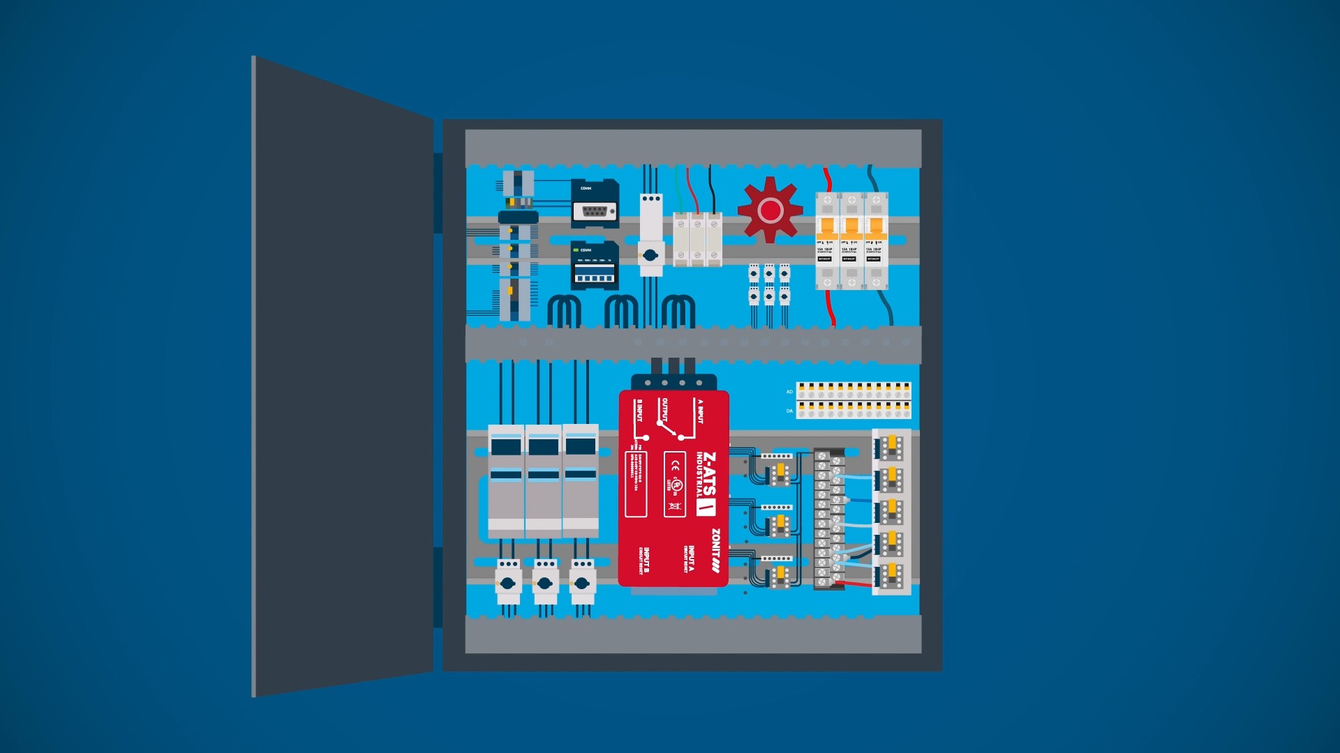 In Millimetern ausgedrückt, ist der Z-ATS Industrial gerade einmal 164 lang, 79 breit und 37 tief. Damit ist er in Länge und Breite nur ganz geringfügig größer als zum Beispiel Smartphones von führenden Herstellern, die Max oder Ultra im Namen tragen. Diese ultrakompakten Abmessungen sowie die Montagemöglichkeiten per Klemmblock, kabelgebundener E/A-Anschlüsse oder integrierter T-Nut für DIN-Schienenadapter gestatten eine einfache und schnelle Integration in Schaltgehäusen, Schaltschränken oder auch Racks. Das widerstandsfähige Aluminiumgehäuse sowie ein Einsatztemperaturbereich zwischen -40 und 75 Grad Celsius lassen den Z-ATS Industrial selbst in rauesten Umgebungen bestehen. Ein integrierter Überspannungsschutz sowie eine Technologie zum Schutz vor transienten Ausgleichsströmen, also gegen impulsartige, elektrische Schwingungen und Potenzialunterschiede, wie sie etwa bei der Umschaltung von einer A- zu einer B-Stromversorgungsquelle auftreten können, sind auch mit an Bord.