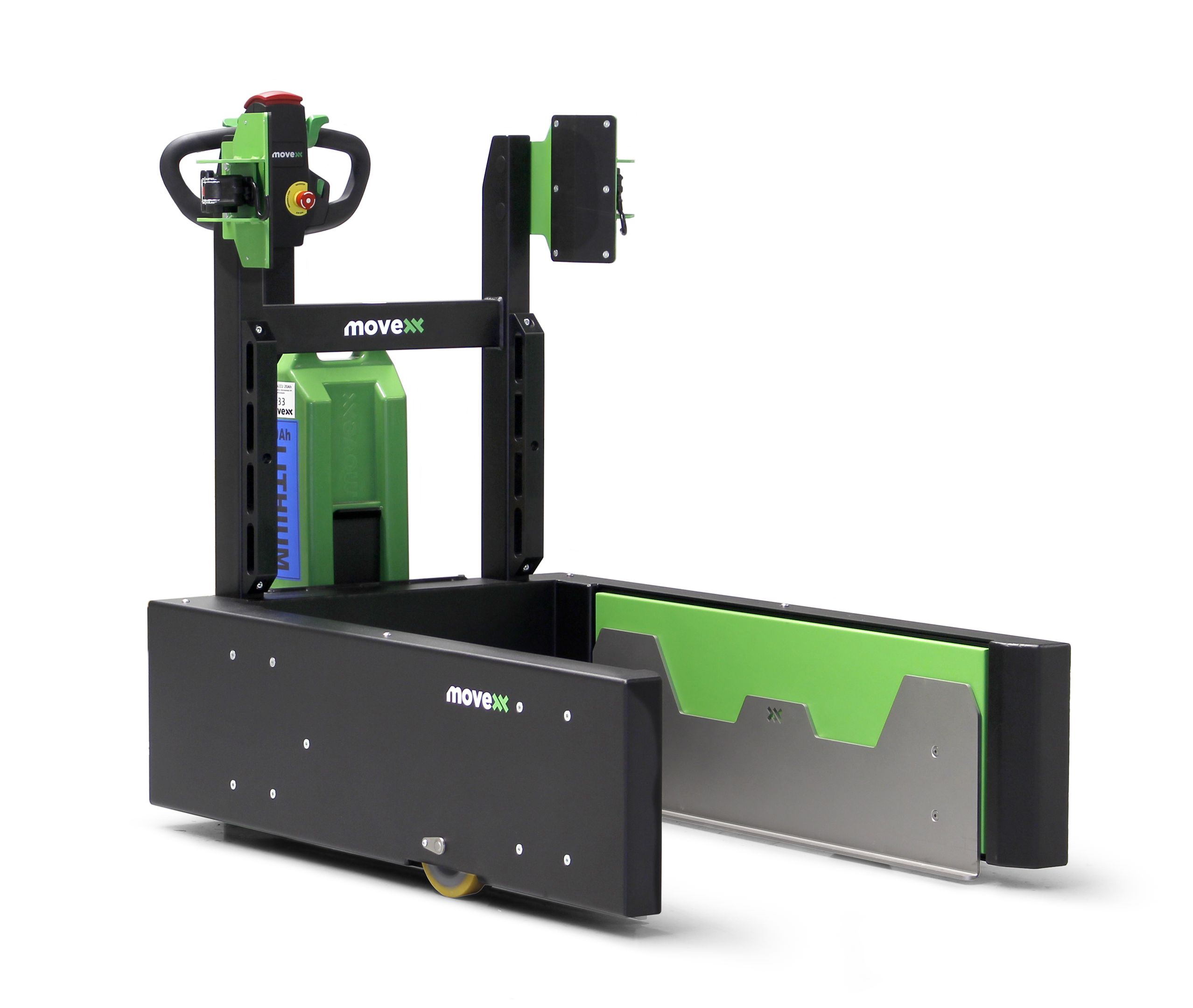 Der Movexx TT1500-M-SR verfügt über eine wirksame Feststellbremse, die den Rack-Transporter sicher auf Rampen oder unebenem Boden hält. Automatisch bremst der Rack-Transporter beim Loslassen des Traktionsschalters oder beim Umkehren der Fahrtrichtung. Eine robuste Metallverkleidung schützt die Antriebseinheit und die Komponenten, während das flache Chassis Schutz für die Füße der Bedienenden bietet. Ein langer, niedrig montierter Deichselarm bietet dem Bedienenden einen sicheren und dennoch bequemen Arbeitsabstand zum Rack-Mover und sorgt für exaktes Manövrieren. Die Kippschutz-Sicherheitsstütze mit automatischer Sperrklinke sorgt für Stabilität beim Anheben und Fahren. Ist die maximale Hubhöhe erreicht, setzt die automatische Lift-Stopp-Funktion ein, was Sicherheit bietet und langfristig die Haltbarkeit der Transporter-Komponenten erhöht.