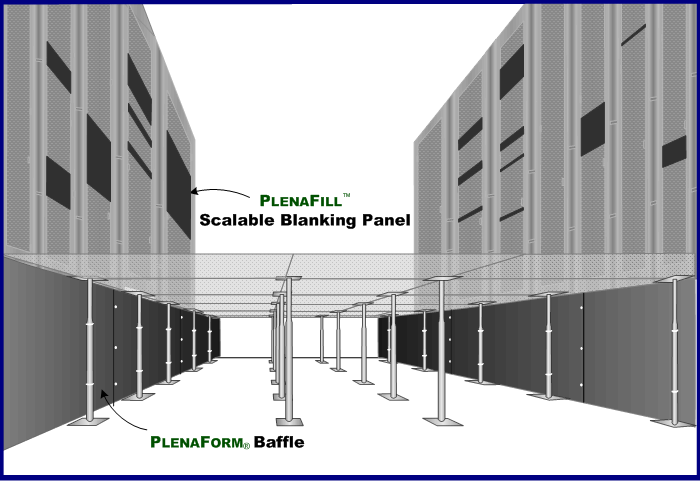 PlenaForm ist ein Luftstrombegrenzer, der die im Doppelboden strömende Kühlluft umlenkt und kanalisiert. So wird verhindert, dass sich gekühlte Luft im Doppelboden über weite Räume verteilt, abdriftet und so zu einer Verminderung der Strömungsgeschwindigkeit und zu einem Abfall des Luftdrucks im Doppelboden beiträgt. Mit PlenaForm wird die gekühlte Luft effizient und auf dem kürzesten Wege zu den Doppelbodenöffnungen geführt, wodurch die die Kühlluft erzeugenden Anlagen mit geringerer Last gefahren werden können.
