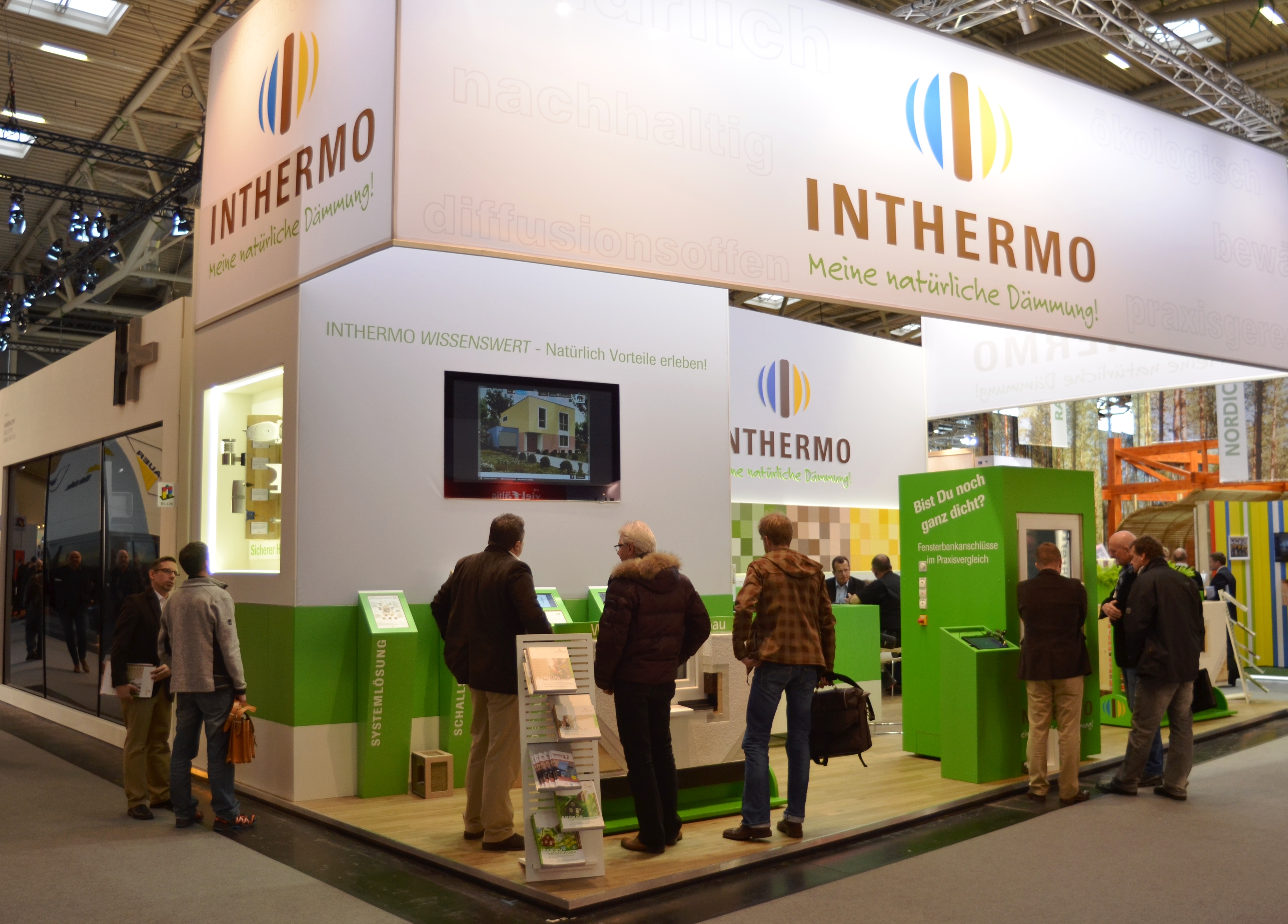 Auf starkes Wachstum eingestellt! Rund um das Dämmen von Fassaden widmete sich das INTHERMO-Team auf der BAU in München ungezählten Kundenfragen, Anliegen und Wünschen (v.l.n.r.): Andreas Billmayer, Fachberater für Rheinland-Pfalz und Westfalen, INTHERMO-Geschäftsführer und Vertriebsleiter Stefan Berbner, Lorenz Stöpfel, Fachberater für Mittel- und Südbayern, Jürgen Waßermann, Leiter Technik, Stefan Radtke, Fachberater für Baden-Württemberg, Sebastian Schmucker, technischer Kundenberater, Marketing-Leiterin Kerstin Kufleitner, Markus Normann, Fachberater für Norddeutschland, Matthias Roth, Fachberater für Hessen und Nordbayern, sowie Lara Heid, Assistentin der Geschäftsleitung. Ebenfalls für INTHERMO auf der BAU dabei war Markus Blau, techn. Produktbetreuer. (Foto © 2017: Achim Zielke für INTHERMO, Ober-Ramstadt; www.inthermo.de)