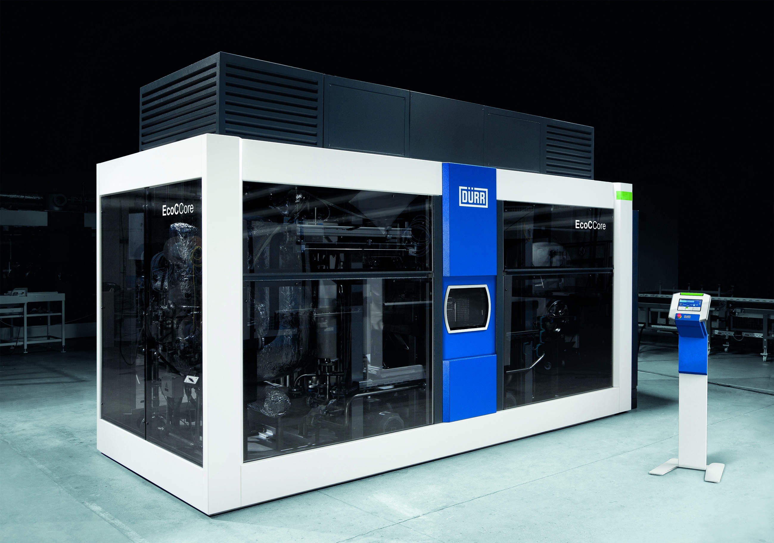 The design of this equipment, honoured with the 2013 Design Award of the state of Baden-Wuerttemberg, is striking not least due to the integral loading system and its all-round enclosure made of safety glass. Moreover, the universal EcoCCore machine requires around 5 percent less floor space than its 81C/P predecessor. A further benefit is that its top height can be reduced to only 2.25 m by removing just a few components where access to the installation area is difficult. This capability can also cut freight charges, e.g., for shipment to Asia, the U.S. or South America. For these destinations it is also possible to ship the core unit to the nearest Dürr Ecoclean site at low cost and to complete its assembly there.