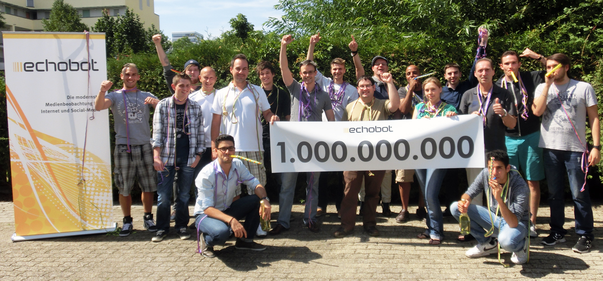 (pressebox) (Karlsruhe, 21.08.2013) Mit einer magischen Zahl durchbrach das Karlsruher Unternehmen für Online-Medienbeobachtung und Social Media Monitoring Echobot die Schallmauer: Eine Milliarde Artikel befinden sich nun im Echobot-Suchindex. Den Kunden des Unternehmens stehen alle Artikel uneingeschränkt für ihre tägliche Arbeit zur Verfügung. Der Wert markiert einen Meilenstein in der noch jungen Geschichte von Echobot und in der Nutzbarkeit für Kunden und Interessenten.