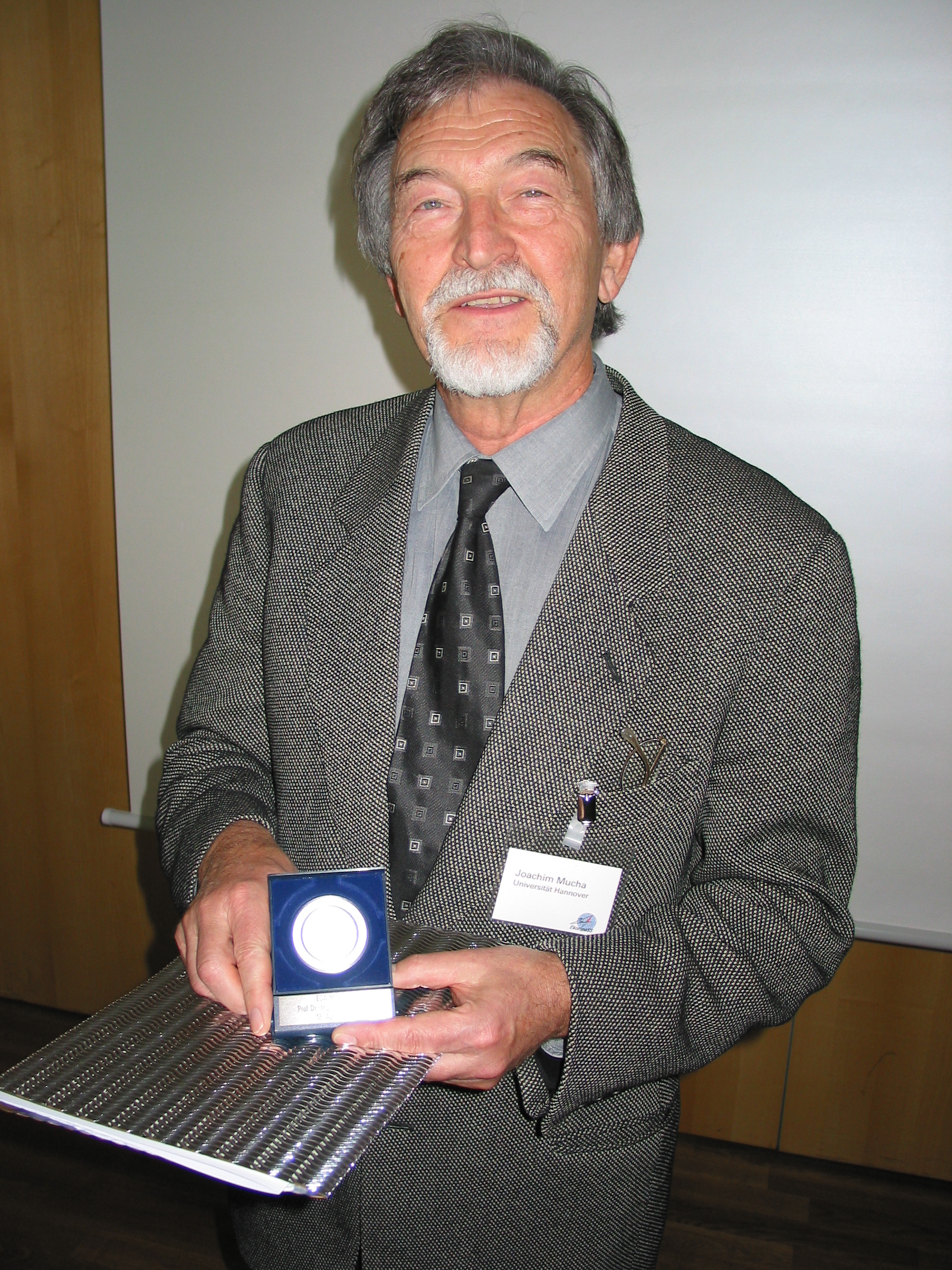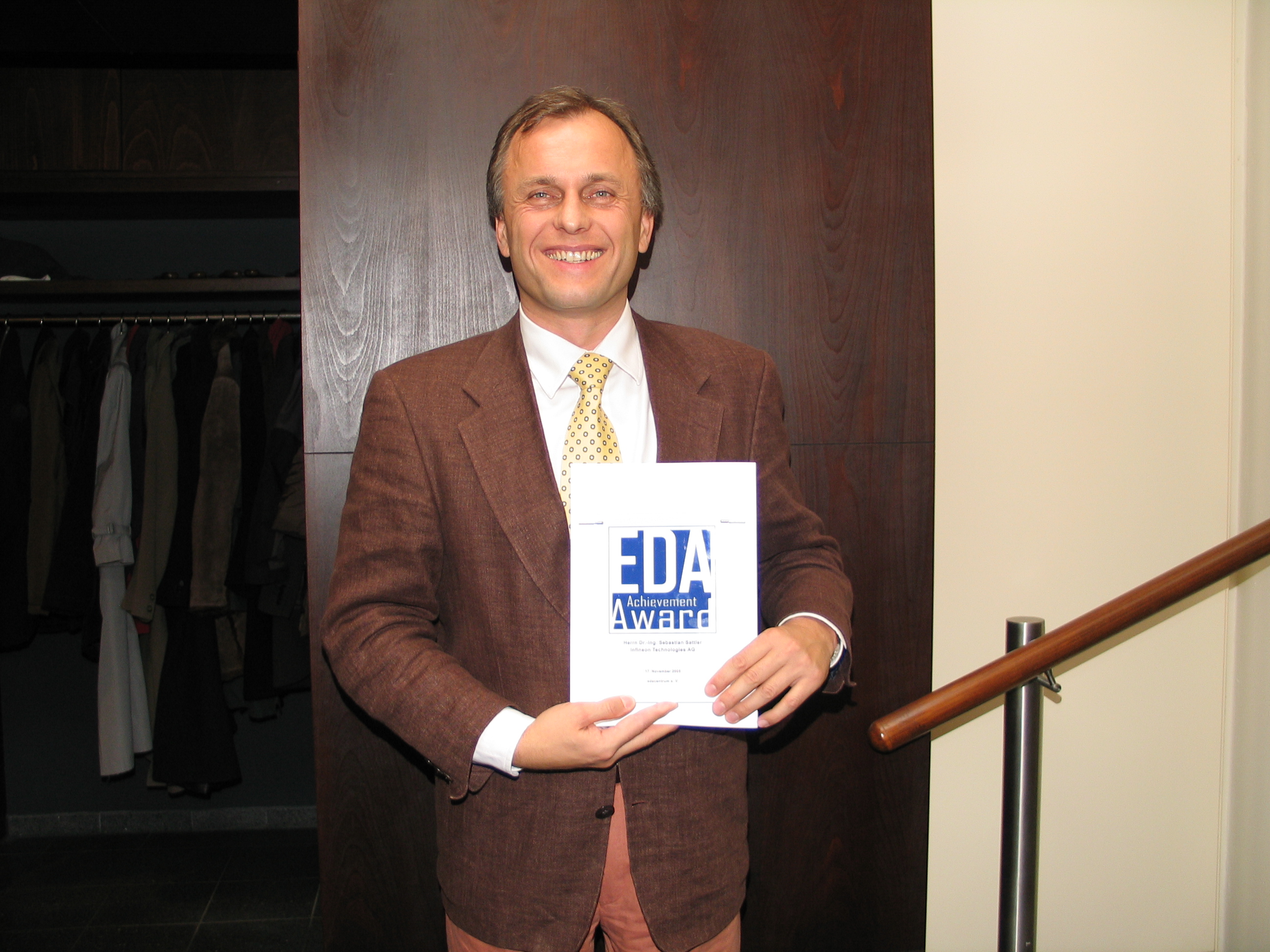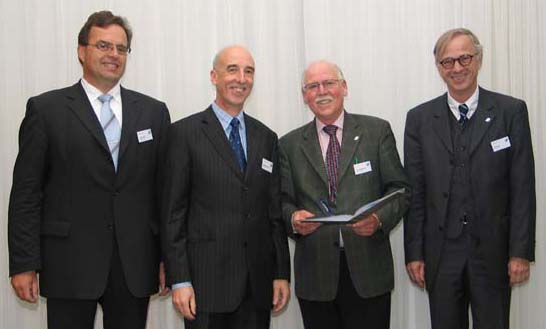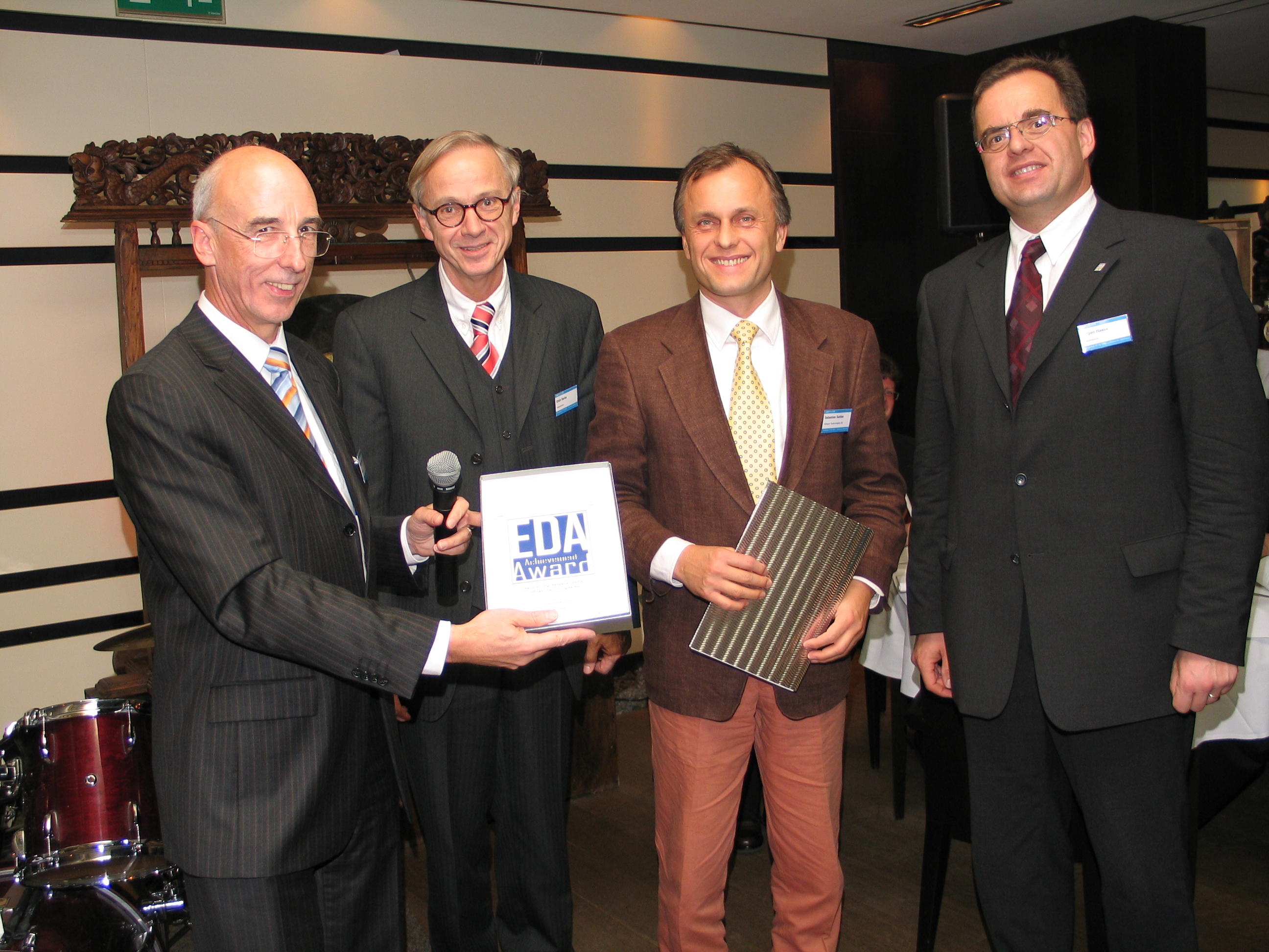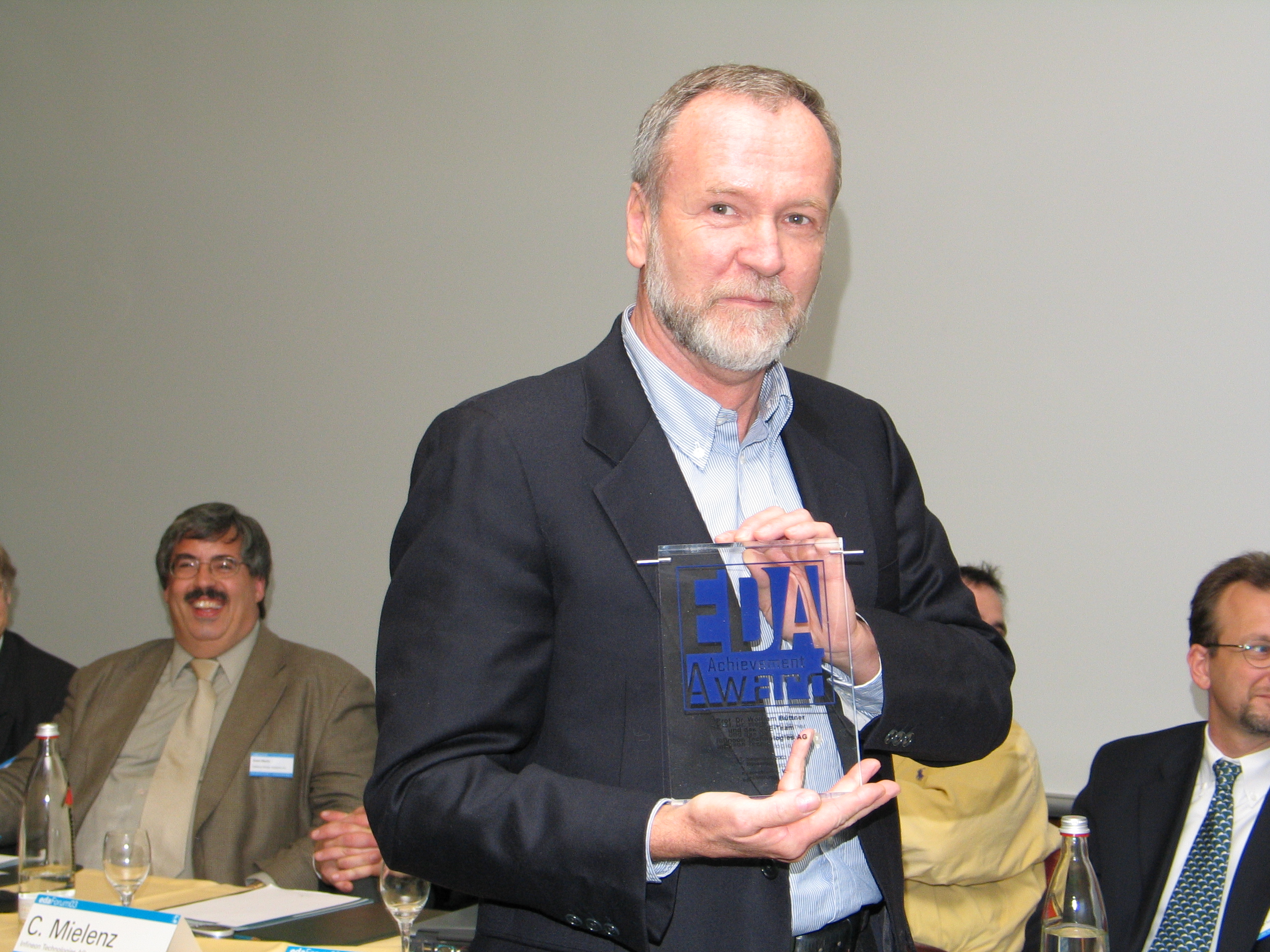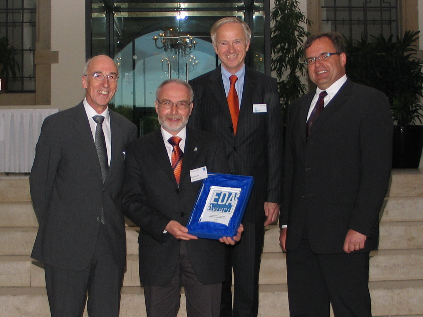 Peter Jores mit dem Vorstand des edacentrum e.V. anläßlich der Verleihung des EDA-Achievement Awards 2010; v.l.n.r.: Prof. Dr. rer. nat. W. Rosenstiel, Peter Jores, Prof. Dr.-Ing. E. Barke, Dr.-Ing. J. Haase