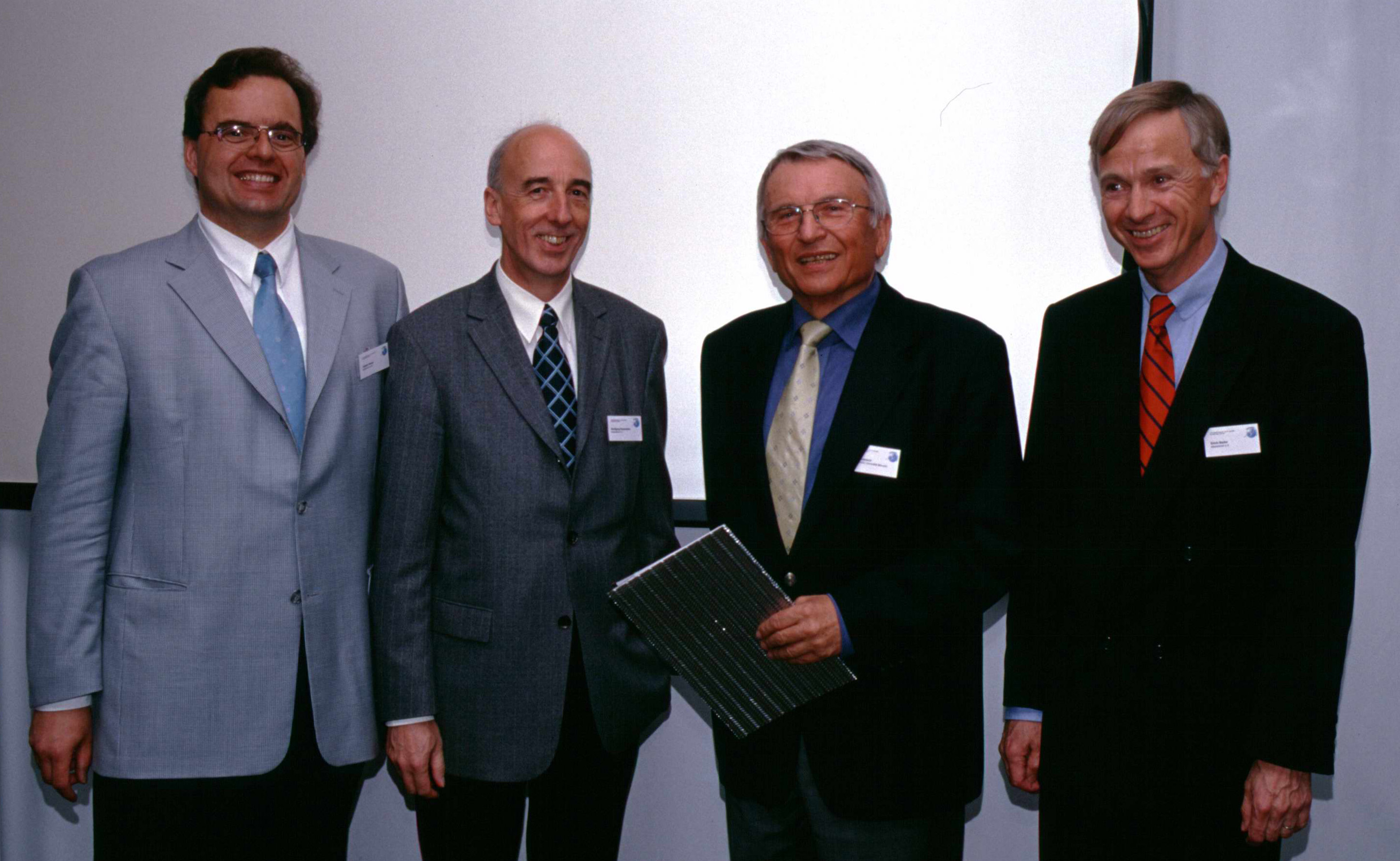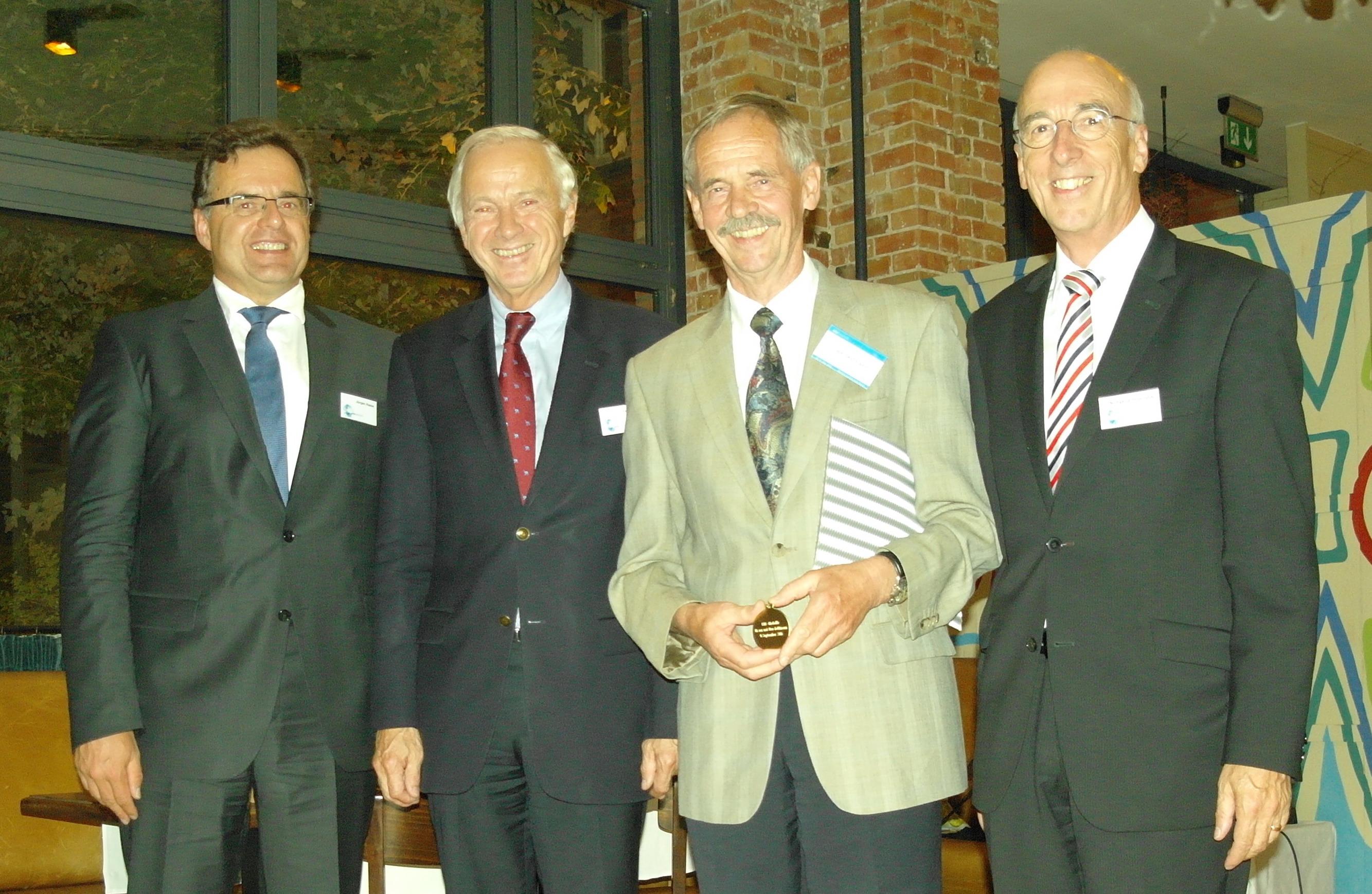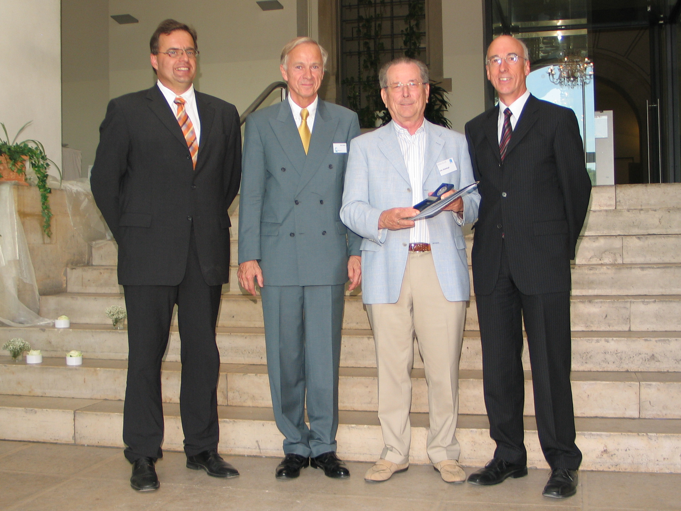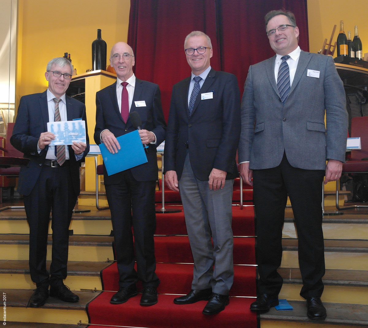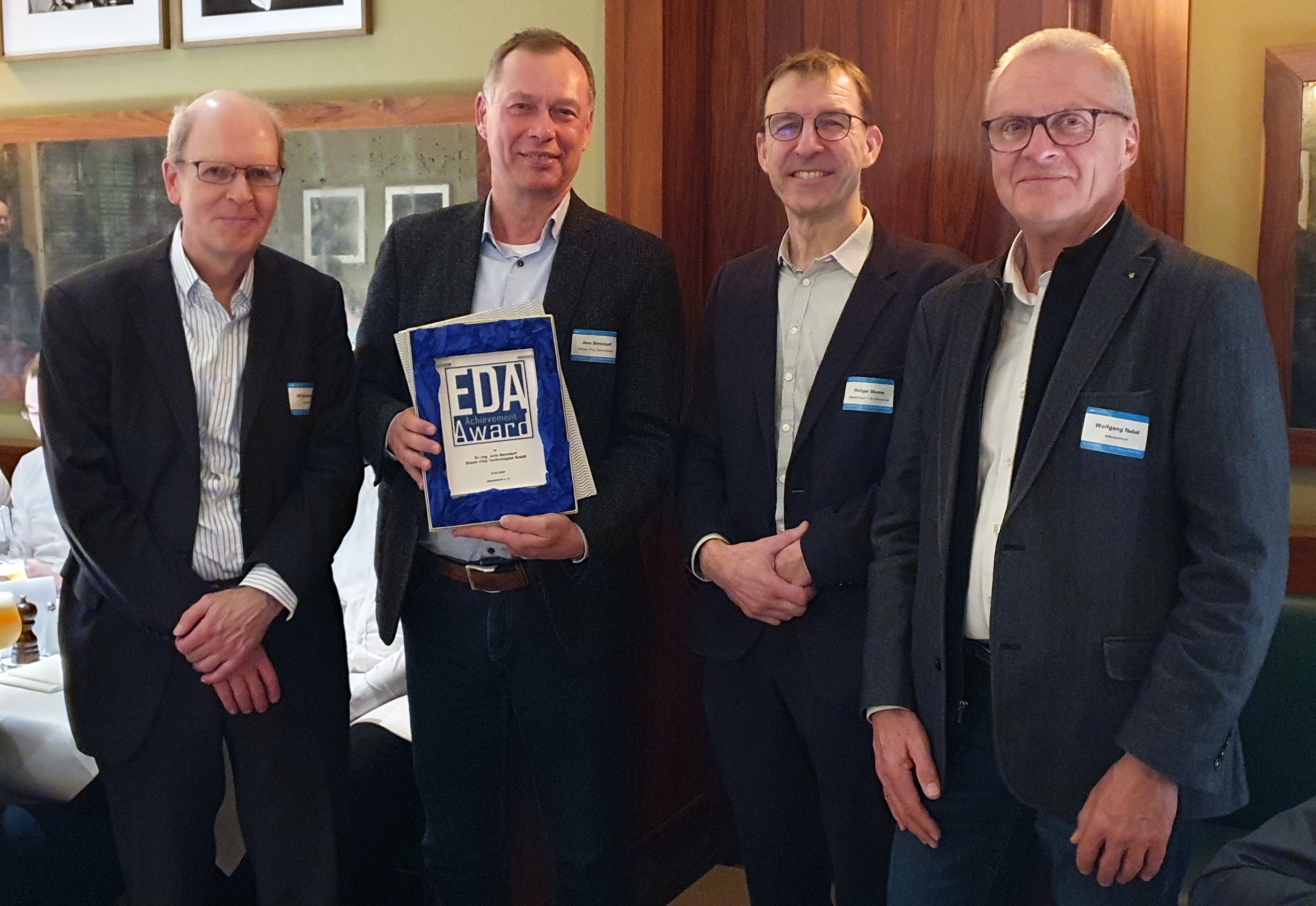 Dipl.-Phys. Jürgen Schlöffel bei der Verleihung der EDA-Medaille zusammen mit dem Vorstand des edacentrum und dem Laudator Andreas Glowatz von Siemens EDA