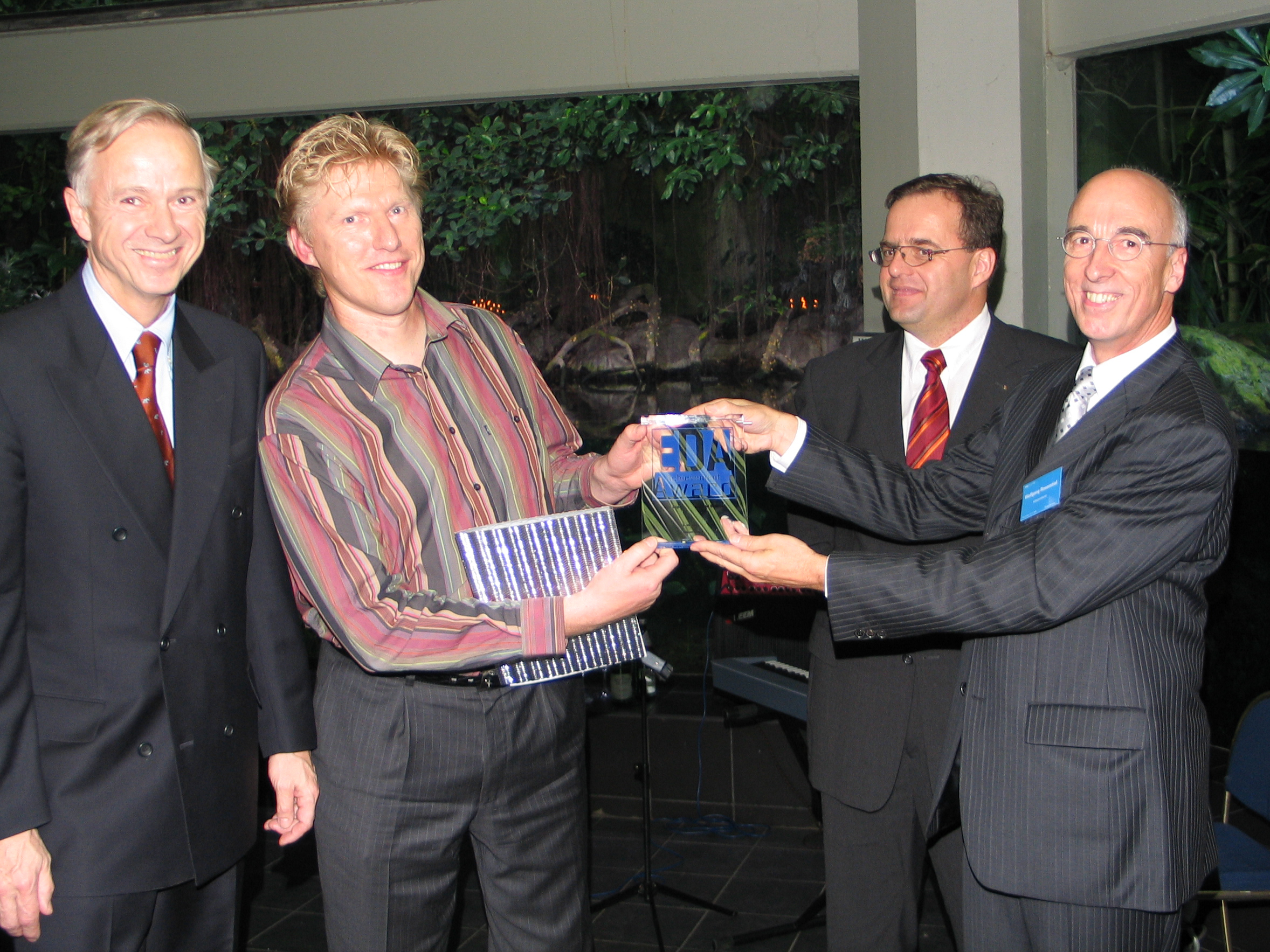 Preisträger Martin Reuter, Laudator Thomas Heurung, Vorstand des edacentrum Wolfgang Nebel, Ulf Schlichtmann und Jürgen Haase