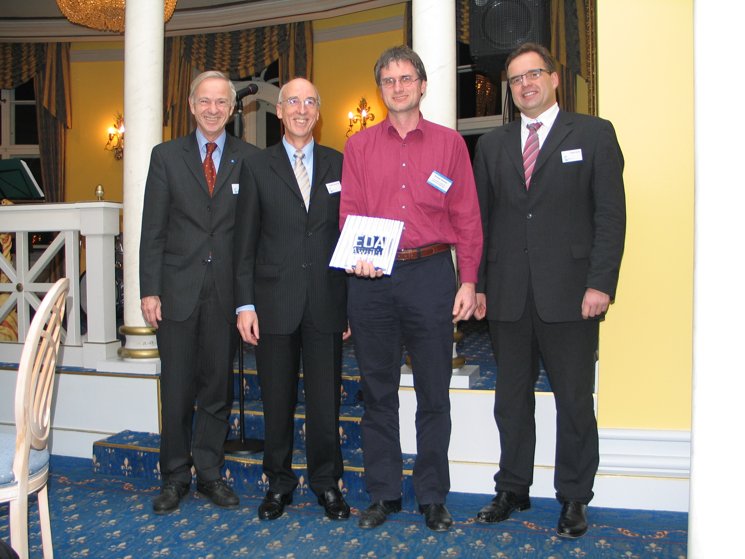 Preisträger Dipl.-Ing. Dipl. Wirt.-Ing. Ulrich Abelein mit Prof. Dr. Wolfgang Nebel, Prof. Dr. Wolfgang Rosenstiel und Dr. Jürgen Haase, Vorstandsmitglieder im edacentrum.