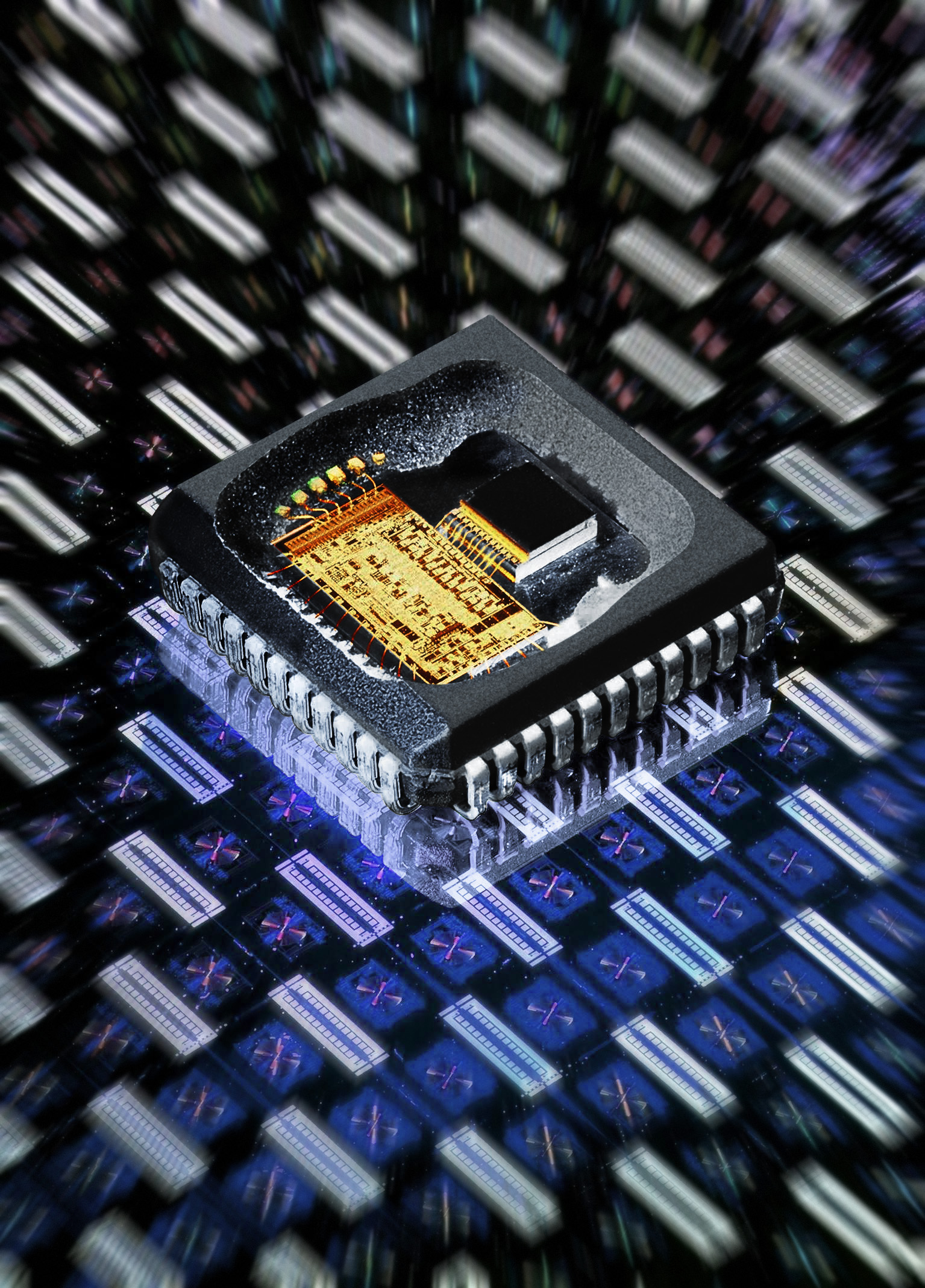 Aufgeschnittener 3D-Stapel eines elektronischen Systems (Quelle: Fraunhofer IZM München)