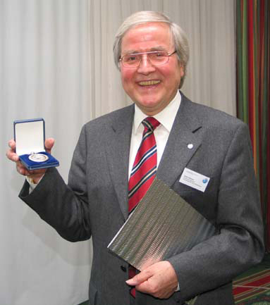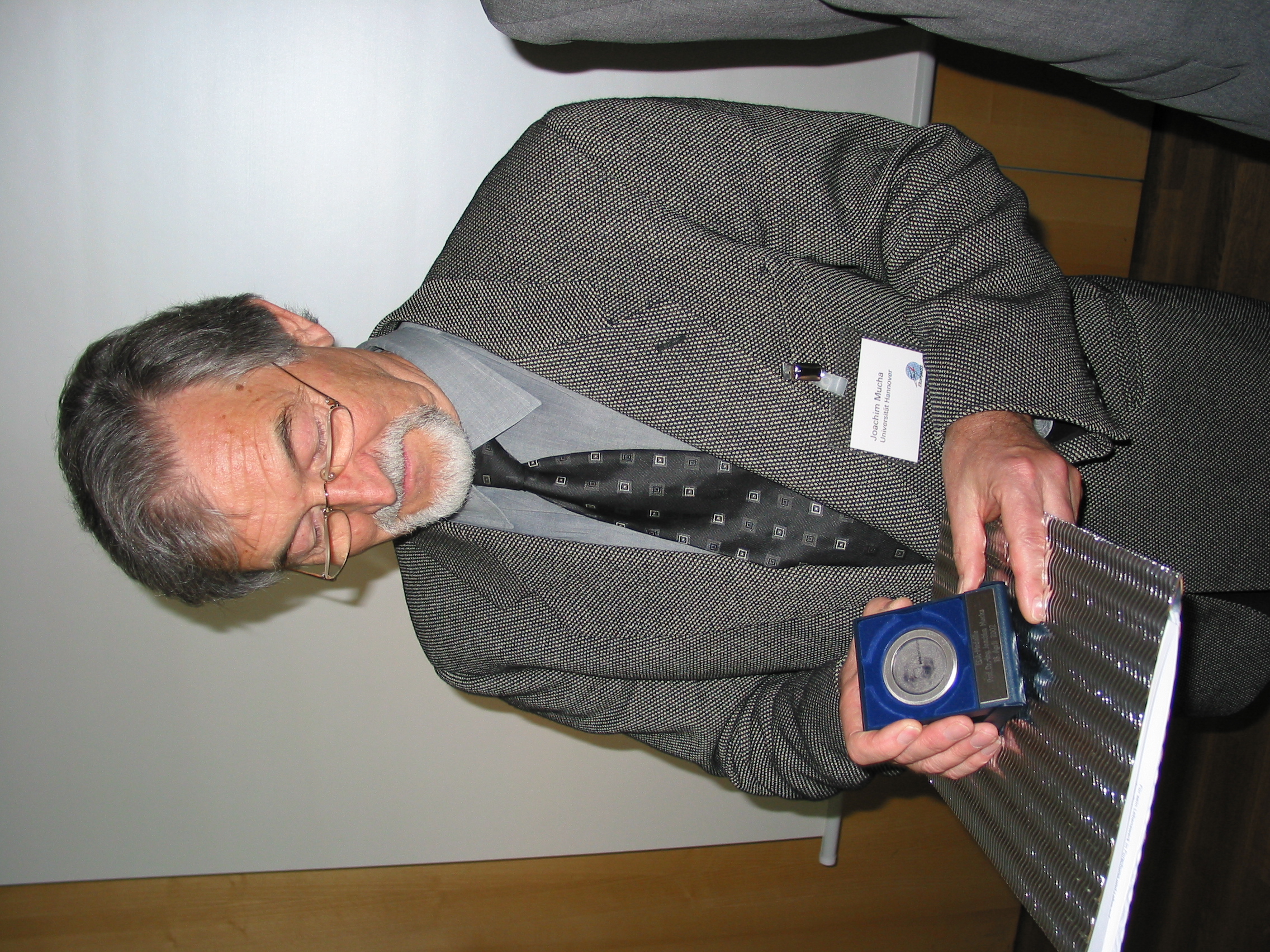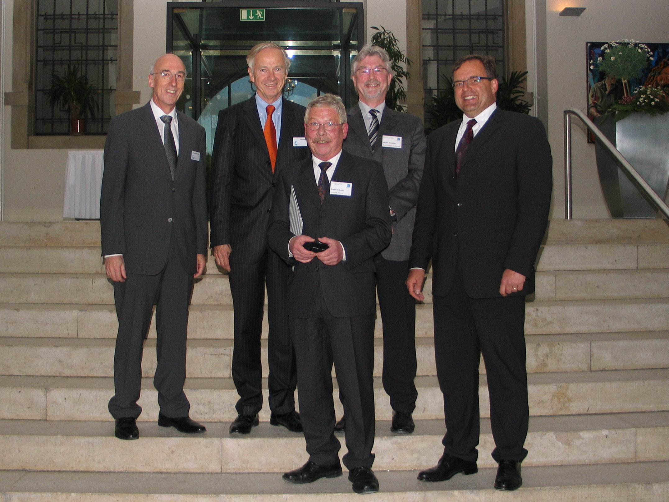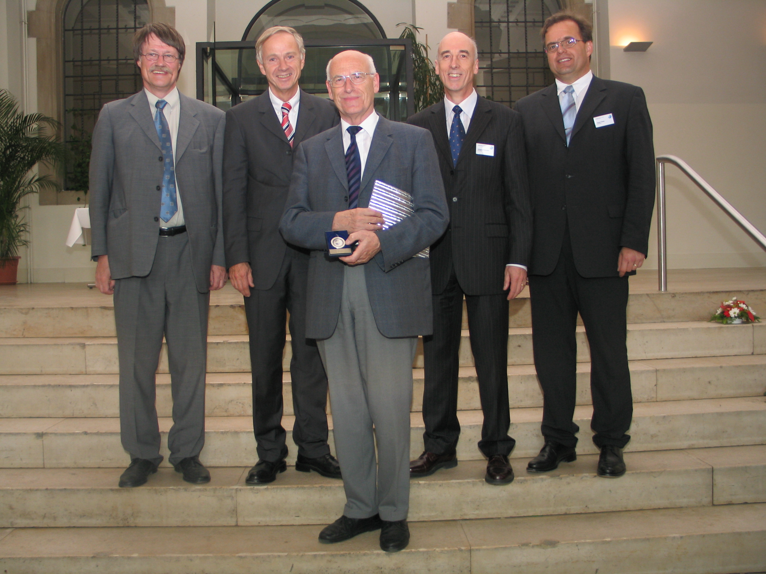 Prof. Dr. Franz Rößler mit dem Vorstand des edacentrum e.V. zur Verleihung der EDA-Medaille 2009;v.l.n.r.:Prof. Dr. rer. nat. W. Rosenstiel, L. Wenzel vom Projektträger DLR, Prof. Dr. Franz Rößler, Prof. Dr.-Ing. E. Barke, Dr.-Ing. J. Haase