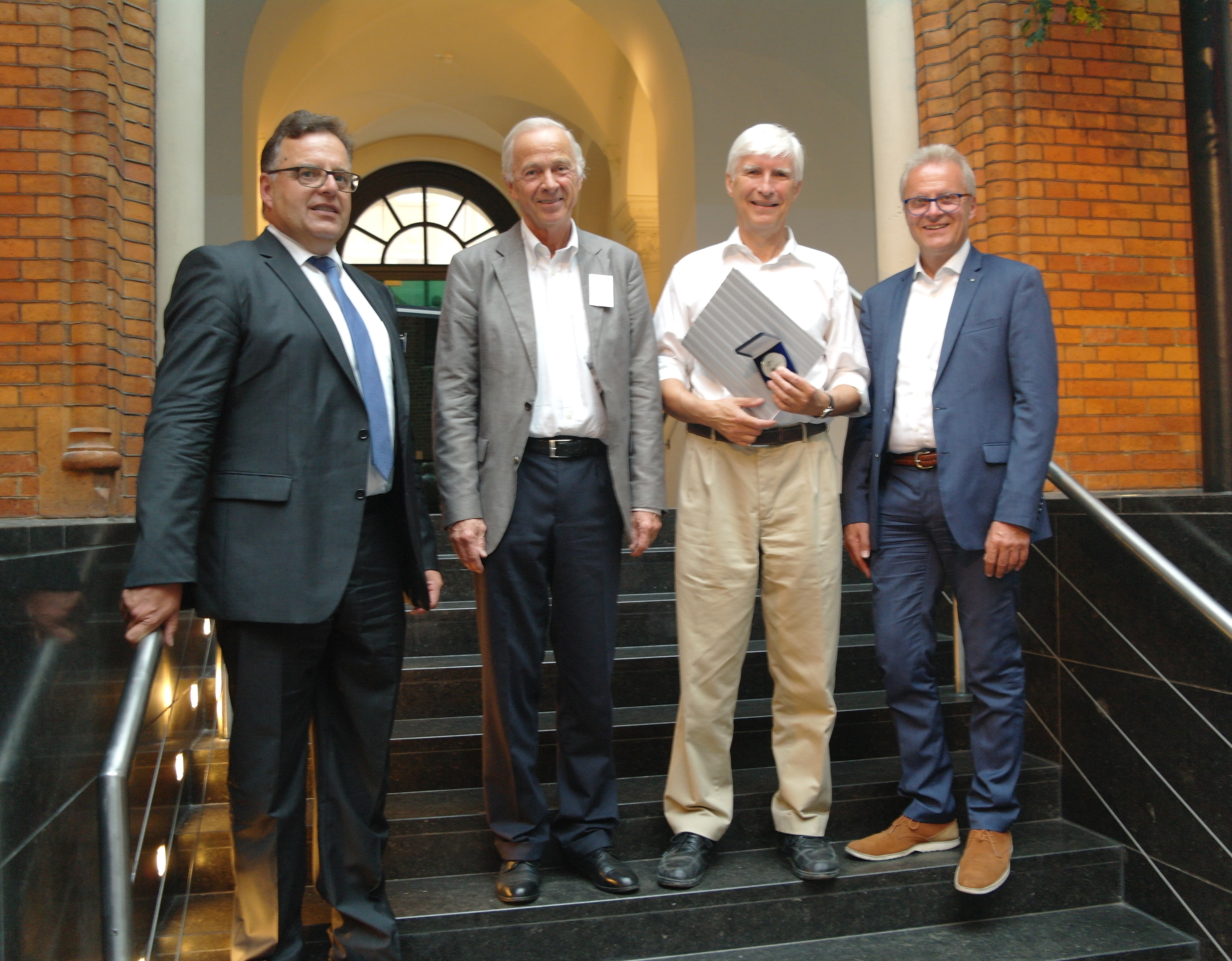 v.l.n.r.: Dr. Jürgen Haase und Prof. Dr. Wolfgang Rosenstiel, Vorstandsmitglieder im edacentrum, Preisträger Prof. Dr.-Ing. Kurt Antreich und Prof. Dr. Erich Barke, Vorstandsmitglied im edacentrum