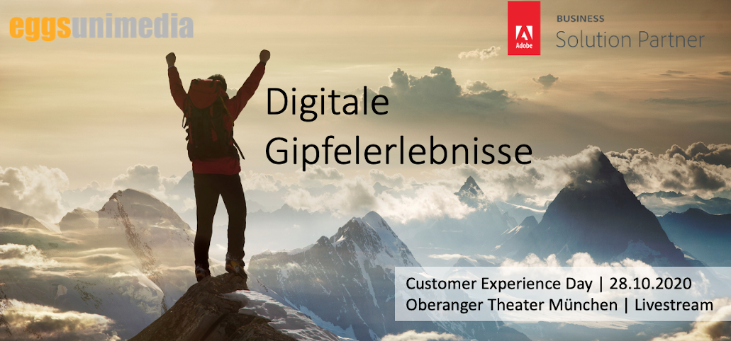 (pressebox) (München, 14.10.2020) Unter dem Motto „Digitale Gipfelerlebnisse - das nächste Level der Customer Experience“ richtet eggs unimedia am 28. Oktober den Adobe Customer Experience Day aus. Corona-bedingt hat eggs unimedia die Veranstaltung um einen Livestream erweitert. Dieser gibt allen, die die Veranstaltung persönlich nicht besuchen möchten, die Möglichkeit, trotzdem live dabei zu sein.