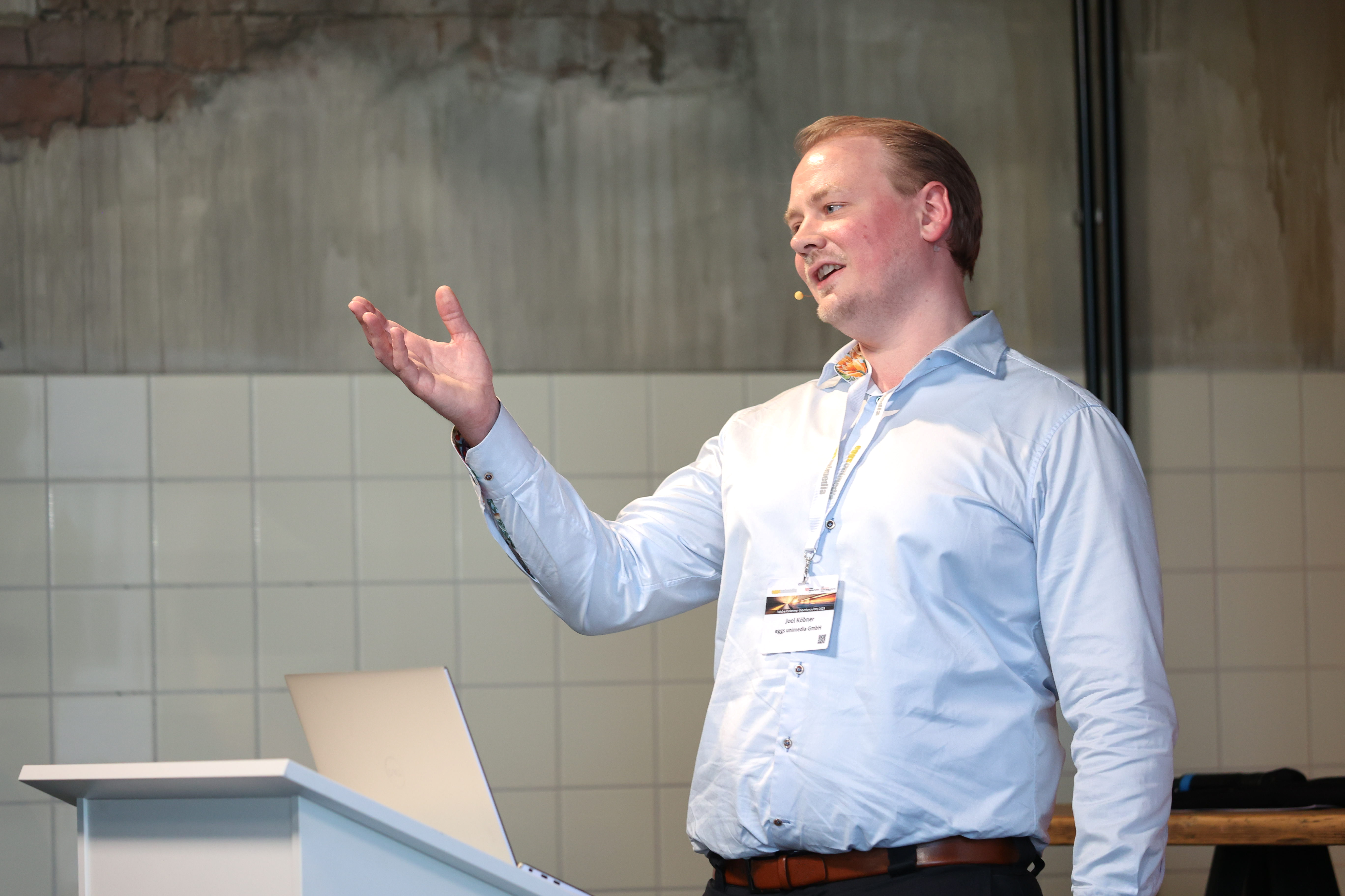 Im Anschluss an die Mittagspause entflammte Joel Köbner von eggs unimedia ein wahres Assets-Feuerwerk mit seinem Vortrag „Kunden begeistern mit AEM Assets Dynamic Media“.
