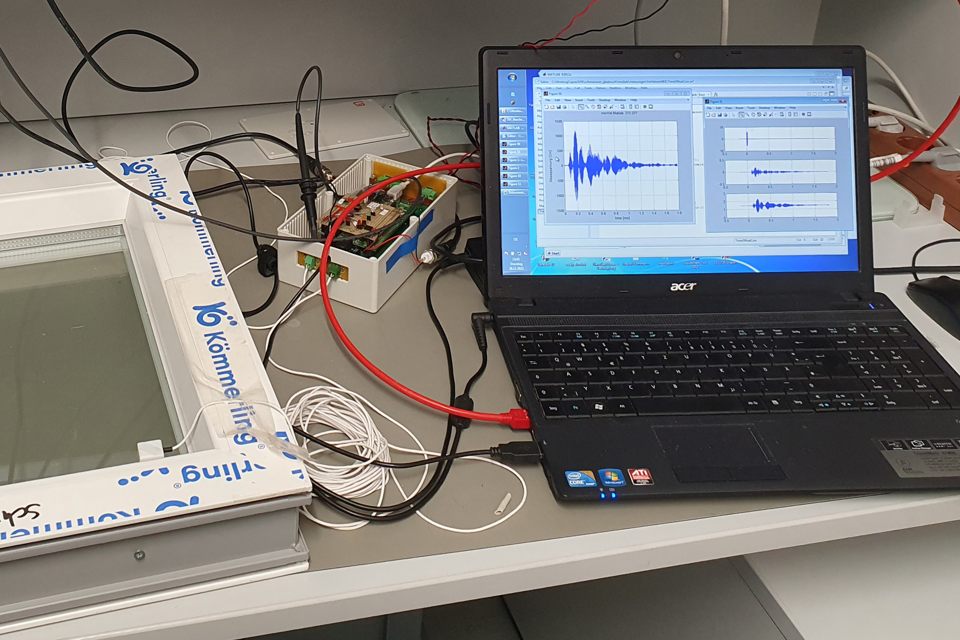 Das IMMS nimmt an verschiedenen Scheiben Voruntersuchungen für den im Projekt RGBS angestrebten sensibleren und robusteren Glasbruchsensor vor und nutzt dafür bereits am Markt erhältliche Glasbruchsensoren der SCHMEISSNER GmbH.