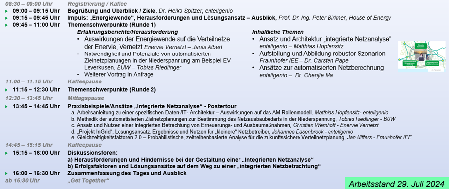 (pressebox) (München, 23.08.2024) Im Mittelpunkt des 20. Praxisworkshops steht am 25. September 2024 in Essen der Ansatz der integrierten Betrachtung von Maßnahmen zur Erneuerung und Erweiterung der Netze im Kontext der Energiewende. entellgenio vertieft zusammen mit dem House of Energy, dem Fraunhofer IEE, der Bergischen Universität Wuppertal und Netzbetreibern den entwickelten Lösungsansatz „Integrierte Netzanalyse“ zur Bewältigung der Energiewende.