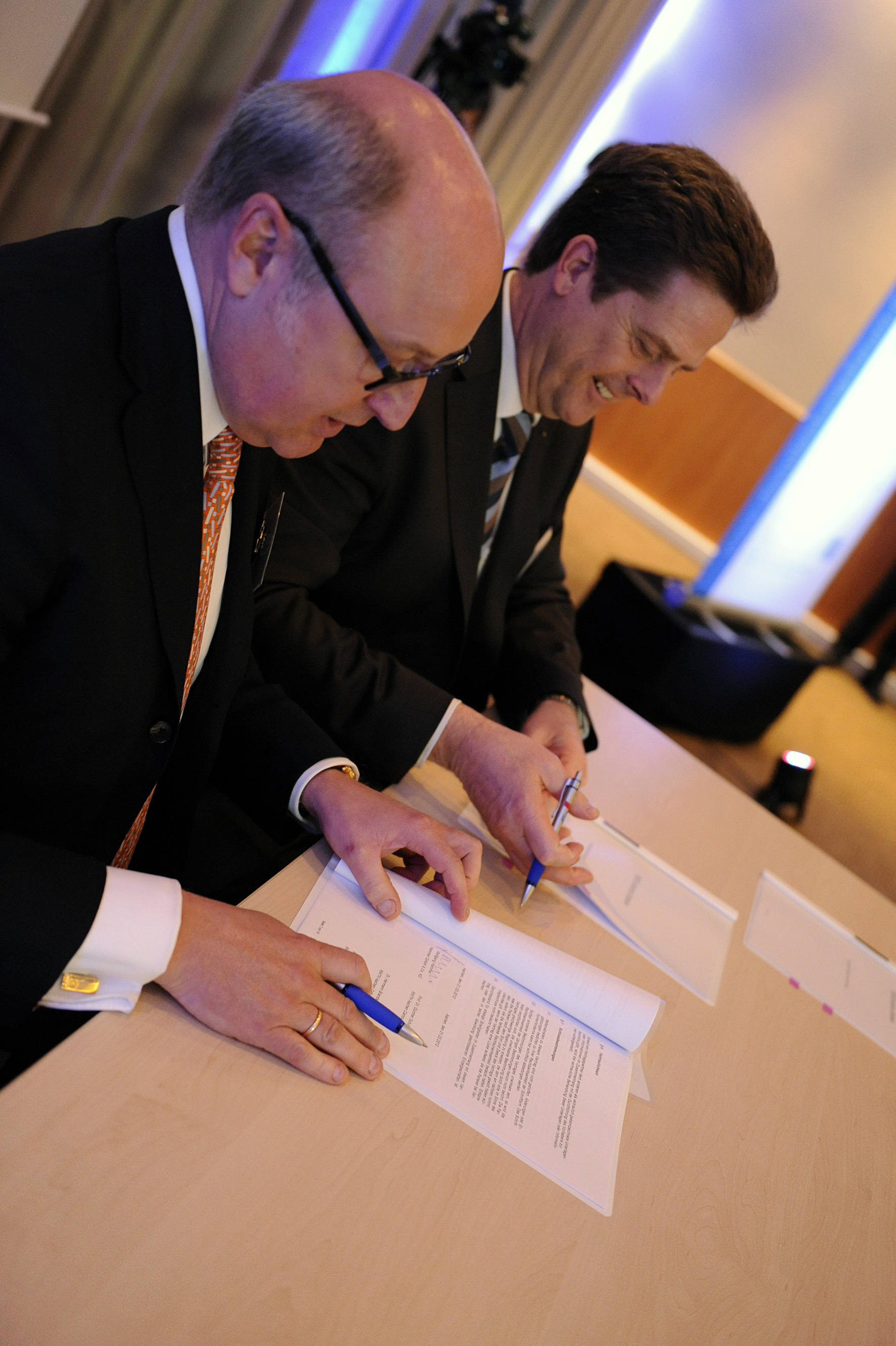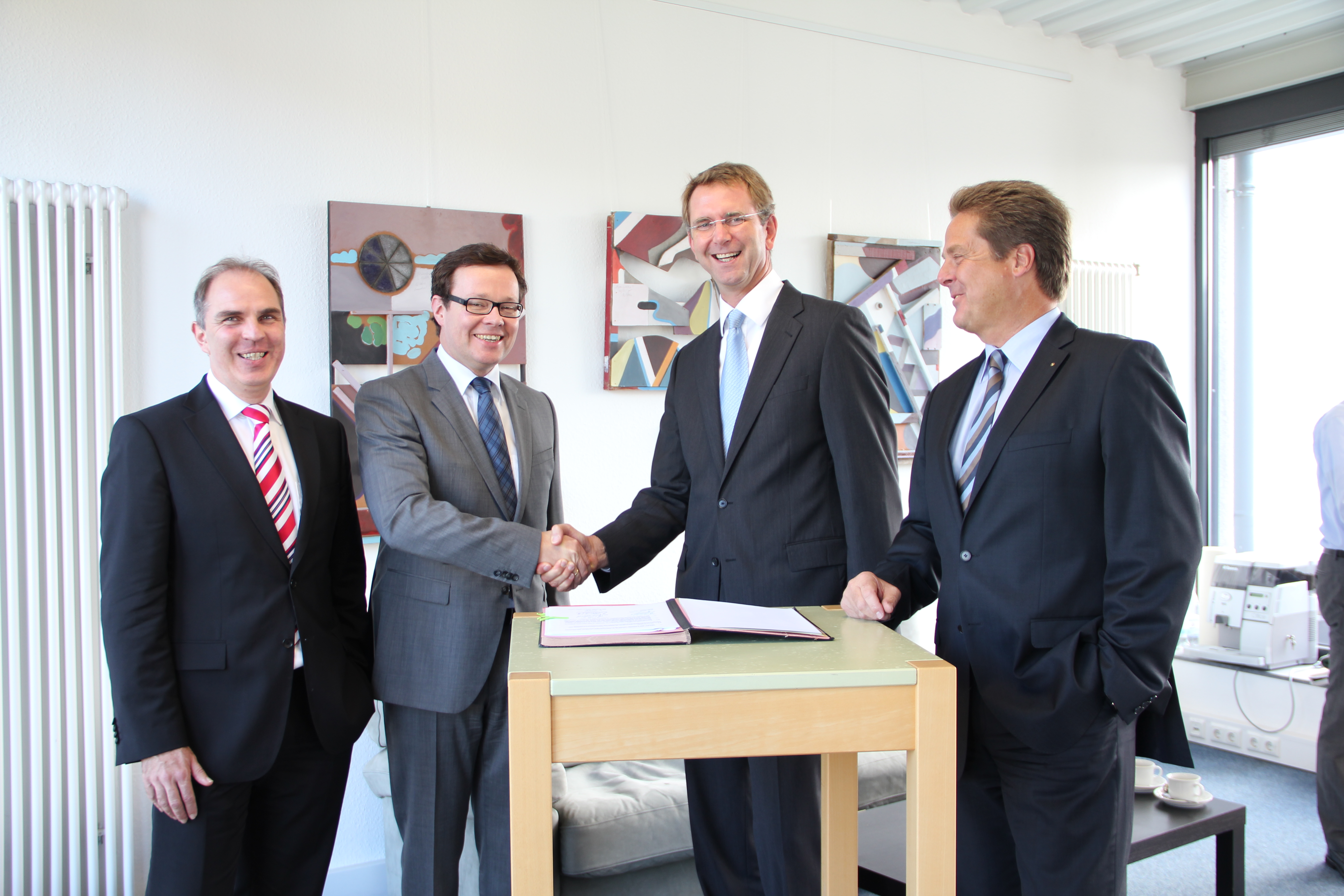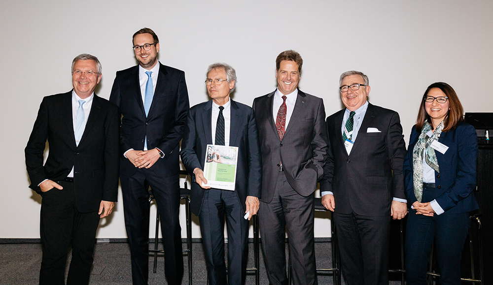 Industrie 4.0 Maturity Center – die Initiatoren, v.l.n.r.: Howard Heppelmann, PTC, Volker Stich, FIR, Hennig Kagermann, acatech, Michael ten Hompel, Fraunhofer IML, Violett Zeller, FIR, Christian Hocken, Industrie 4.0 Maturity Center, Dieter Spath, acatech, Manfred Wittenstein, Wittenstein, Axel Stepken, TÜV SÜD / Copyright: Messefoto-Hannover