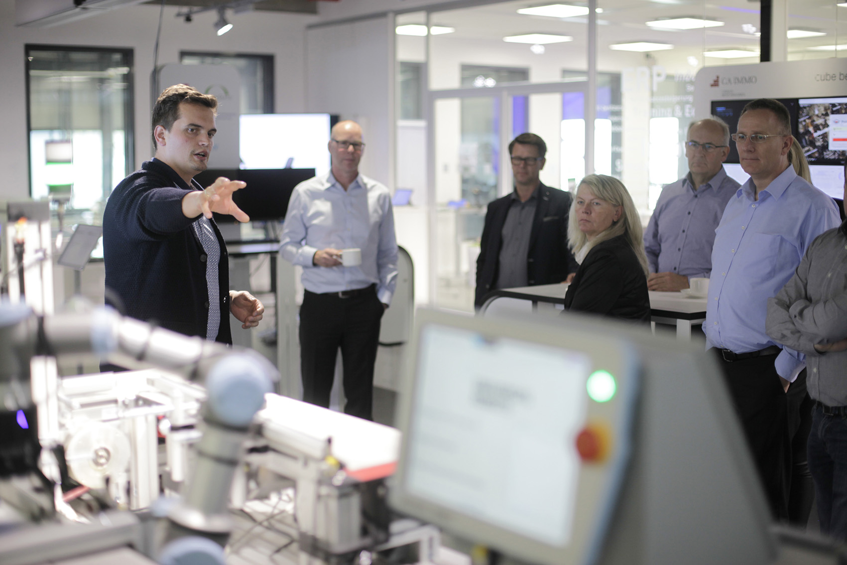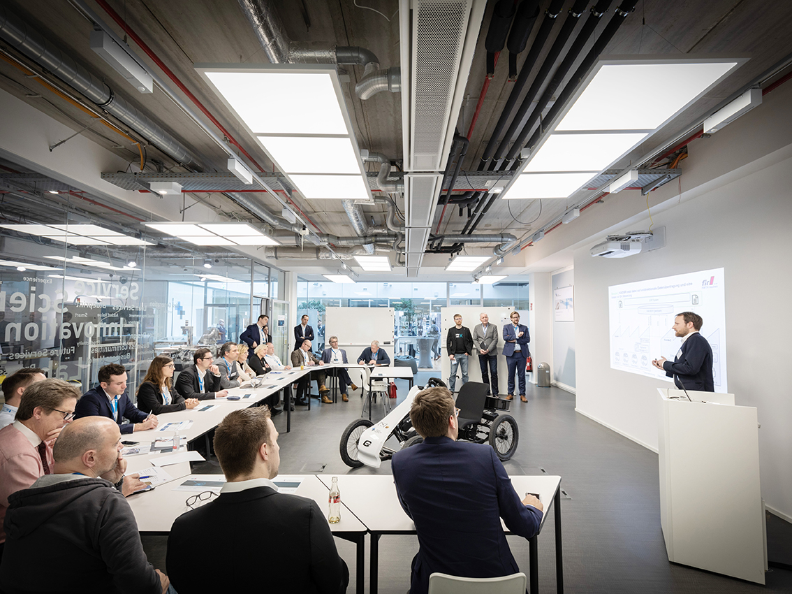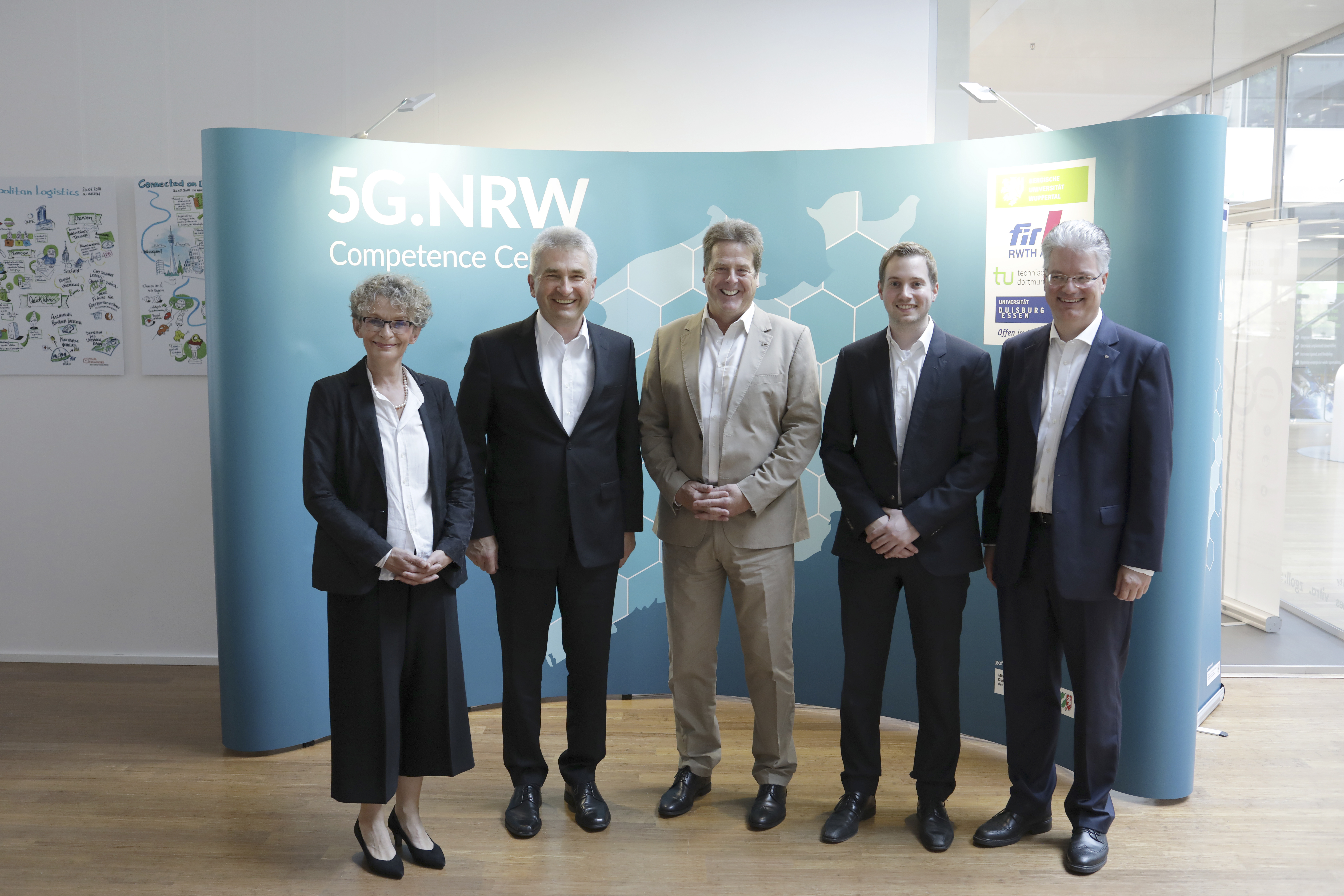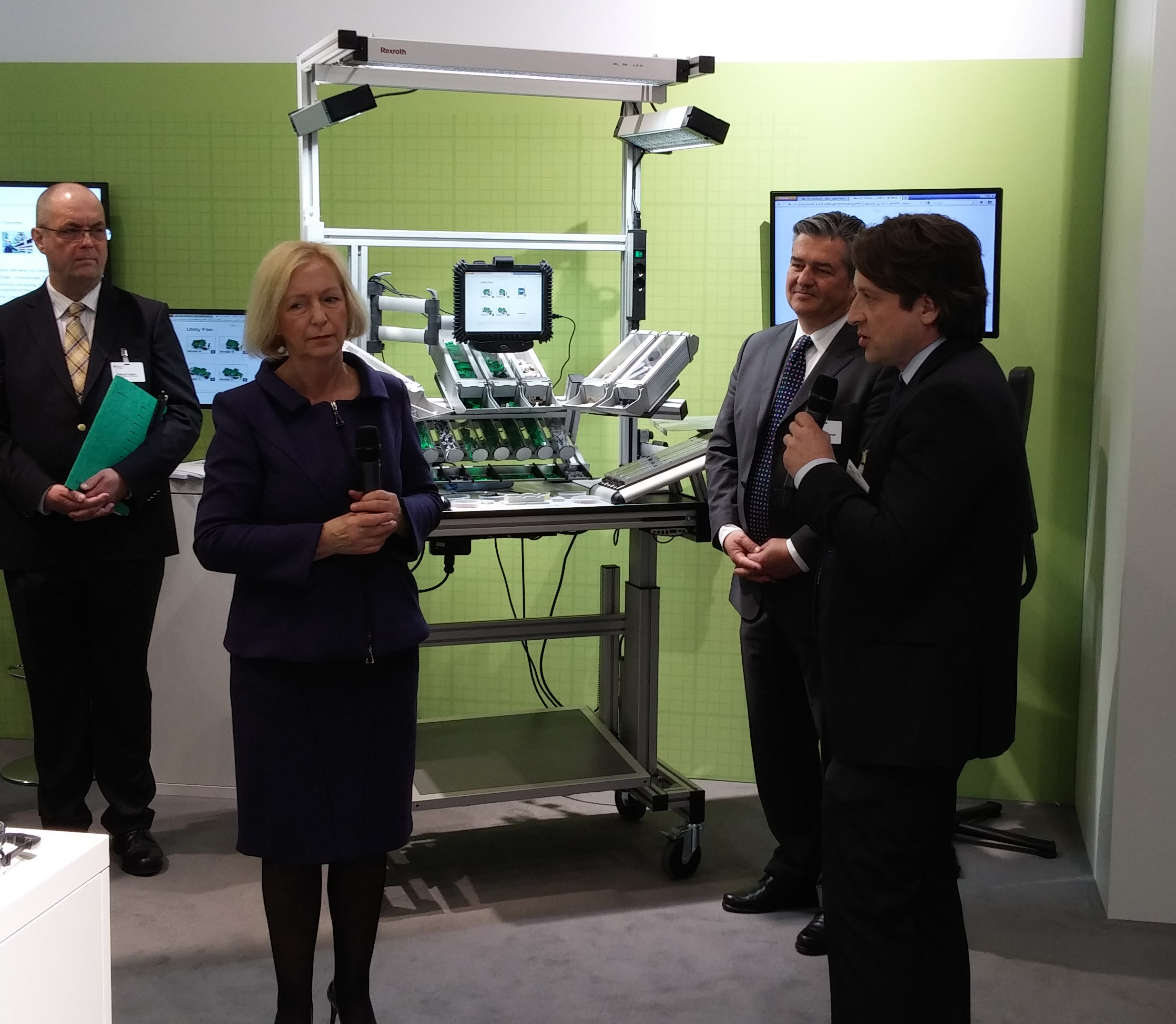 Präsentation der Studie, v.l.n.r.: Michael ten Hompel, Fraunhofer IML, Christian Hocken, Industrie 4.0 Maturity Center, Hennig Kagermann, acatech, Volker Stich, FIR, Dieter Spath, acatech, Violett Zeller, FIR / Copyright: Messefoto-Hannover