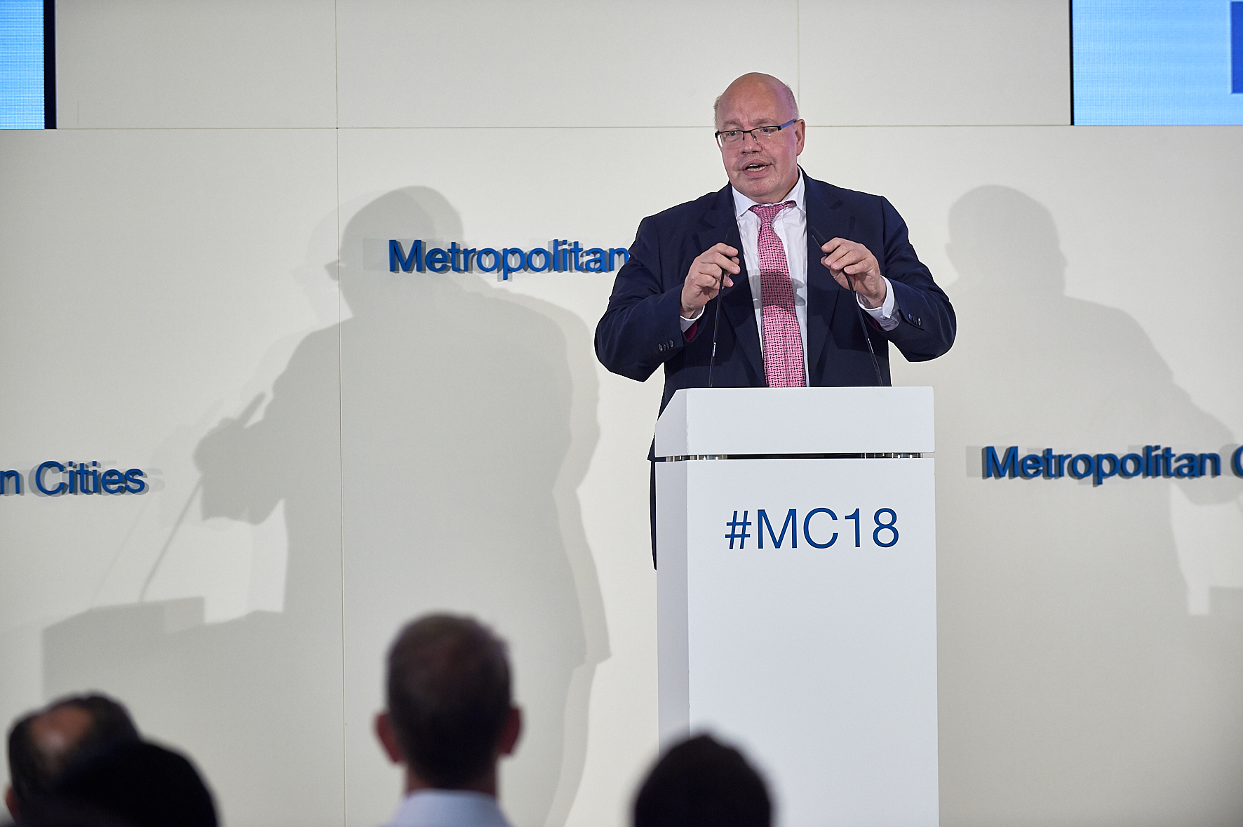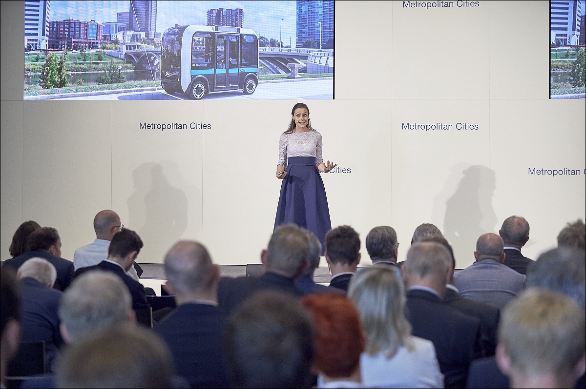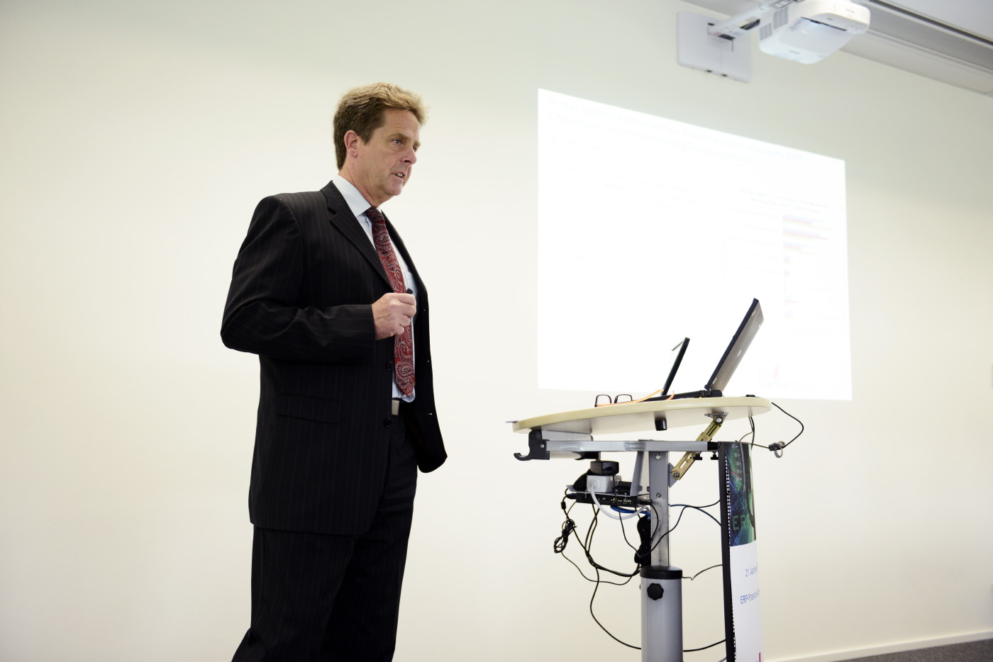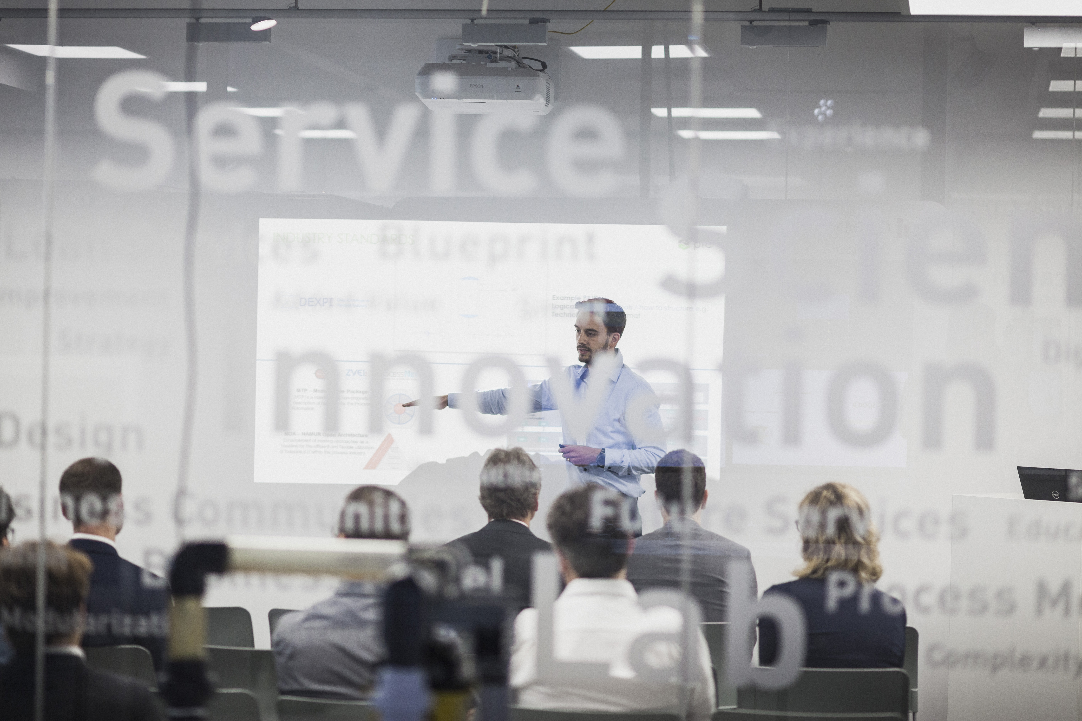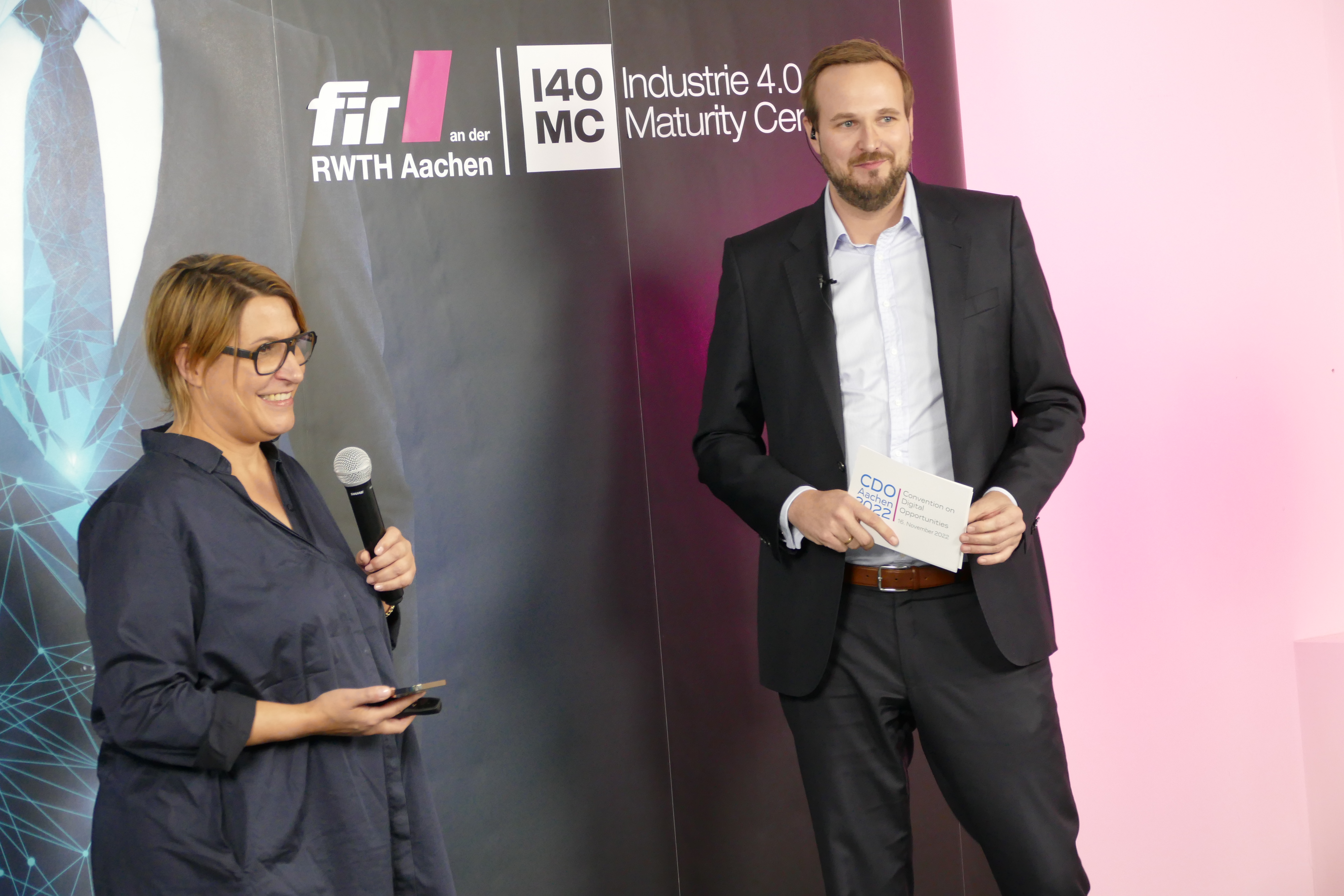 Präsentation der Studie, v.l.n.r.: Michael ten Hompel, Fraunhofer IML, Christian Hocken, Industrie 4.0 Maturity Center, Hennig Kagermann, acatech, Volker Stich, FIR, Dieter Spath, acatech, Violett Zeller, FIR / Copyright: Messefoto-Hannover