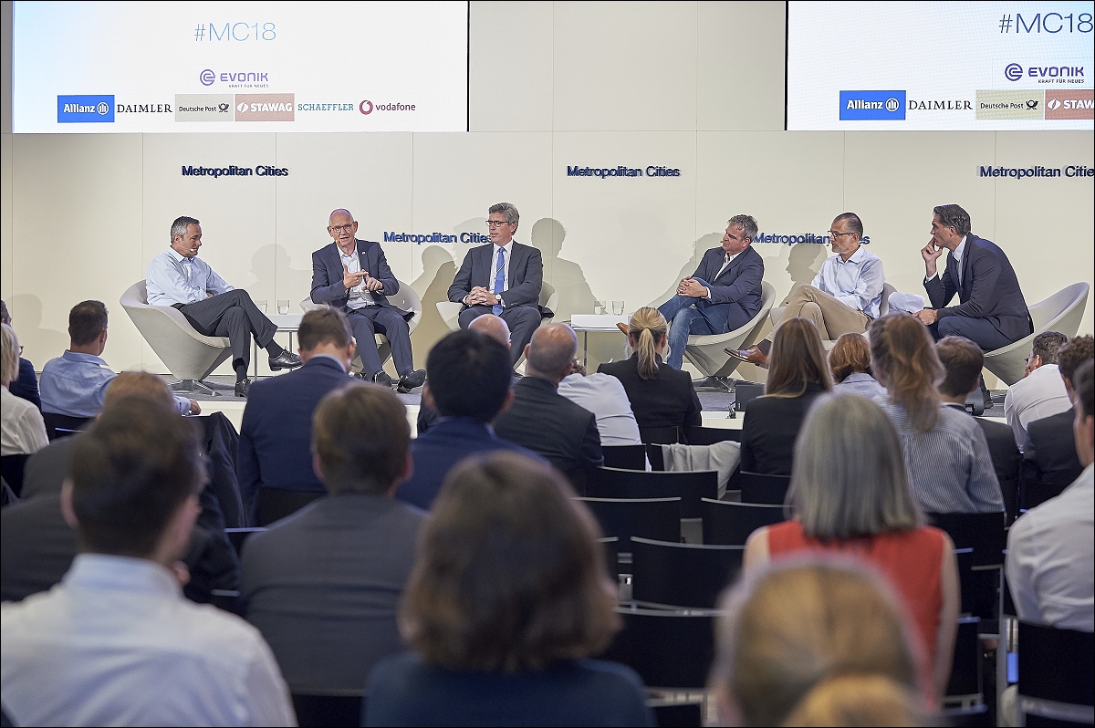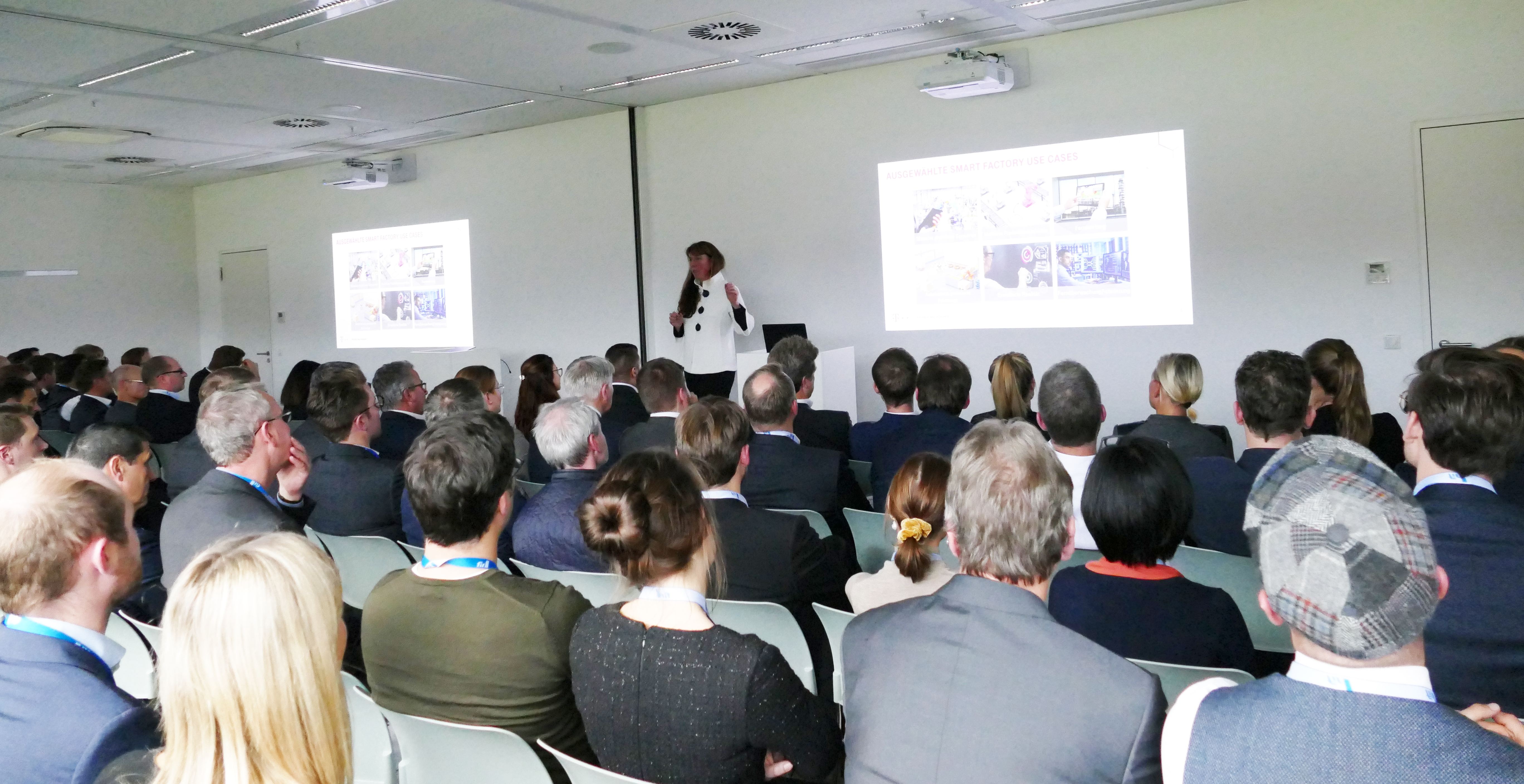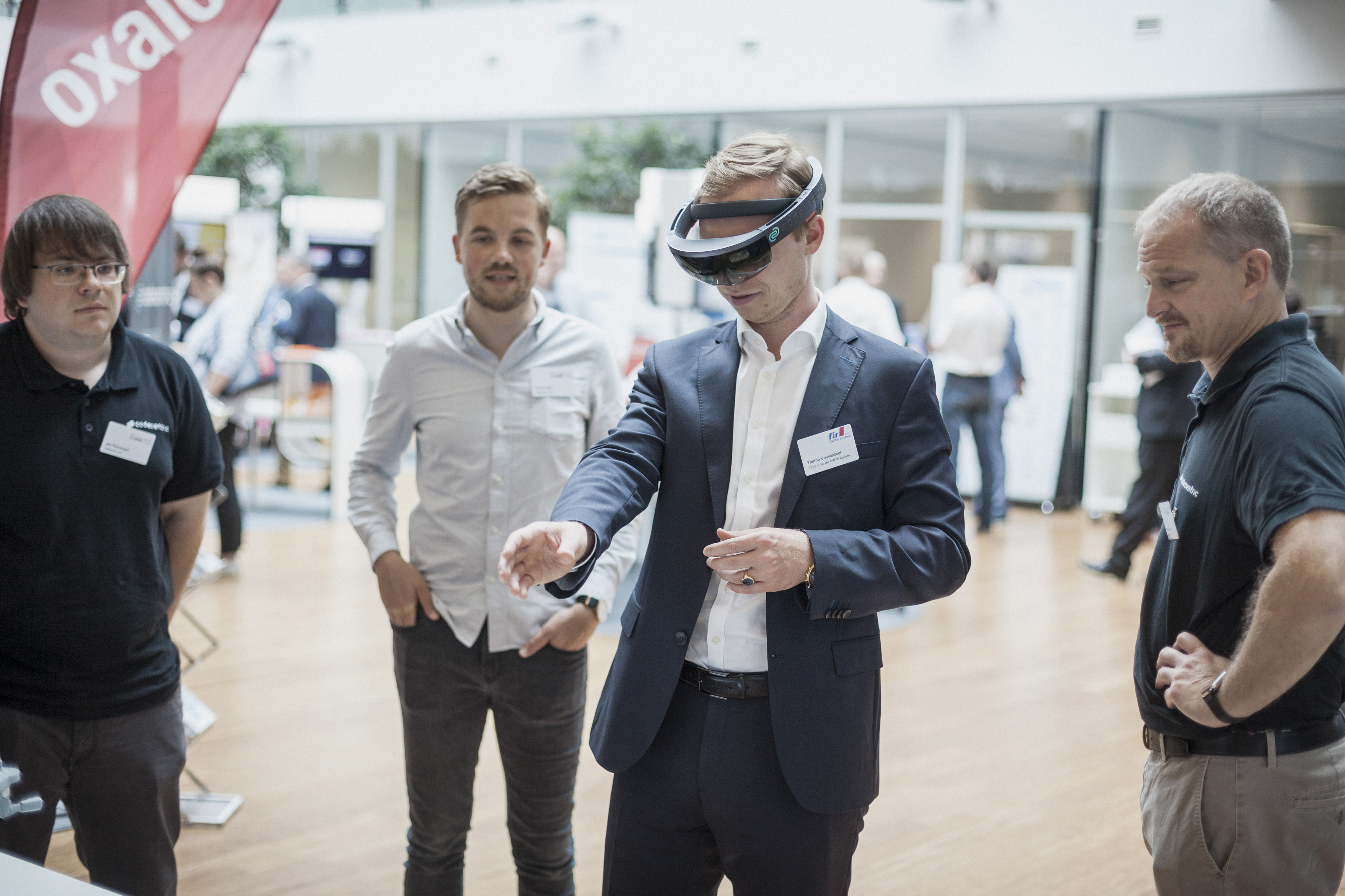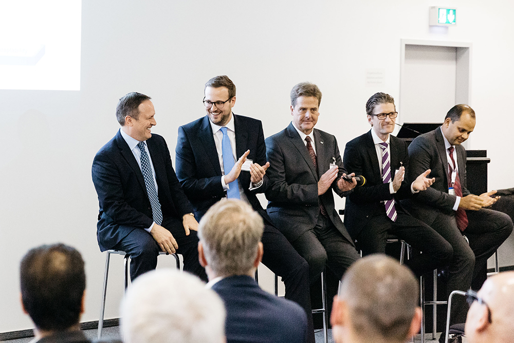 Experten auf dem Podium, v.l.n.r.: Howard Heppelmann, PTC, Christian Hocken, Industrie 4.0 Maturity Center, Volker Stich, FIR, Andreas Hauser, TÜV SÜD, Sudip Singh, Infosys / Copyright: Messefoto-Hannover