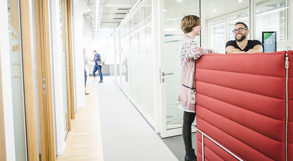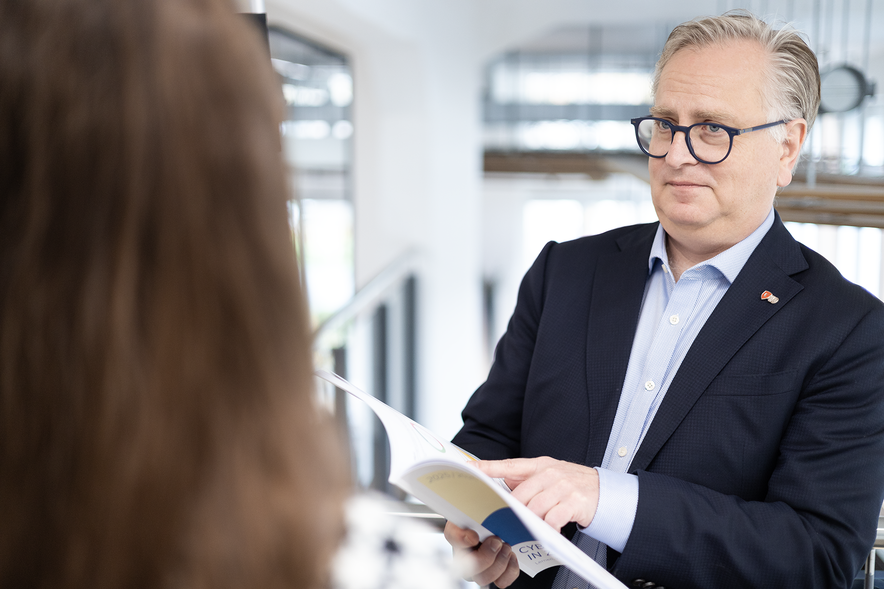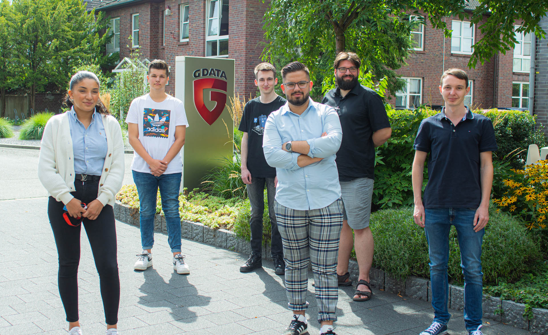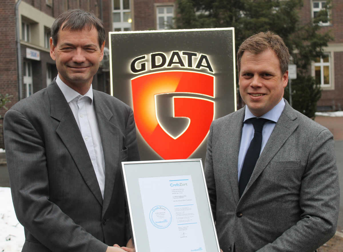 Gustav Holtkemper, Bereichsvorstand West der Commerzbank AG, Andreas Lüning, G DATA Vorstand, Johanna Tjaden, Leiterin Unternehmerkunden der Commerzbank, Marktregion West, Moderatorin Meike Neitz, Dirk Nowitzki, Leiter Unternehmerkunden Commerzbank Bochum, Kai Figge, G DATA Vorstand (von links nach rechts)